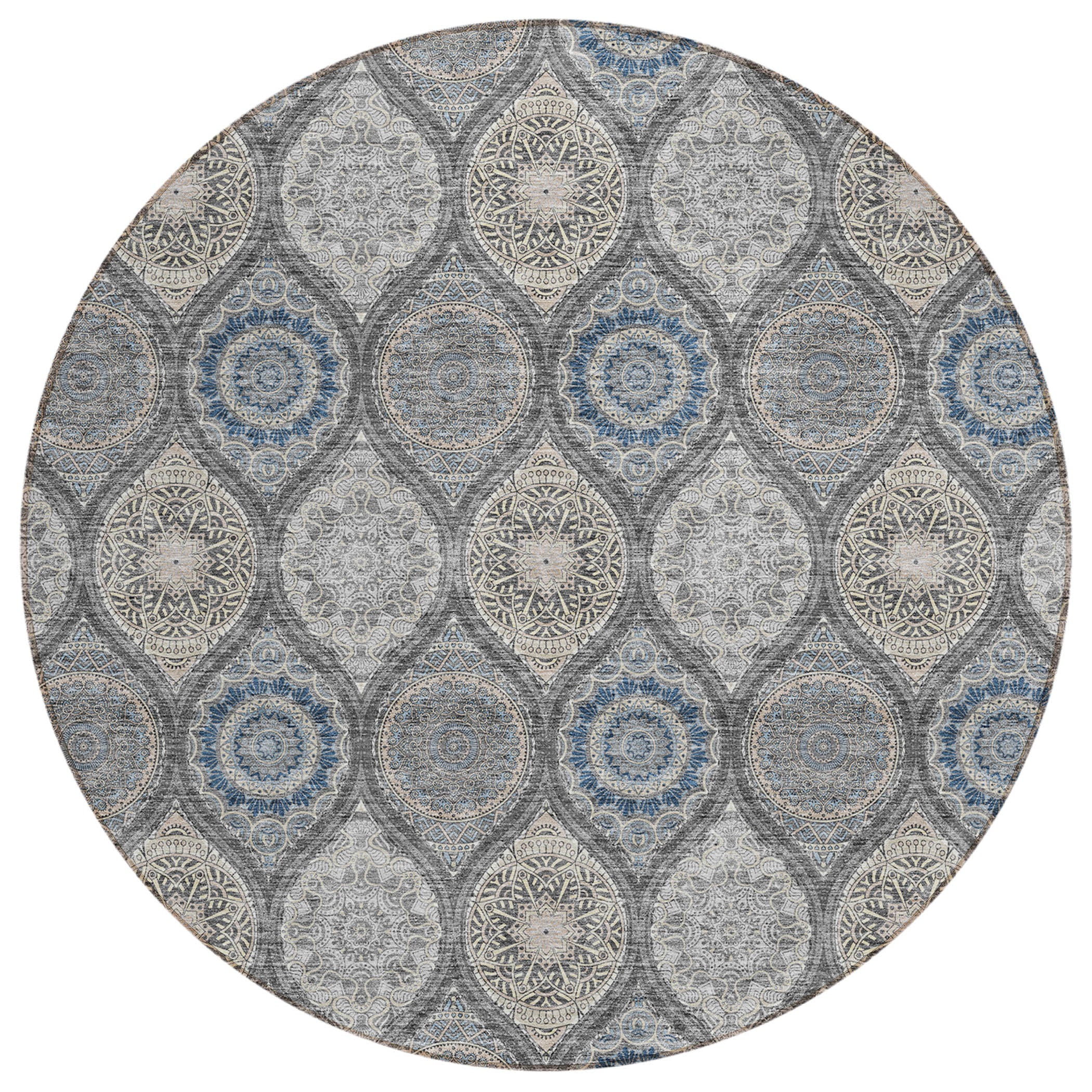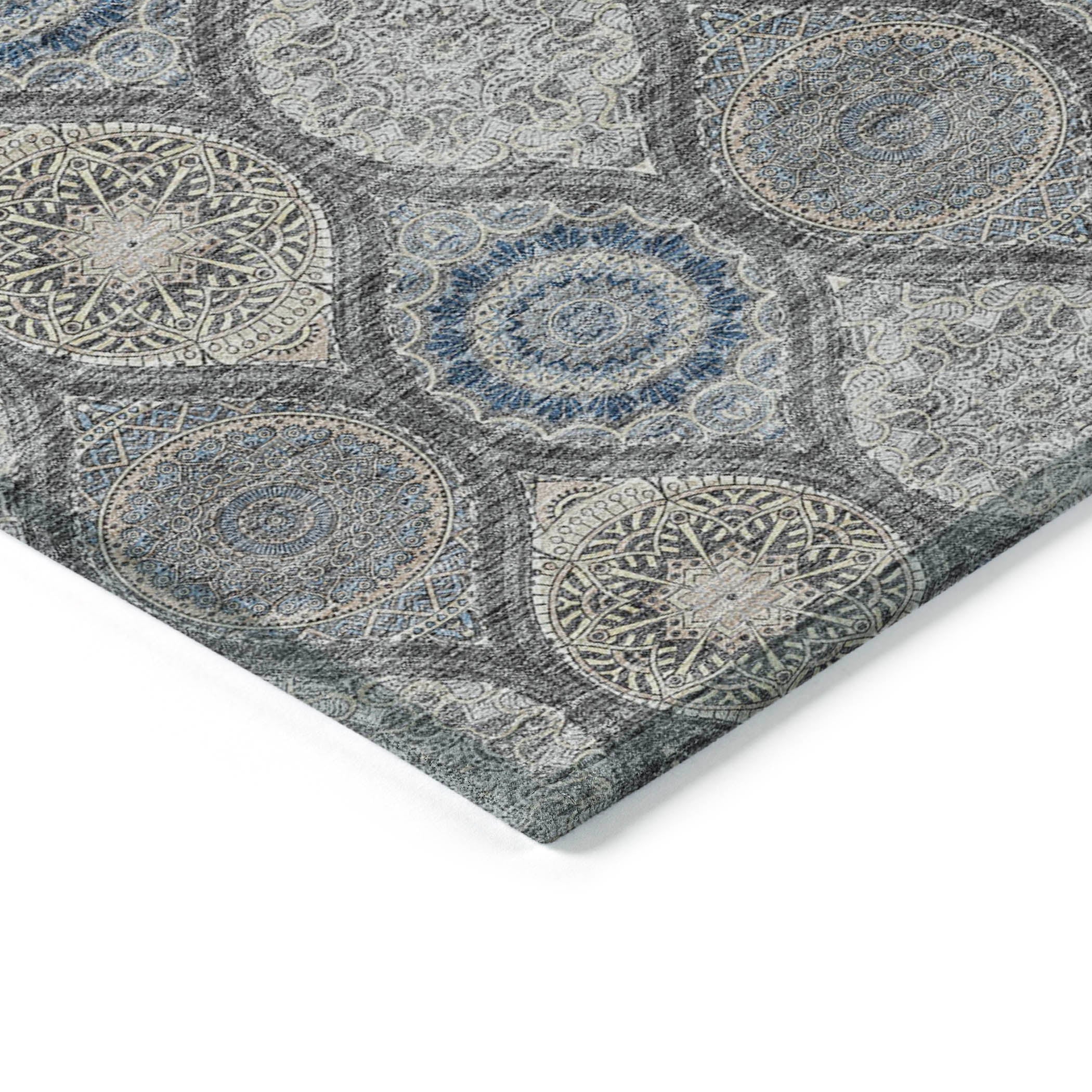Chantille ACN976 Gray area rug, a stunning piece that effortlessly blends vibrant stained glass motifs with modern transitional design. This rug is designed with exquisite details and a sleek profile, adding a touch of sophistication to any space.