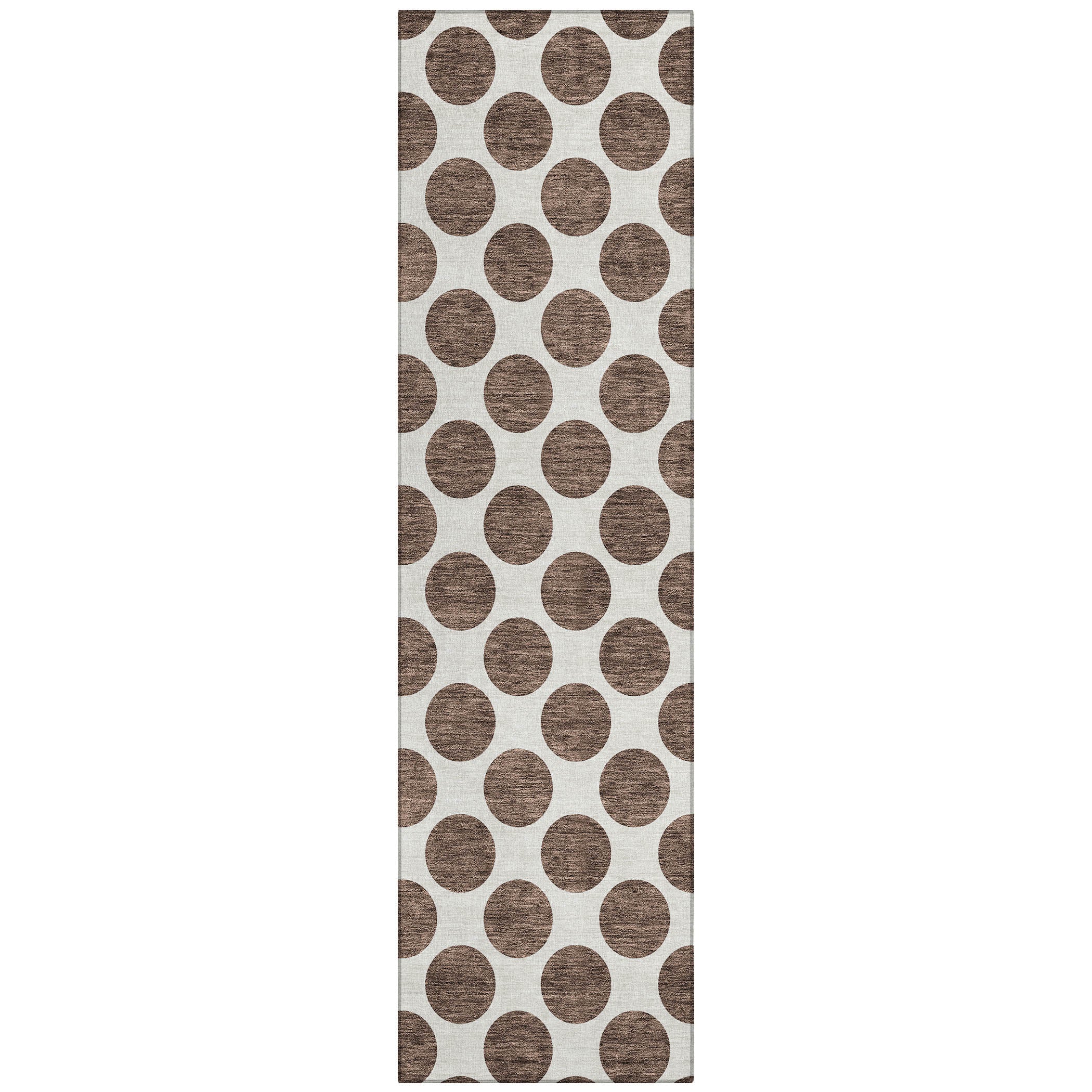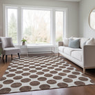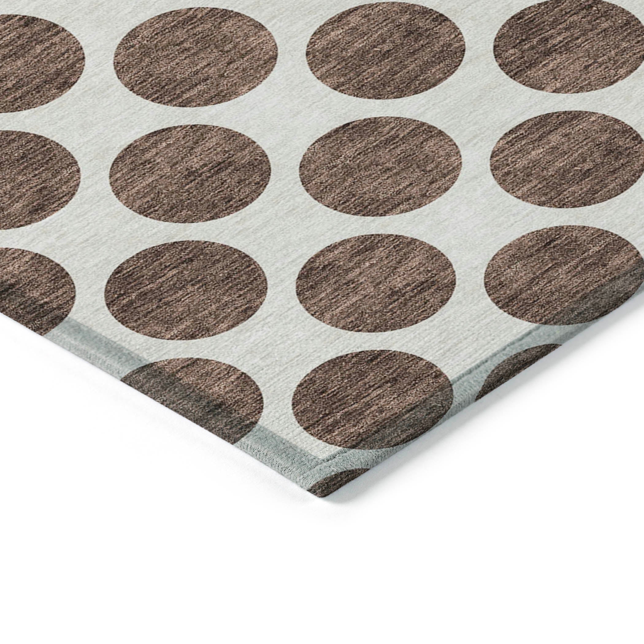Chantille ACN980 Brown area rug, a stylish addition to your home decor that effortlessly blends modern flair with practicality. The rug features small solid circles that create a contemporary look, perfect for any room in your house. Its transitional design makes it a versatile gem that can complement various interior styles.