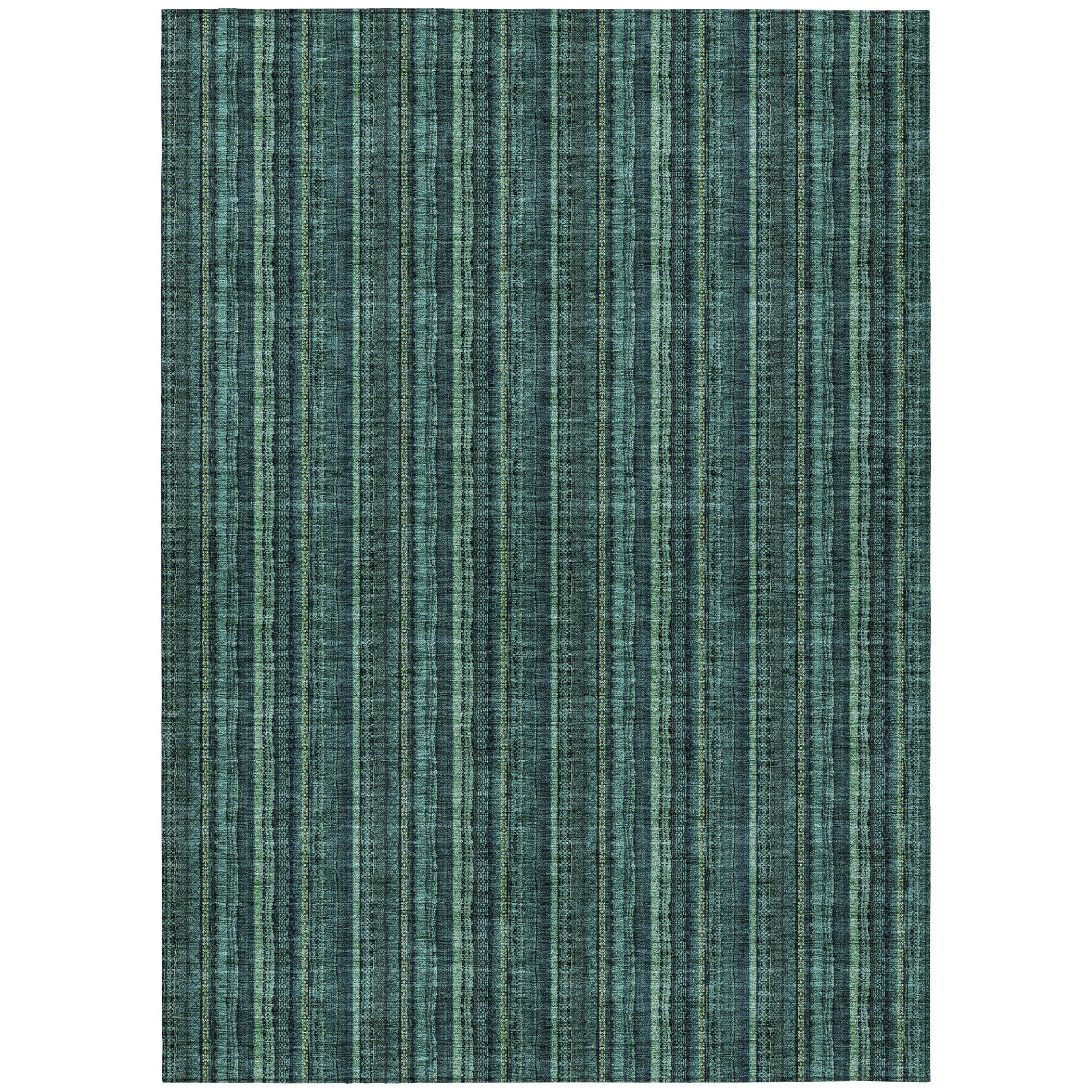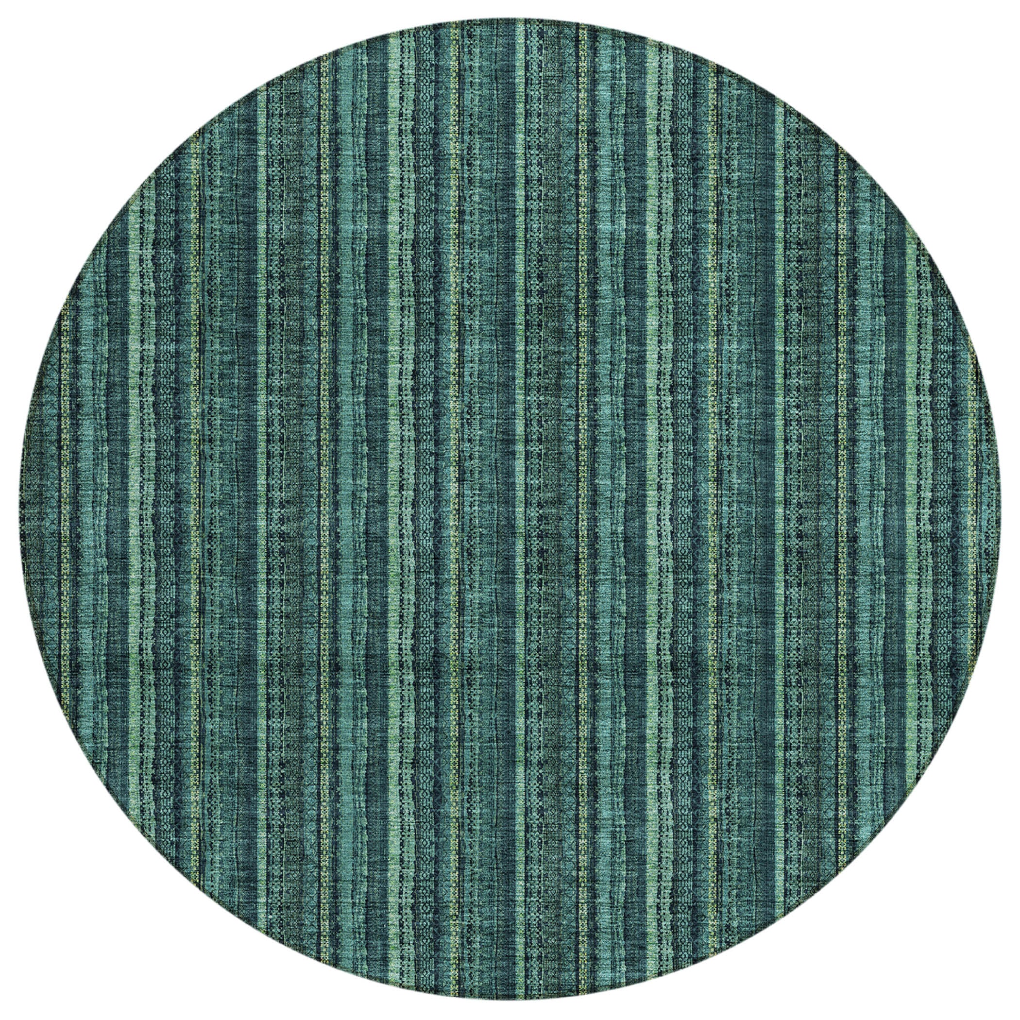 Chantille ACN982 Teal, a stunning area rug that effortlessly elevates the ambiance of any space. The vertical striped motifs, infused with a tribal flair, impart a natural and transitional feel that complements various decor styles. This rug's design is not only visually appealing but also durable, thanks to its UV stabilization ensuring long-lasting vibrancy.