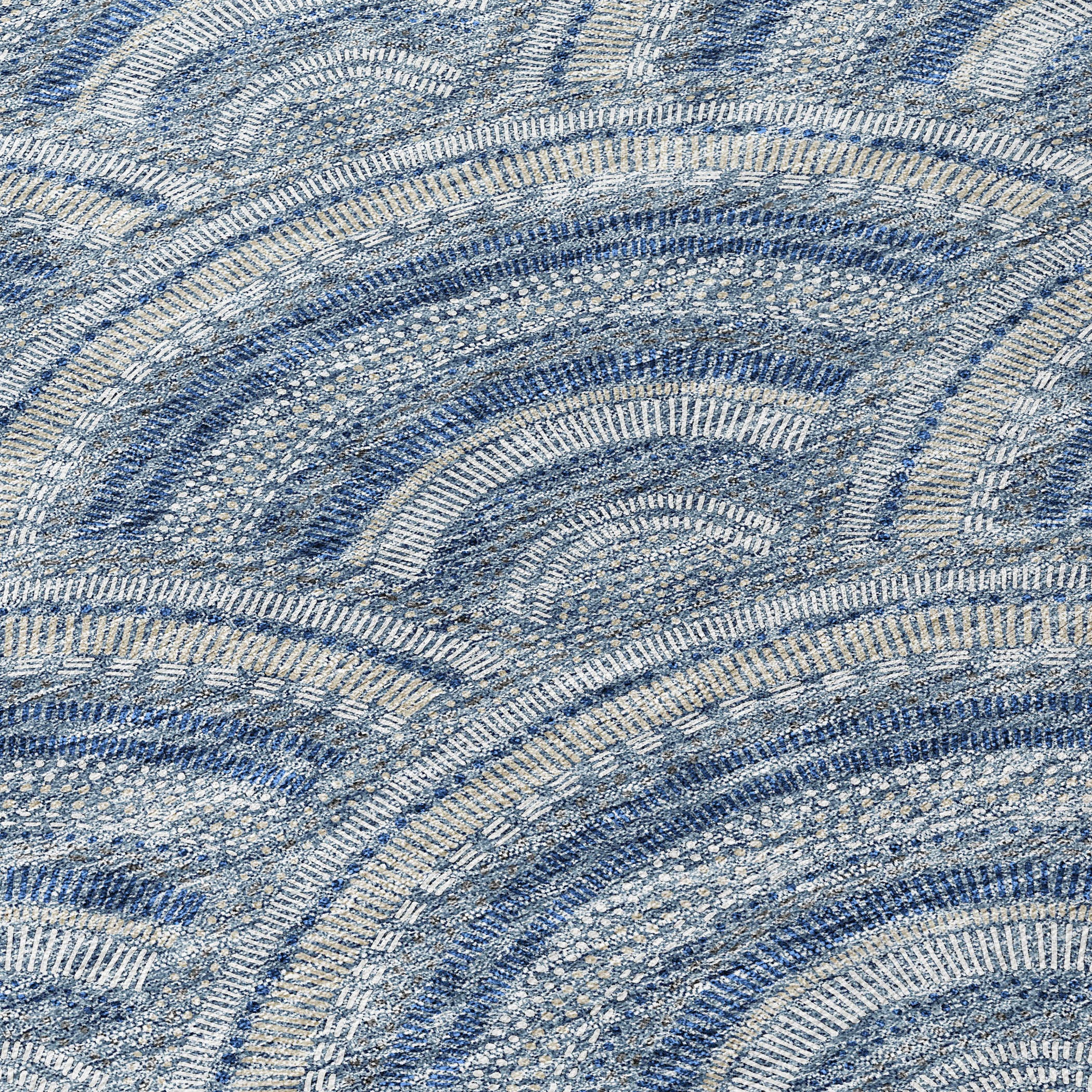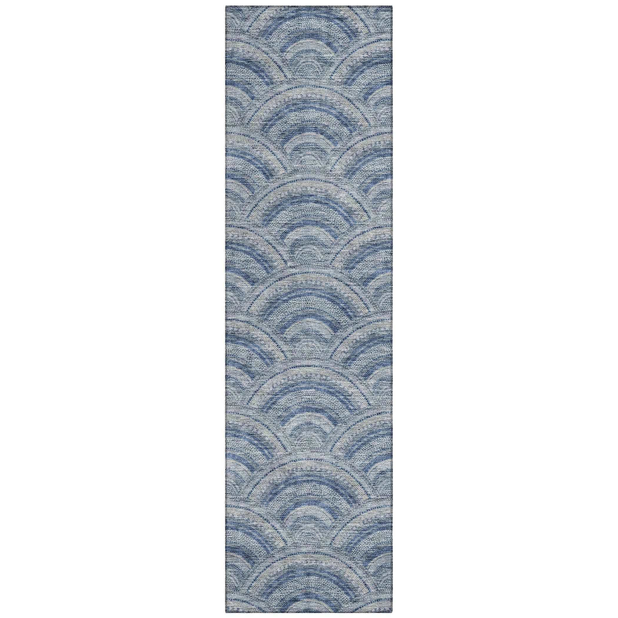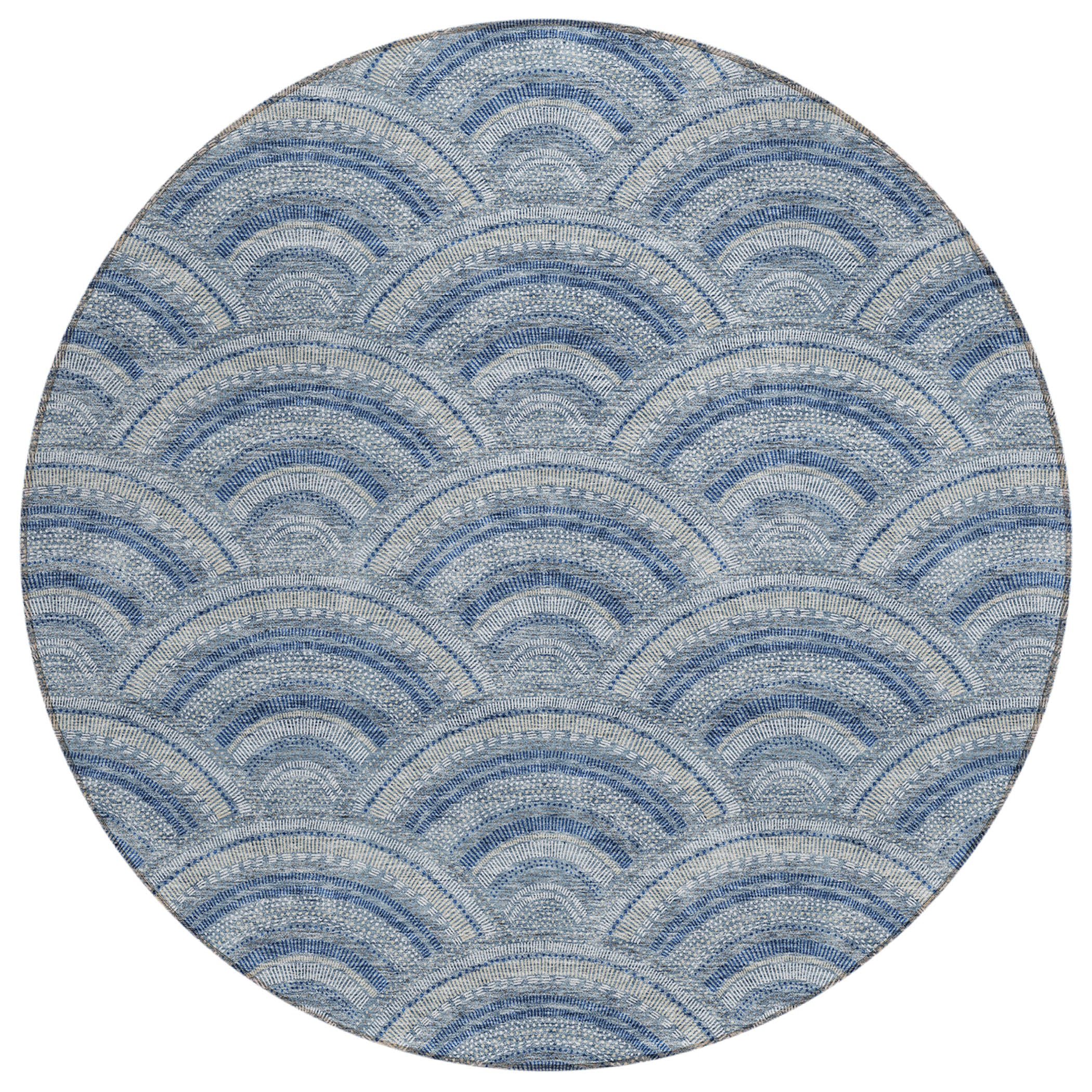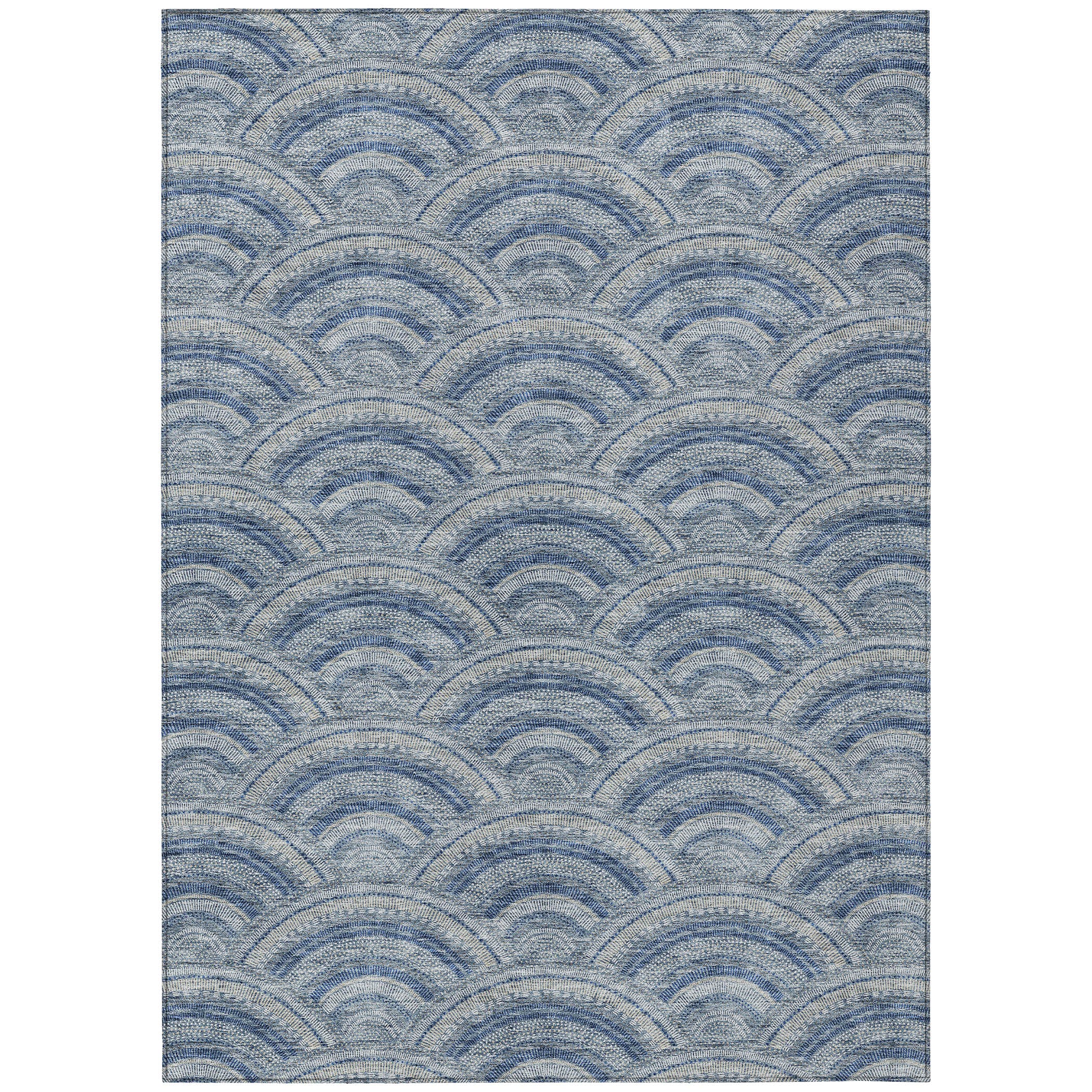 Chantille ACN984 Denim area rug, a stylish addition to any modern home. The smart semi-circle pattern effortlessly blends contemporary trends with timeless transitional design. Crafted with UV stabilization, this rug is ready to withstand sun exposure and maintain its vibrant colors. Its ultra-thin construction ensures a sleek and subtle presence in your space.