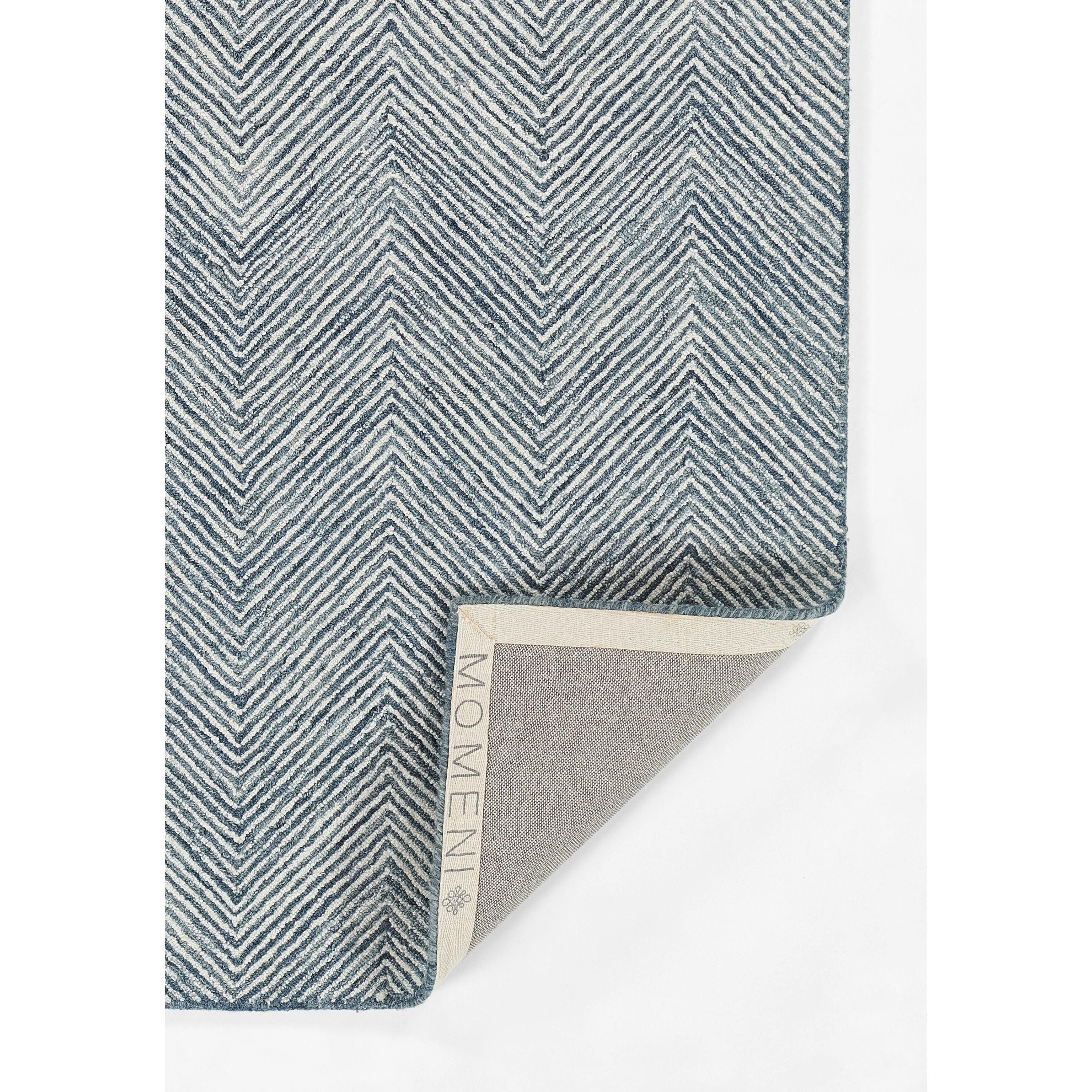 Charles Chr 1 Denim rug from the Charles Collection by Momeni Basics. This rug features a timeless thin herringbone pattern that exudes classic elegance. Available in a range of versatile colors, from navy to tan, this handcrafted rug is made from 100% wool, ensuring durability and natural stain resistance.