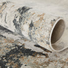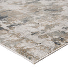 Cirque CIQ01 Lynne area rug from the exquisite Cirque collection. This rug effortlessly combines contemporary charm with the intricate allure of vintage motifs. Featuring an industrial abstract design in striking brown, gray, and ivory tones, the Lynne rug adds a modern touch to any space. Crafted from high-quality viscose and polyester through a power-loomed process, this accent piece offers a soft feel with a textured high-low pile for added depth.