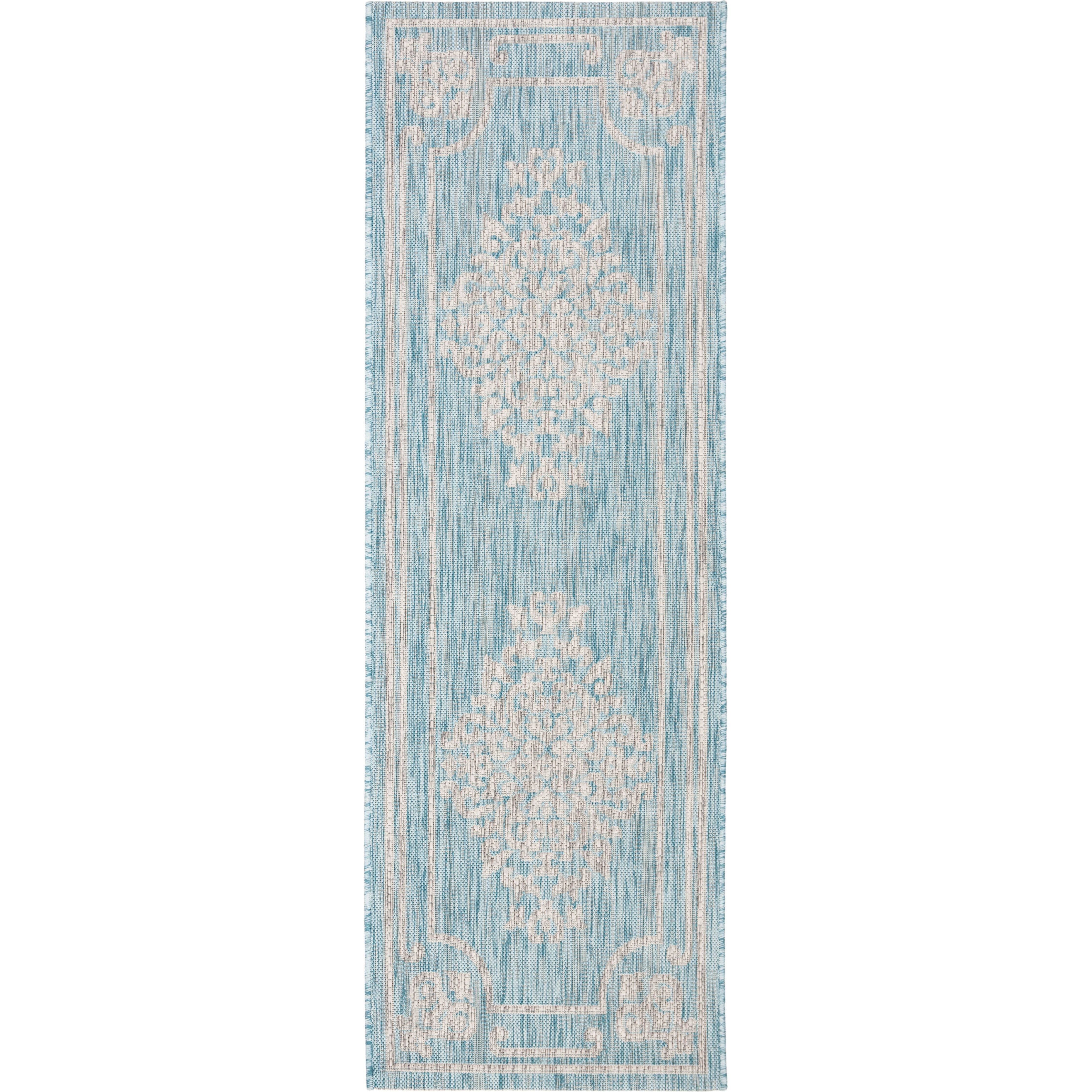Courtyard CY8212 Aqua Grey rug from Safavieh's versatile Courtyard collection. Perfect for both indoor and outdoor use, these rugs elevate your decor with a range of stylish designs and trendy colors. Crafted in Turkey using high-quality polypropylene, these durable rugs are designed to withstand the elements. The Courtyard collection offers a variety of classic and contemporary patterns that effortlessly complement each other, allowing you to create a cohesive look throughout your living spaces.
