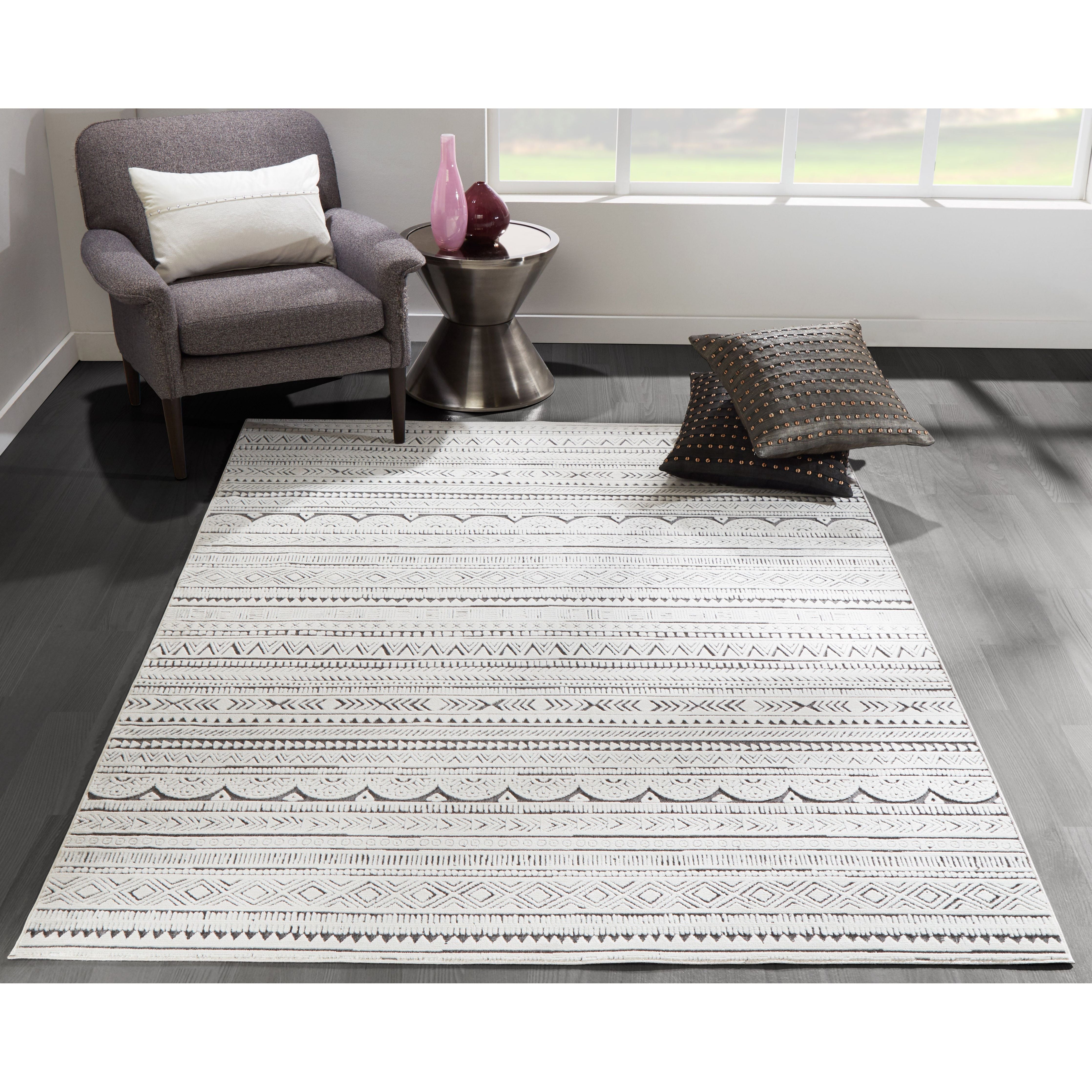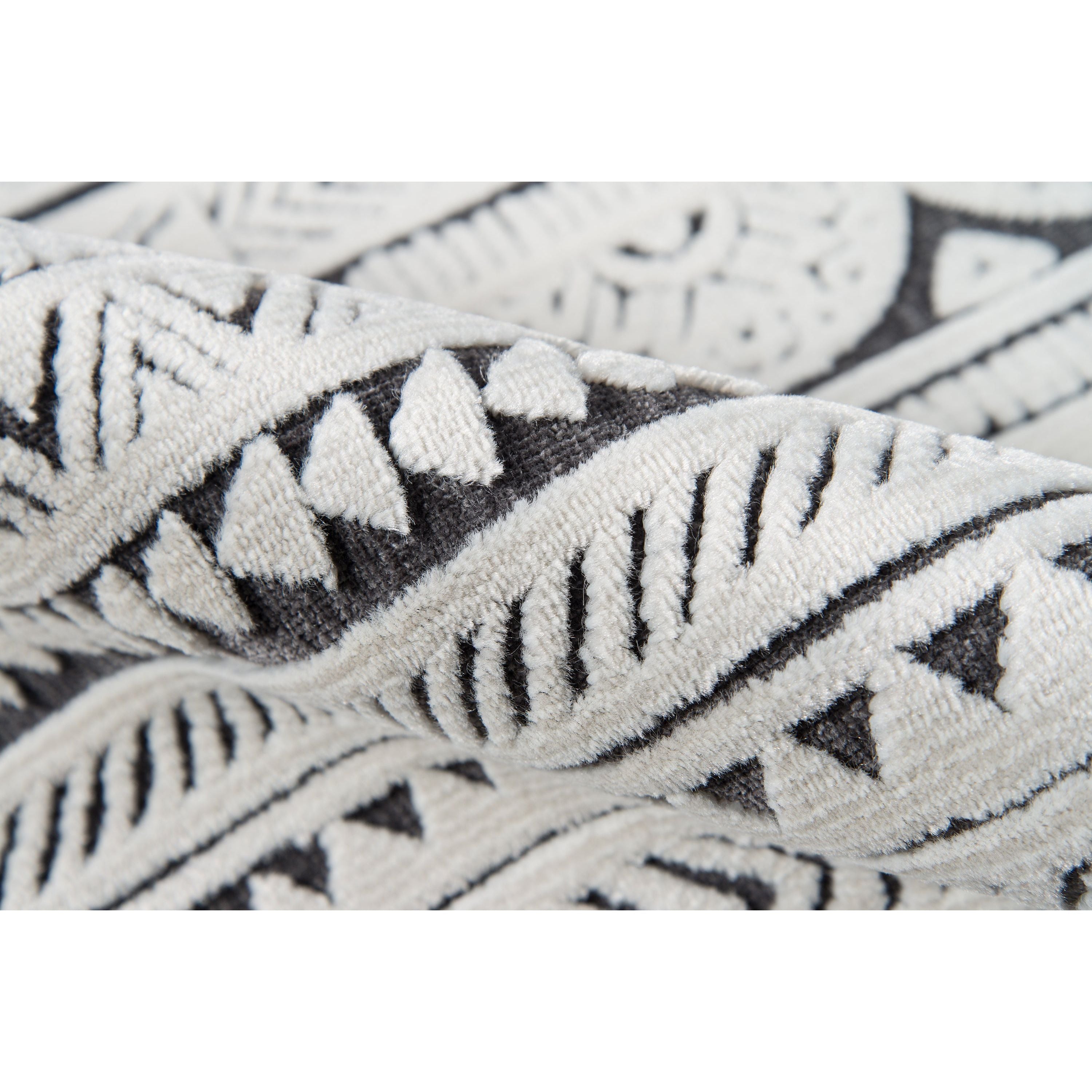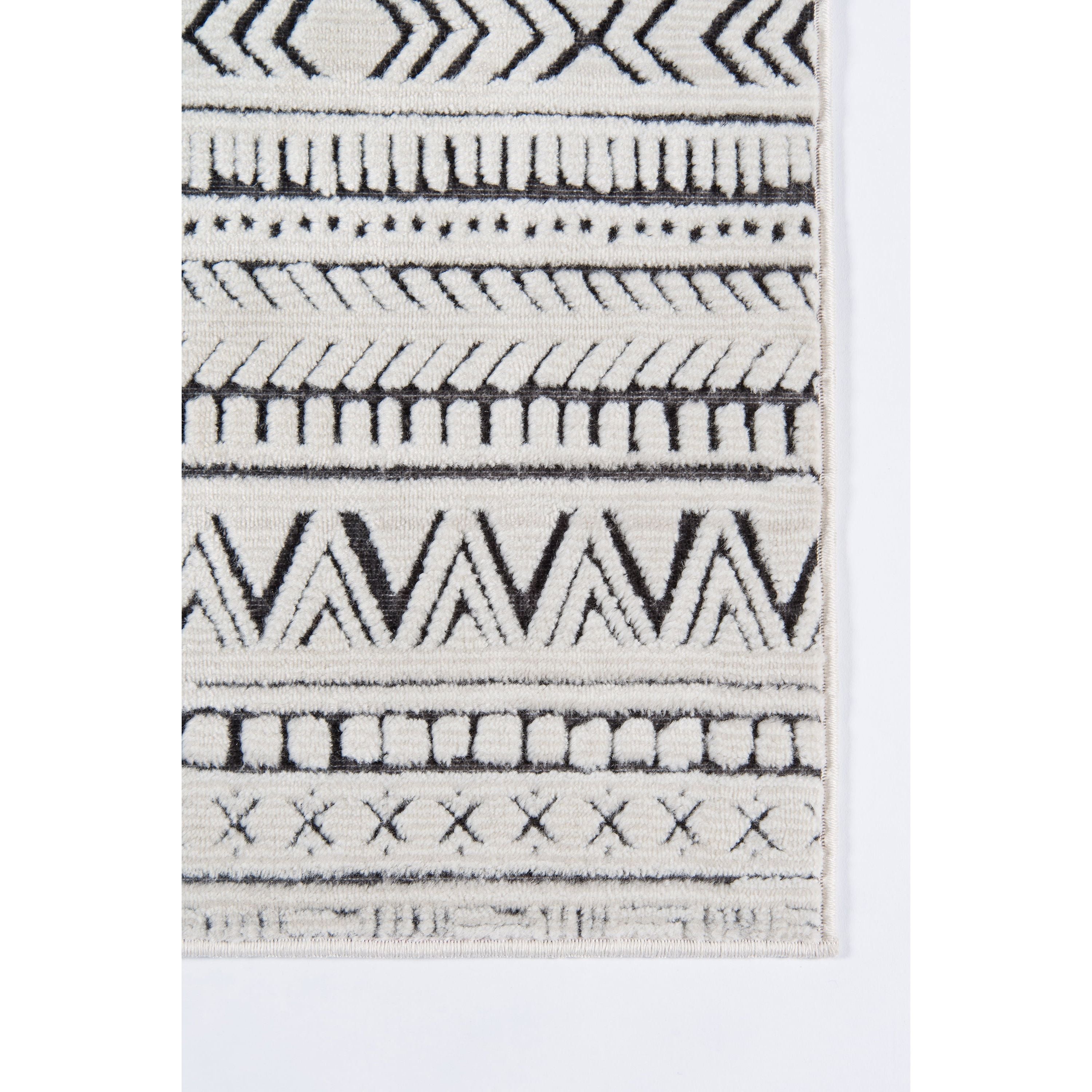Covington Cov 3 Ivory indoor area rug collection, featuring a variety of eye-catching graphic ethnic motifs. Choose from geometric tribal patterns to elegant French filigree designs, adding a touch of exotic flair to your living space. Crafted with a mix of synthetic and soft chenille fibers, these rugs offer a luxurious and sculptural feel underfoot. Each decorative floor covering is skillfully constructed to bring depth and dimension to your room, enhancing the beauty of every intricate pattern. Elevate your decor with these stylish rugs that combine quality craftsmanship with striking visual appeal.