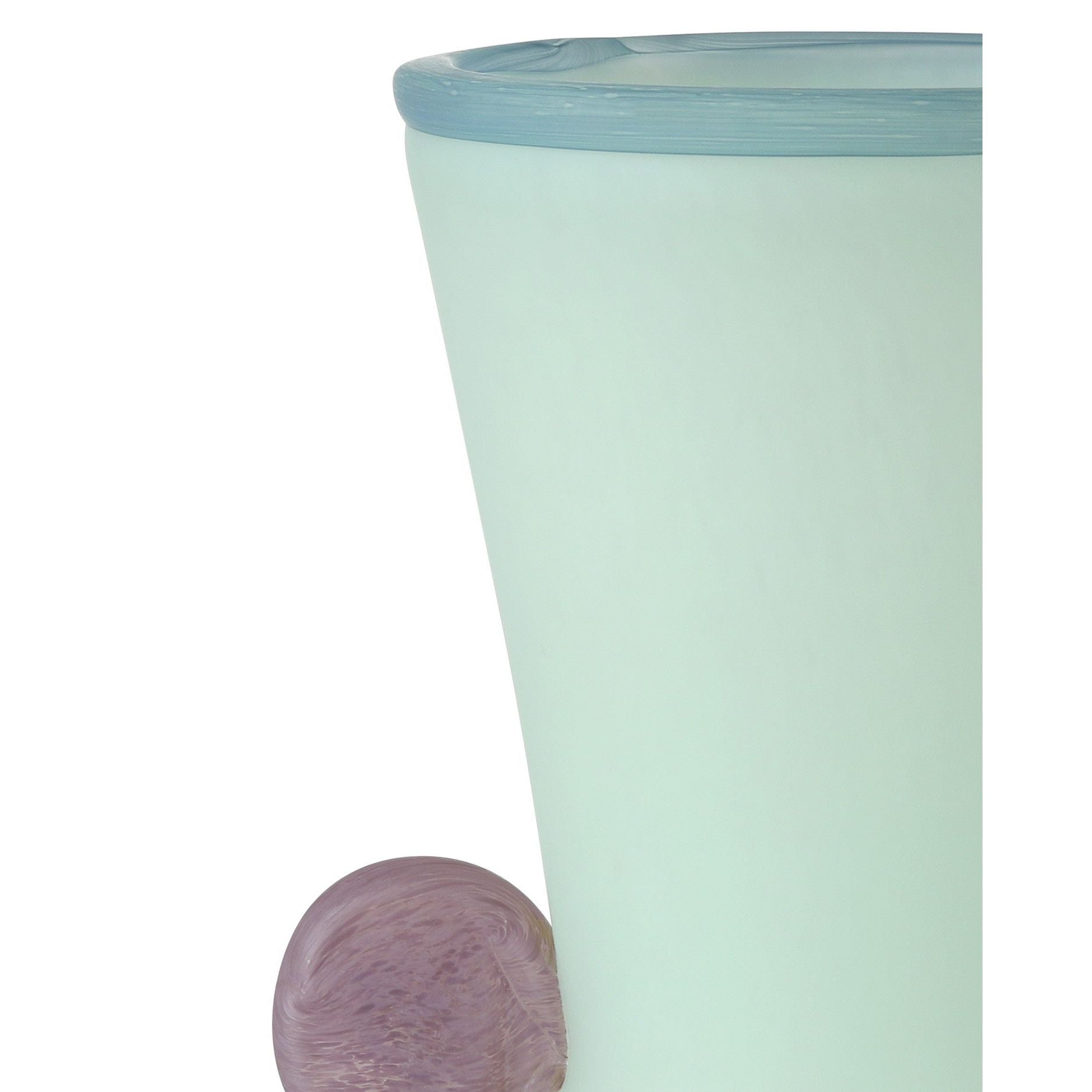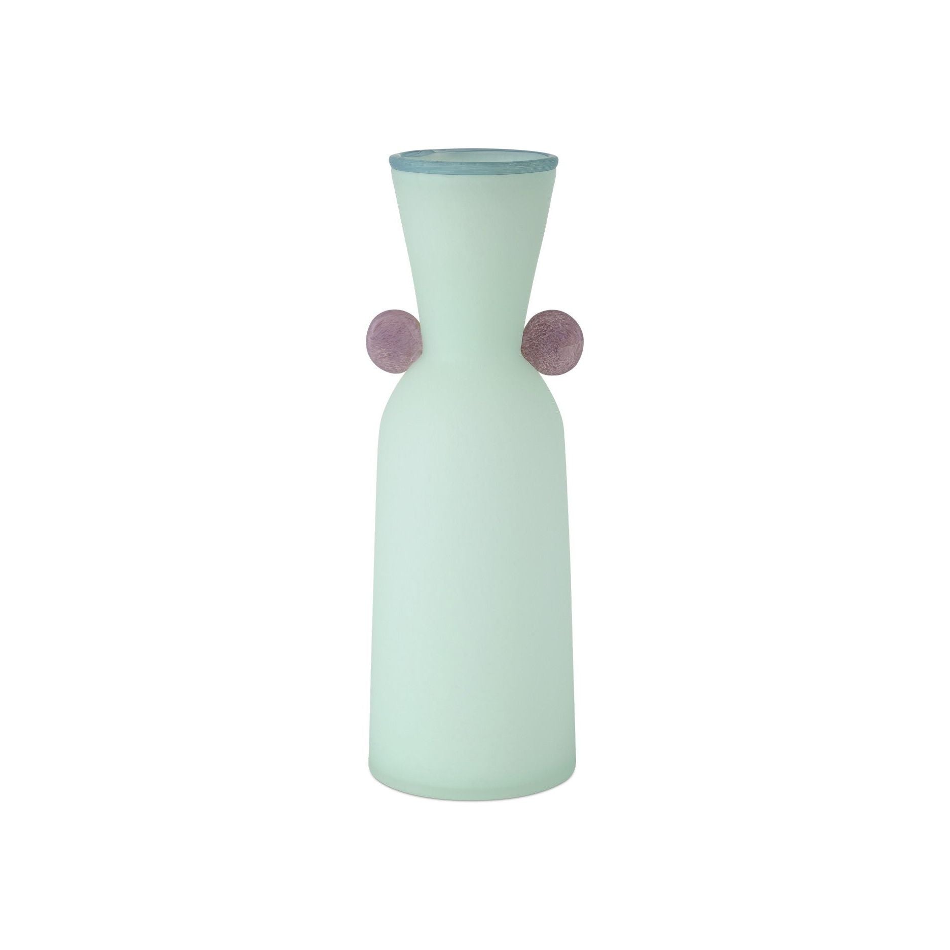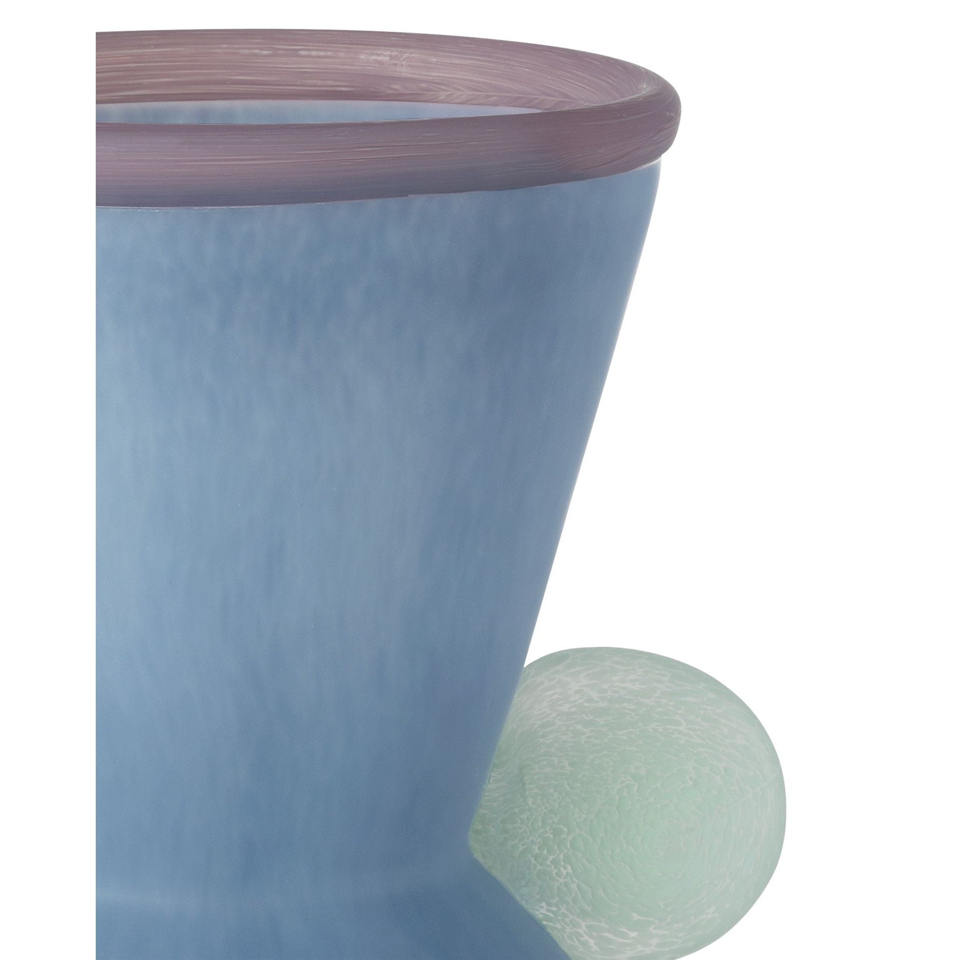 The Vassily Vase Set includes a trio of mouthblown glass vessels that blend artful craftsmanship with sleek design. After each vase is fired in three separate ovens—one for blue, one for purple, and one for mint green—it is sand-blasted to create a soft, matte finish with a frosted effect that diffuses light and highlights the simple beauty of each form. Perfect for displaying together or on their own, the Vassily Vase Set exudes modern elegance.