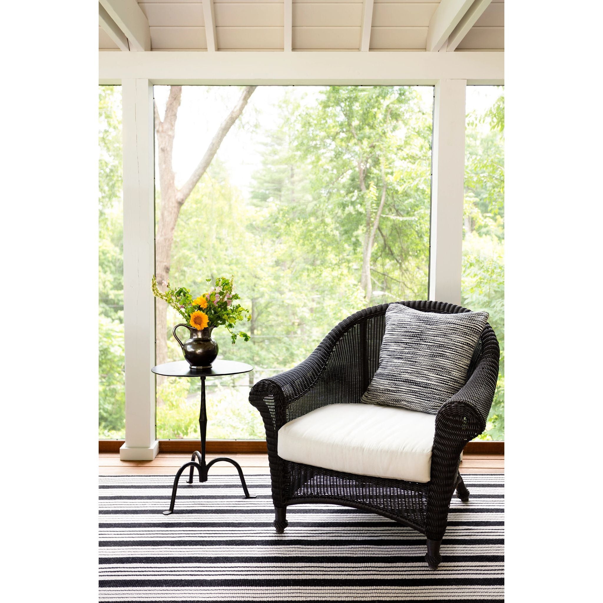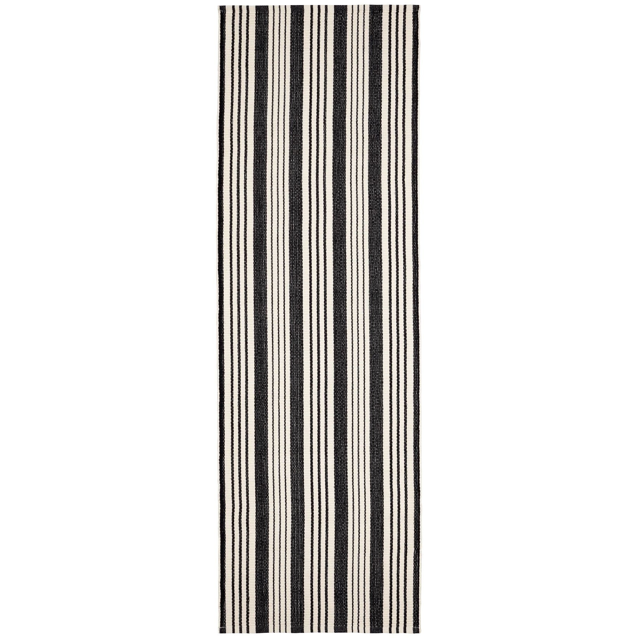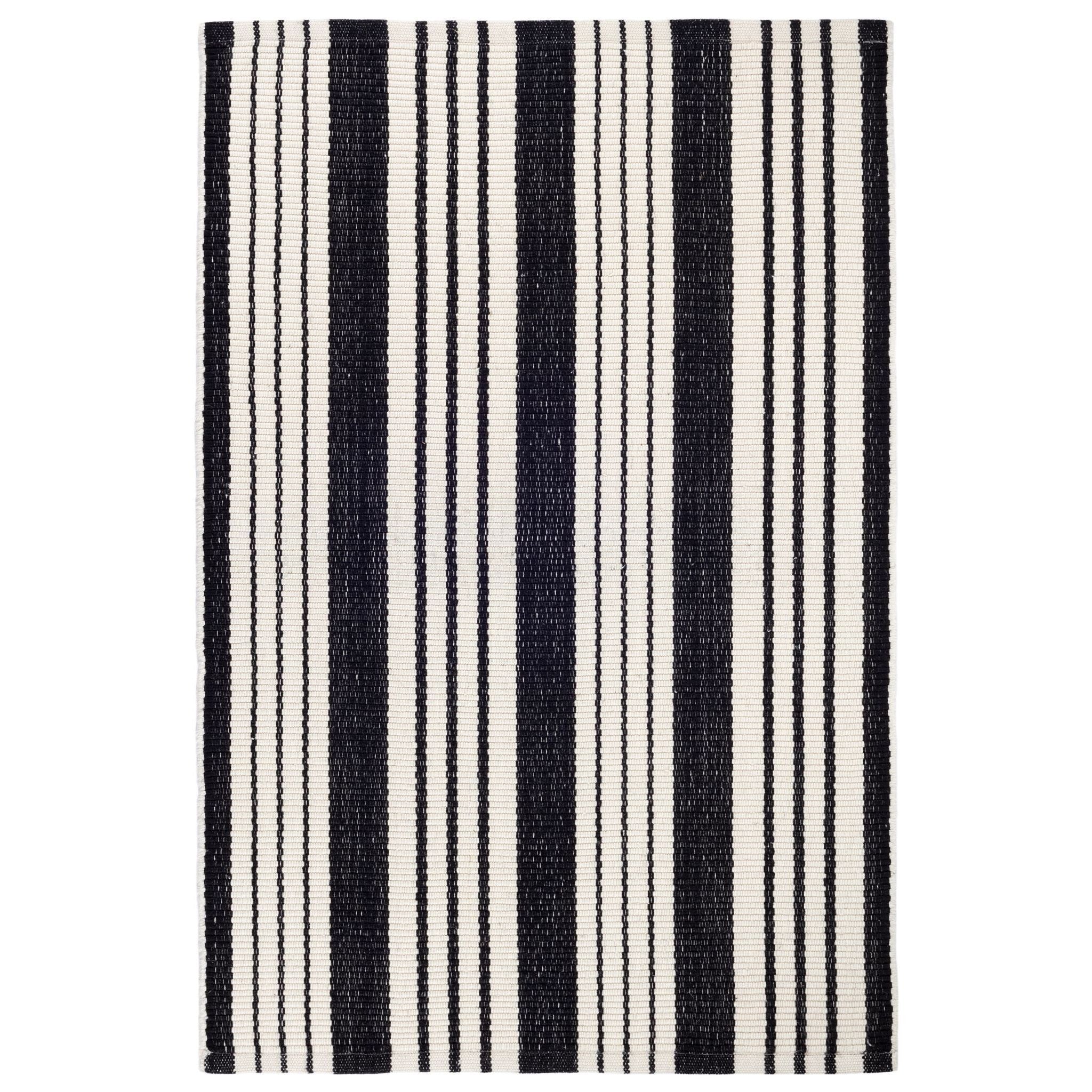 Get the best of both worlds with this durable, washable, and eco-friendly indoor/outdoor rug in a classic black and ivory stripe. Blends beautifully into both traditional and modern spaces.
