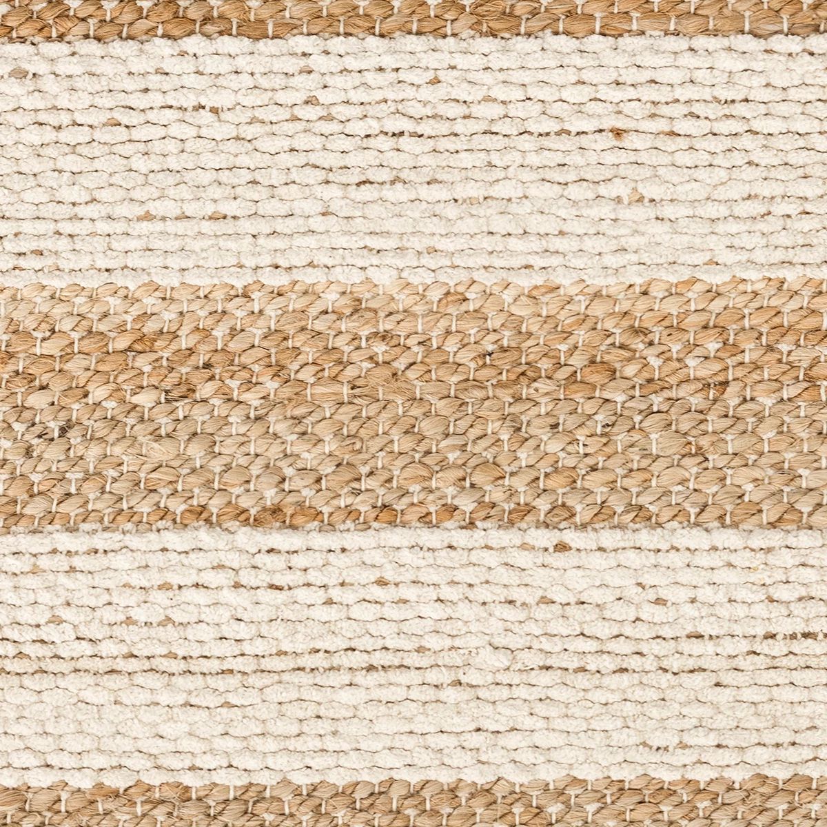 Sand bars of natural jute appear to float on a marled slubby cotton ground. Cool and crisp underfoot, jute and chenille cotton blend together in perfect synergy for hardworking comfort and style.