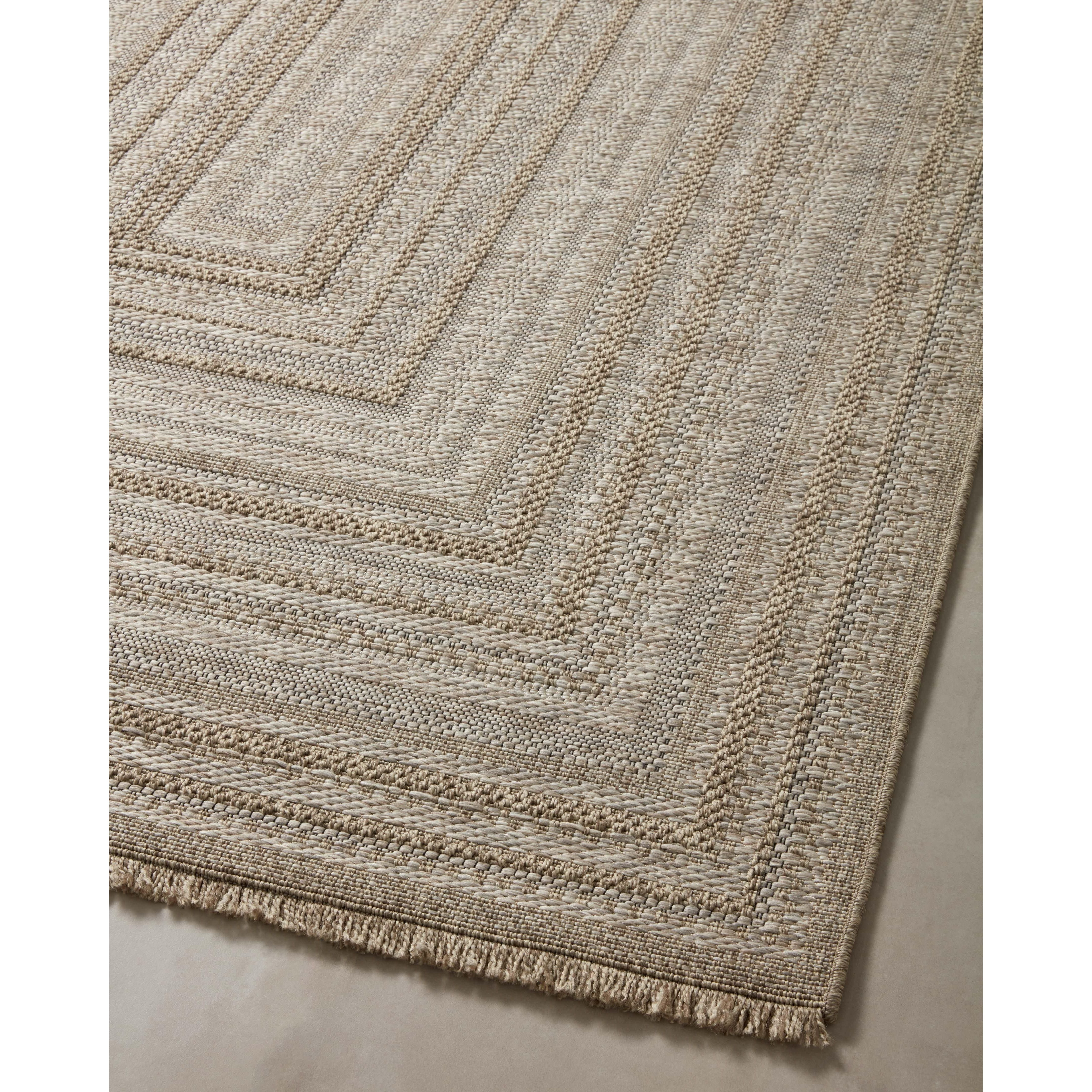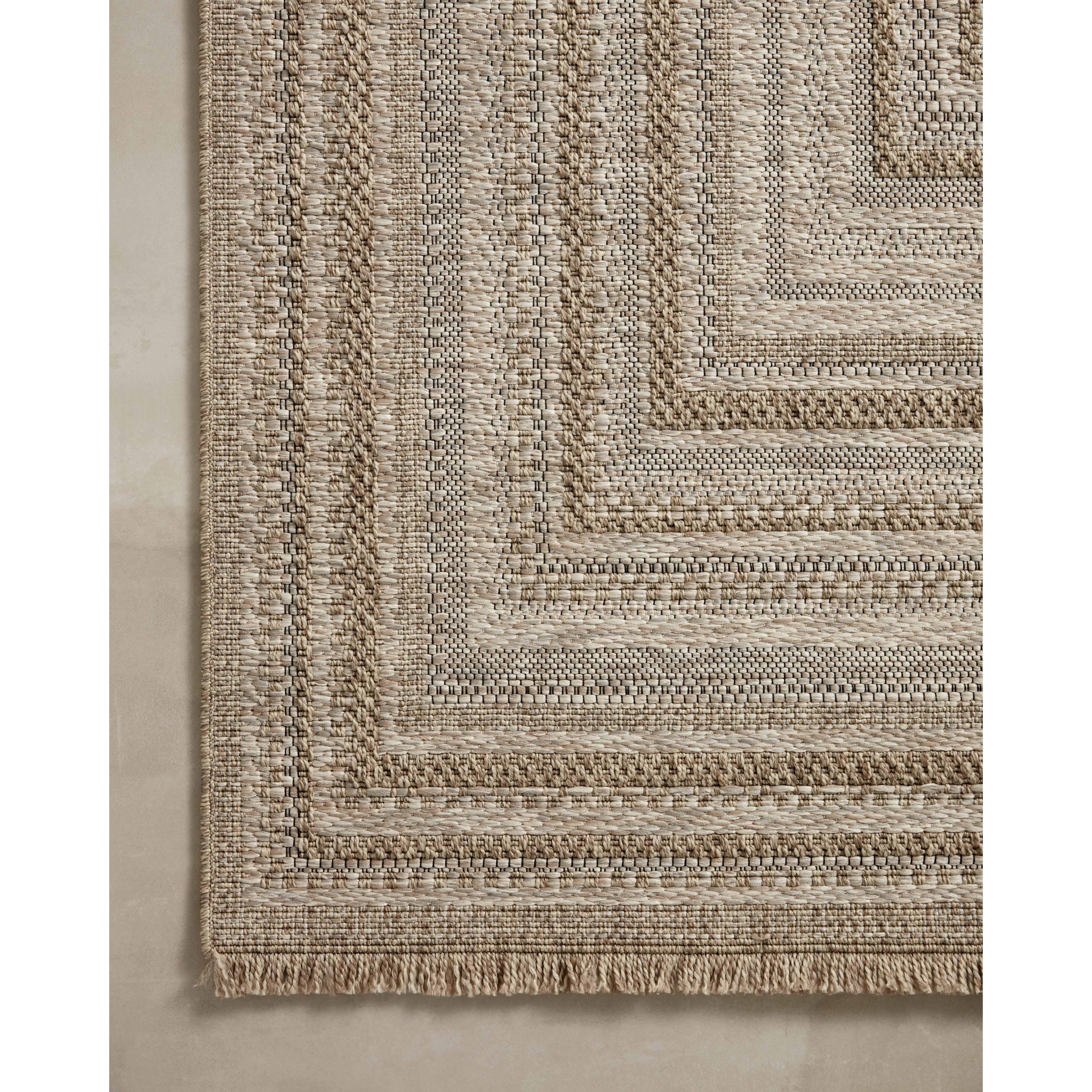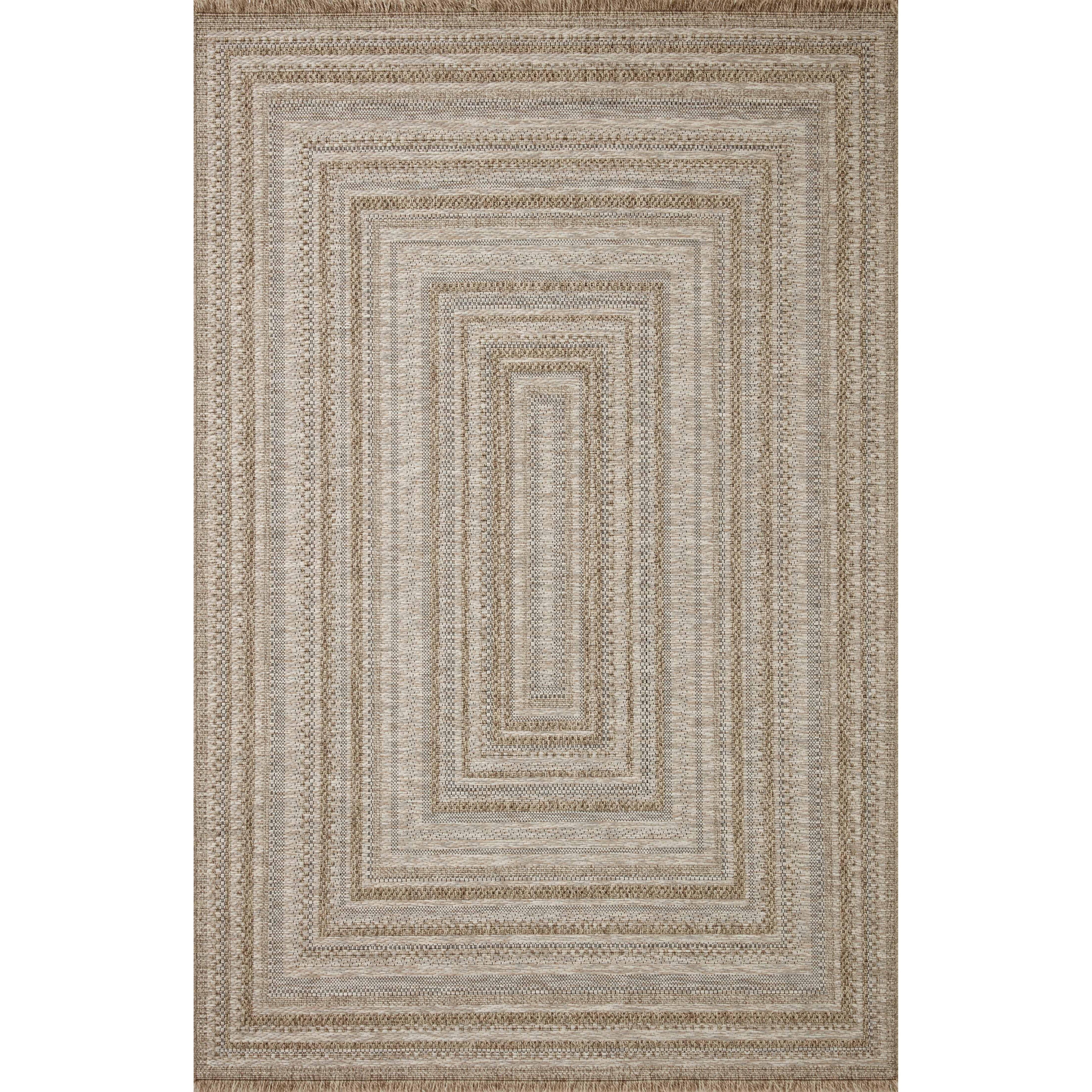 Dawn Daw 01 Natural rug from the Dawn Collection, perfect for brightening up your indoor or outdoor space. Crafted to resemble a woven sisal rug, this rug is power-loomed from 100% polypropylene, ensuring water and mildew resistance for durability in any weather. The modern graphic patterns in tonal beige neutrals offer a contemporary touch to your decor.