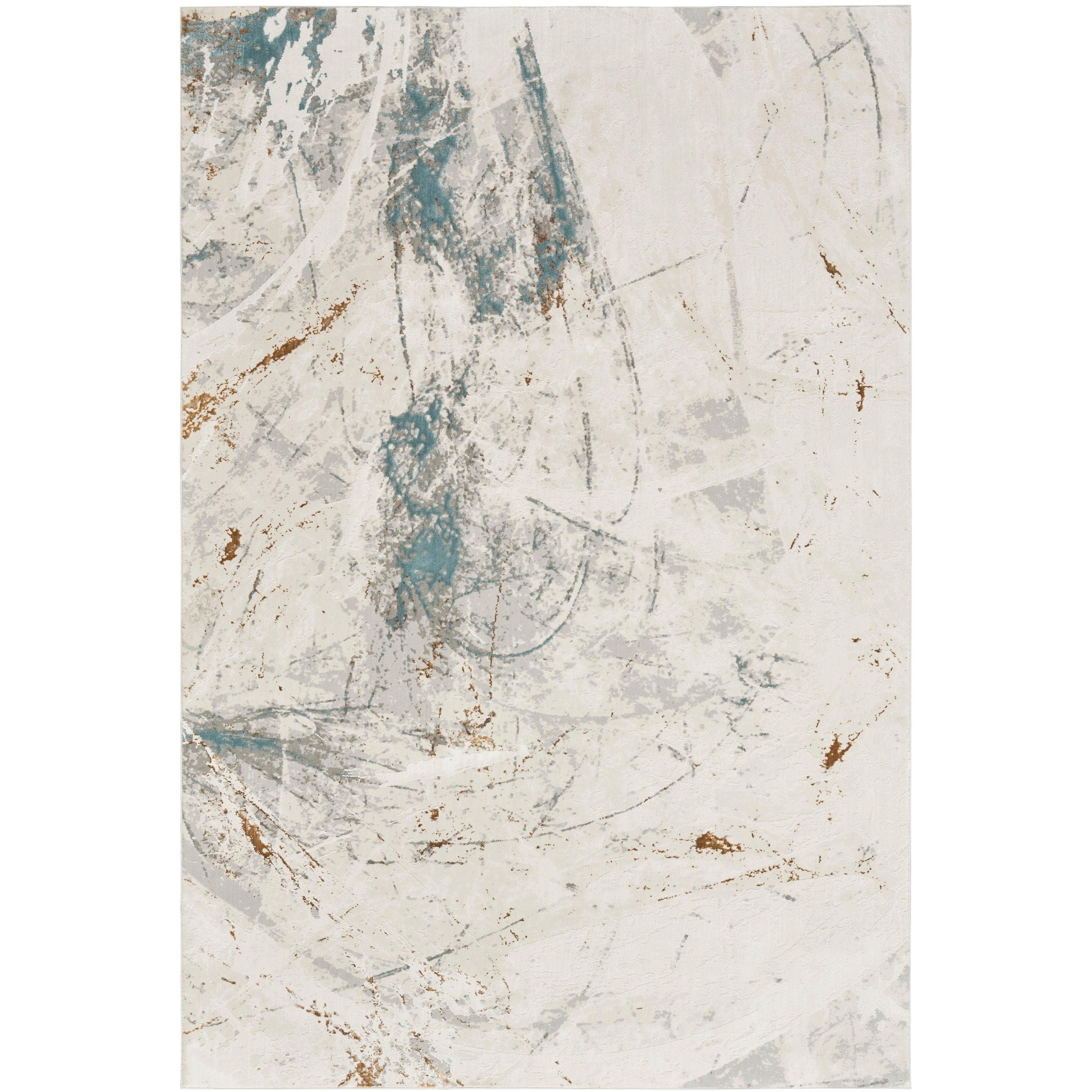 Desire DSR04 Ivory Grey Blue rug from the Desire Collection. This collection beautifully merges classic design with a contemporary touch, offering a range of geometric and abstract patterns. The neutral color palette complements any decor, while the brilliant sheen adds a unique dimension by reflecting or absorbing light for dual visual effects.
