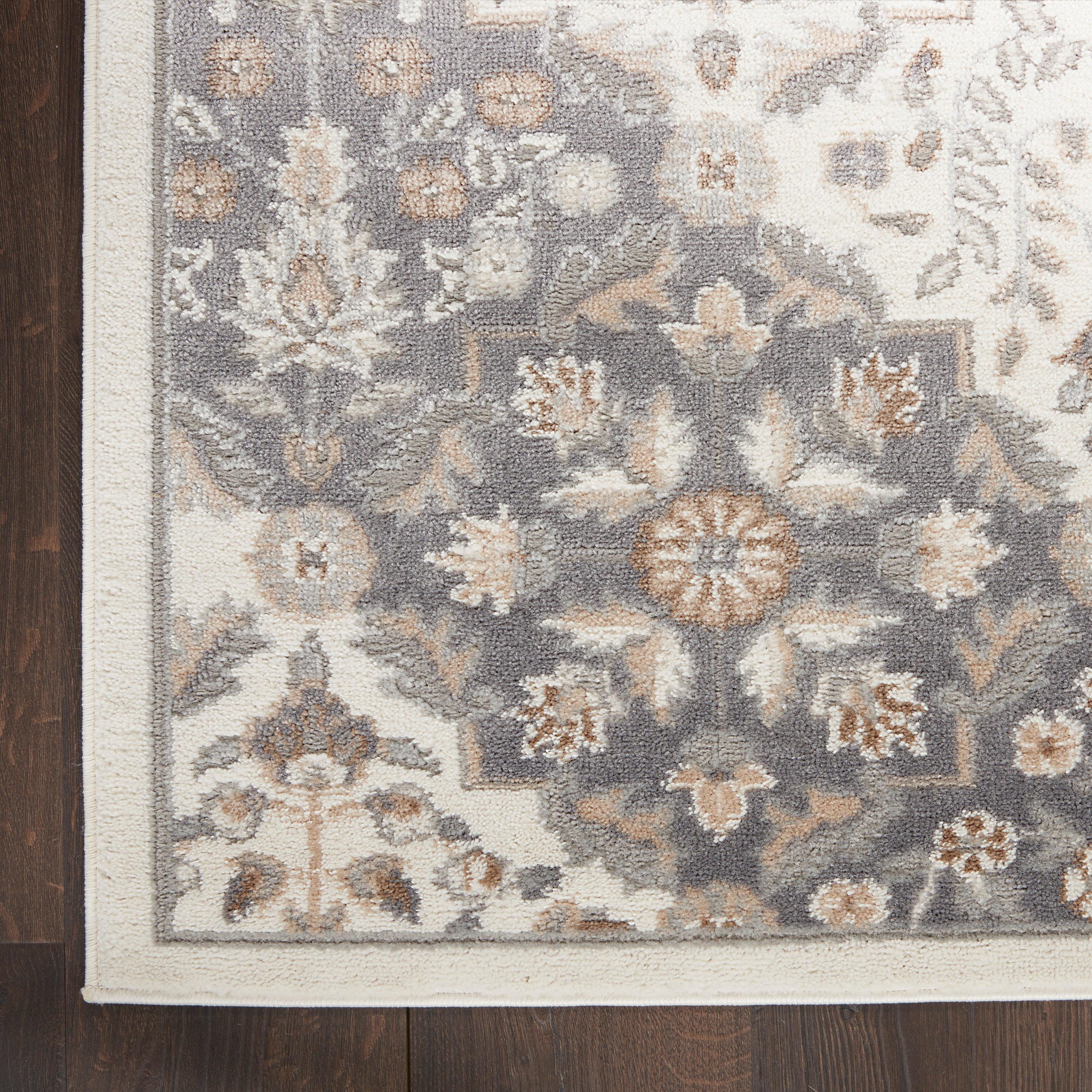 Elation ETN08 Ivory Grey area rug from our captivating collection. With a variety of designs including vintage floral patterns and modern geometric shapes, these rugs are sure to enhance any room in your home. Available in different sizes, you can easily find the perfect fit for your entryway, living room, or bedroom to bring a touch of fresh style to your space.