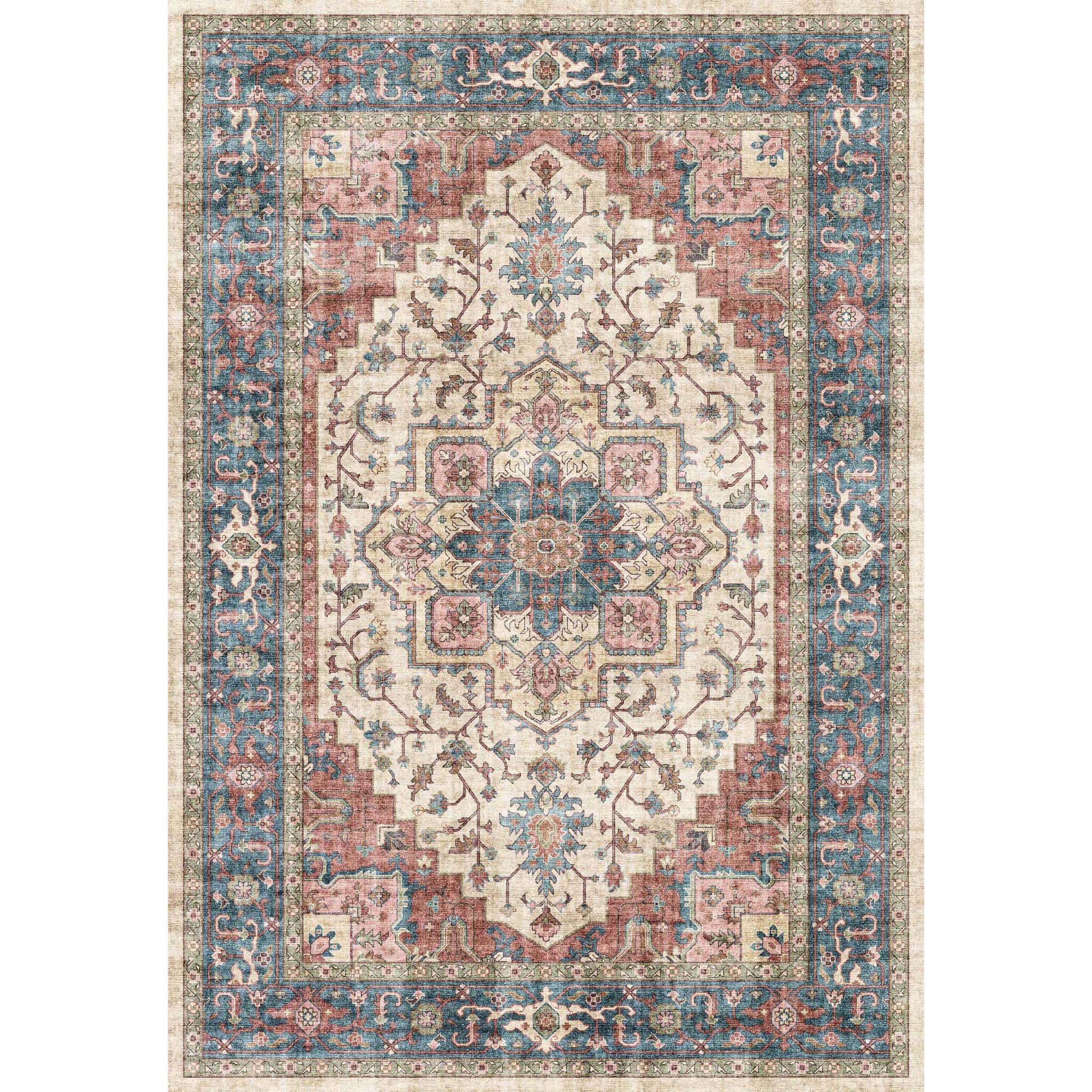 Elise 6302 Red Blue Beige rug, featuring digitally-printed distressed and rustic patterns for a modern twist on traditional designs. The earthy clay tones bring a touch of the outdoors into your home, creating an adventurous yet sophisticated ambiance. Southwestern-inspired motifs are trending in interior decor, making the Elise collection a stylish choice for any space.
