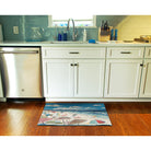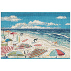 Introducing Esencia Dog Beach Blue, a charming and unique novelty mat perfect for adding a touch of coastal ambiance to your space. This transitional contemporary design showcases a whimsical beach scene, complete with vibrant multicolor umbrellas in shades of green, blue, red, orange, and yellow. The adorable black dogs frolicking on the sandy beach create a playful and inviting atmosphere.
