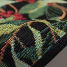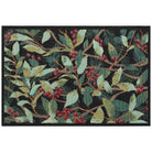 charming Esencia Holly Field Green mat, perfect for adding a touch of winter botanical beauty to your home decor. Adorned with scattered red holly berries and lush pine boughs intertwined with vibrant green holly leaves, this mat exudes a festive flair. The intricate design is further enhanced with delicate gold accents set against a sleek black background.