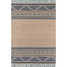 Esme Esm 4 Blue area rug, where humble materials blend effortlessly with a high-fashion aesthetic. This modern rug collection showcases a beautiful fusion of natural jute, cotton, and wool fibers, creating a tapestry of textural tribal designs and geometric motifs. Handwoven with intricate braided, loop, and threaded techniques, each rug is a finely crafted masterpiece. The addition of fringed embellishments adds a touch of relaxed elegance to the overall design.