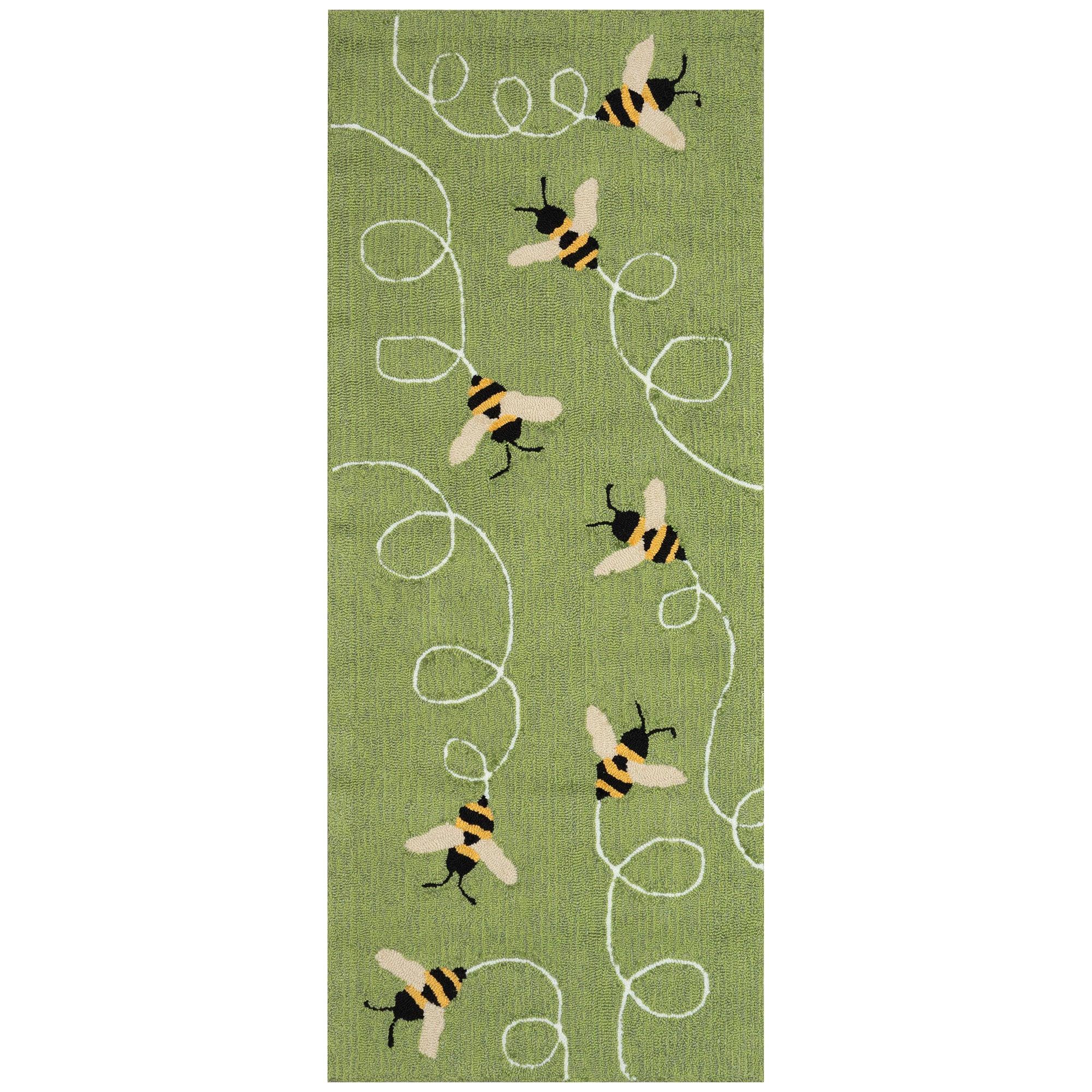 Frontporch Buzzy Bees Green mat, a charming and whimsical addition to your home decor. This decorative piece boasts a delightful design that blends rich colors effortlessly, making it a perfect accent for any room. The vibrant green hue adds a pop of color that will brighten up your space instantly.