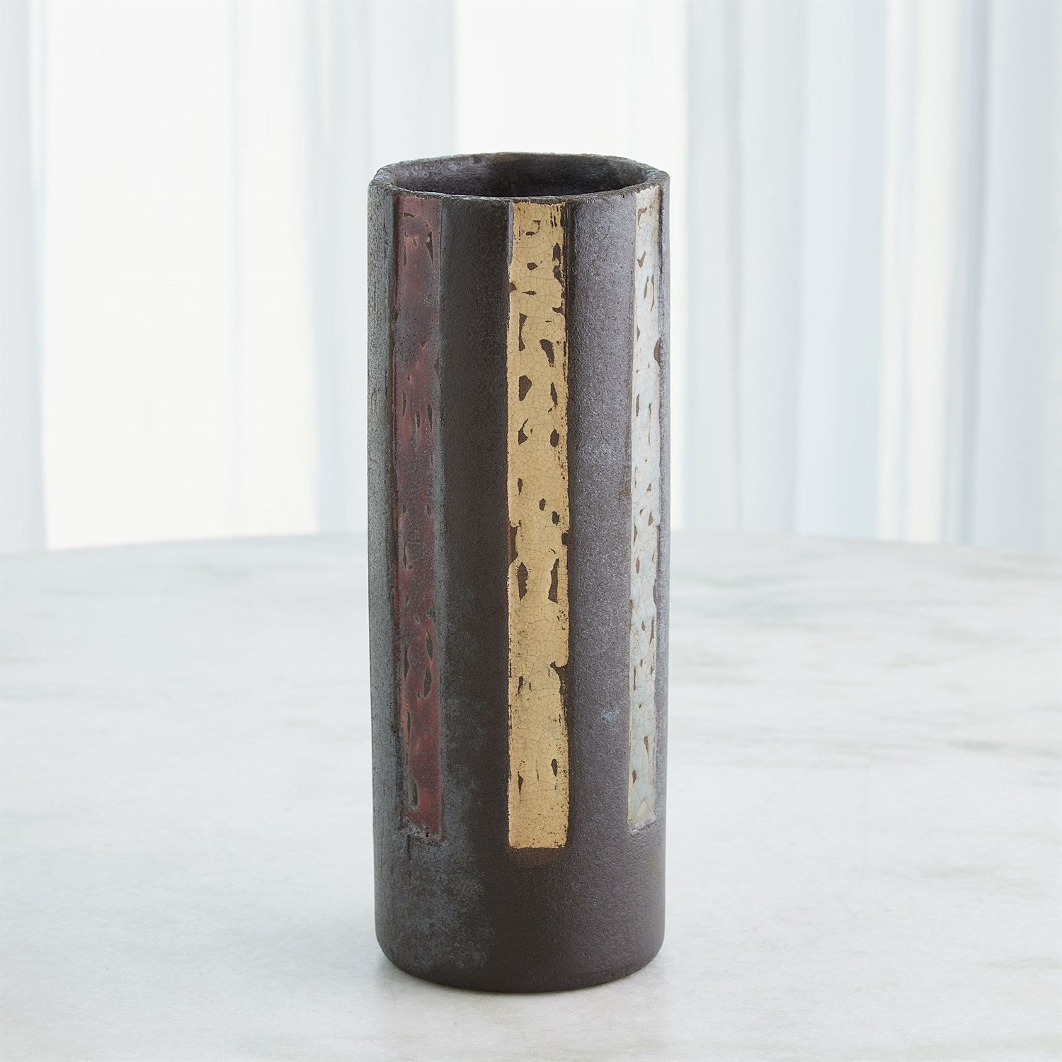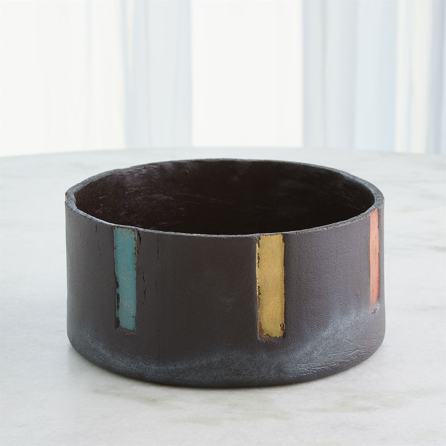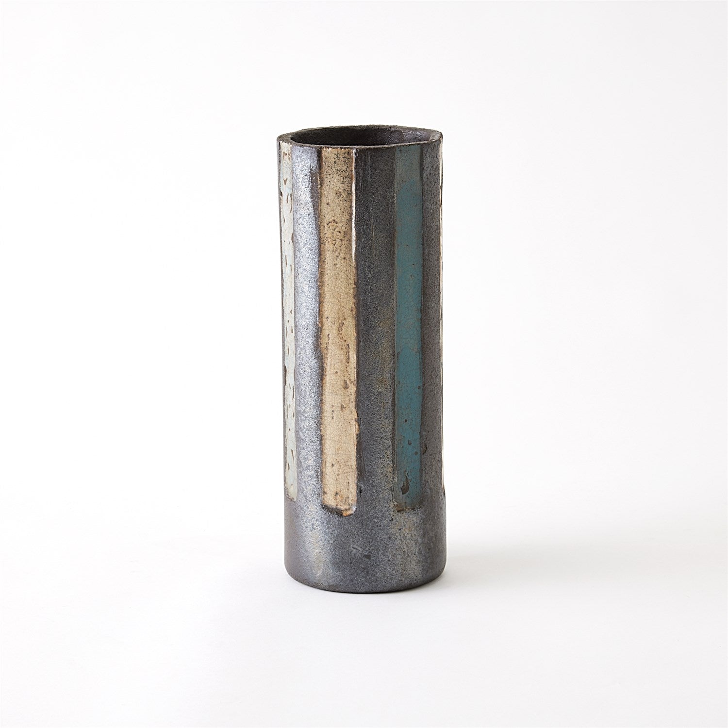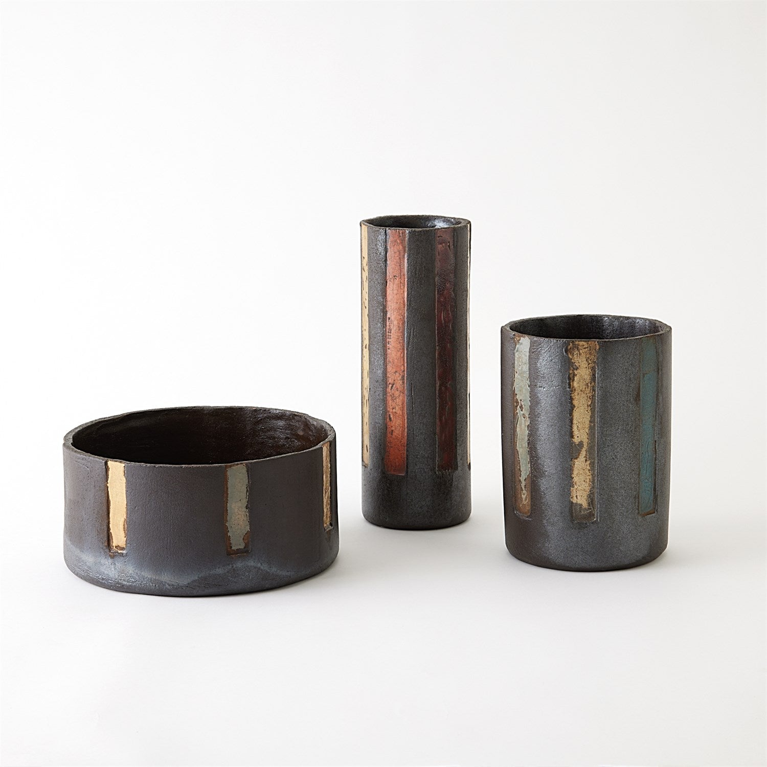 The Digit Vases and Bowl are exquisite examples of handcrafted Portuguese ceramics, created using an ancient Japanese firing method known as Raku. The journey begins with skilled artisans hand-forming the clay into the desired shapes for the vases and bowl. The formed clay pieces are fired in a kiln at relatively low temperatures. When the ceramics reach the optimal temperature in the kiln, they are quickly removed while still glowing hot. These red-hot pieces are then placed into a container filled with combustible materials like sawdust, leaves, or paper. This ignition creates a reduced atmosphere within the container. As a result of the rapid cooling and reduction process, the glazes on the ceramics begin to crack and form intricate and often unpredictable patterns on the surface. This crackling effect is one of the hallmark features of the Raku firing process.