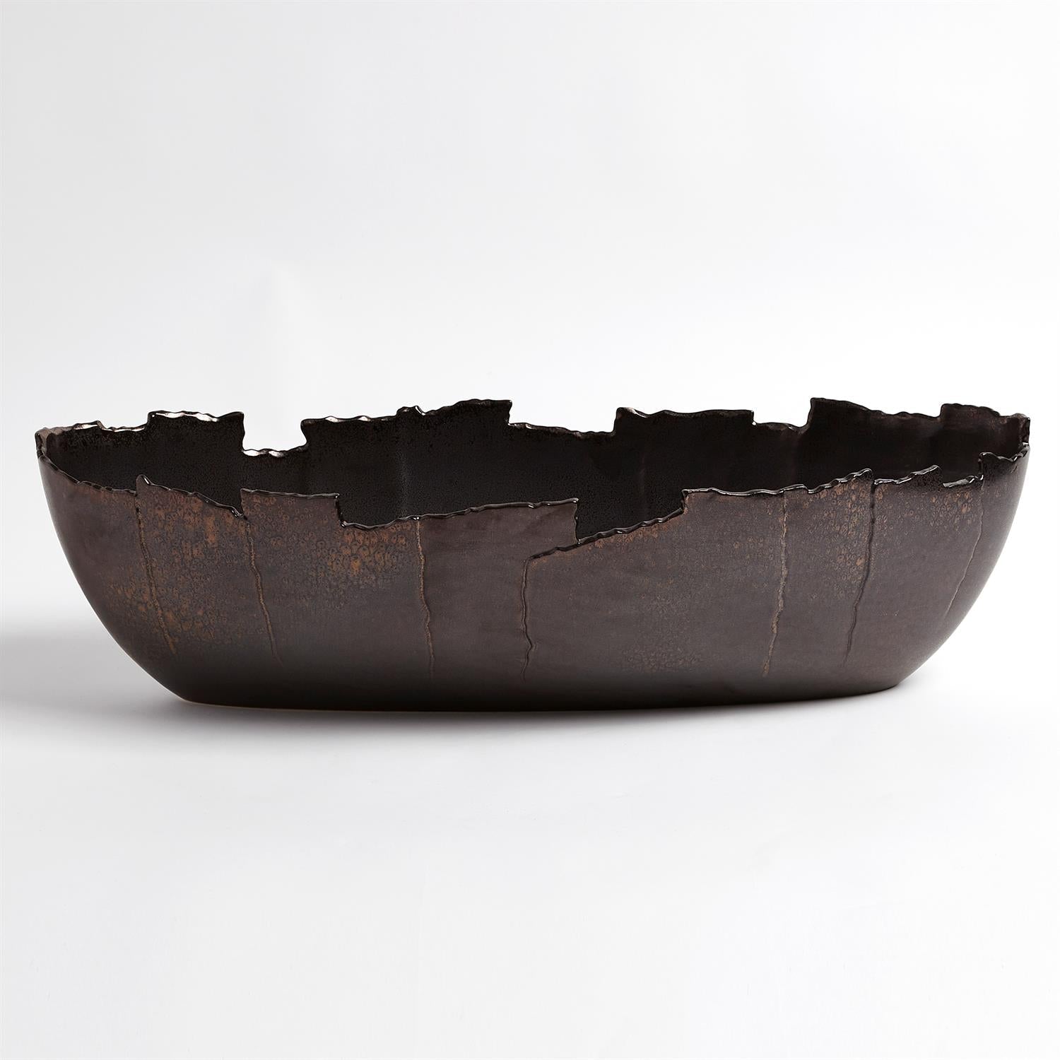 Inspired by the rigid lines of the San Andreas Fault, these Portuguese ceramics feature a reactive bronze finish.