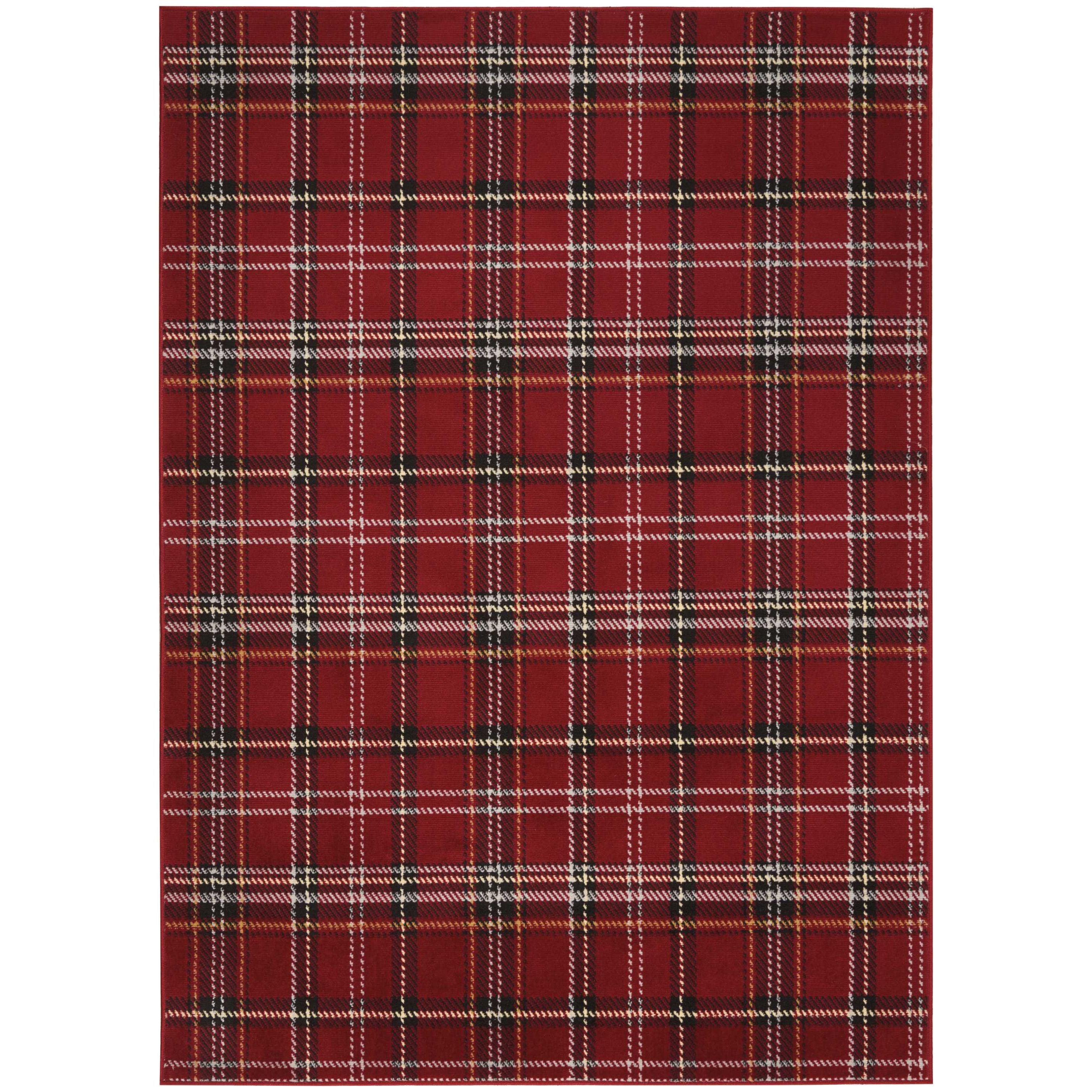stunning Grafix GRF03 Red area rug, featuring a captivating plaid design in vibrant red, cream, black, and blue hues. This rug is expertly crafted using high-quality polypropylene with a fabulously textured finish. The eye-catching pattern and colors make it a perfect accent piece for any room in your home.