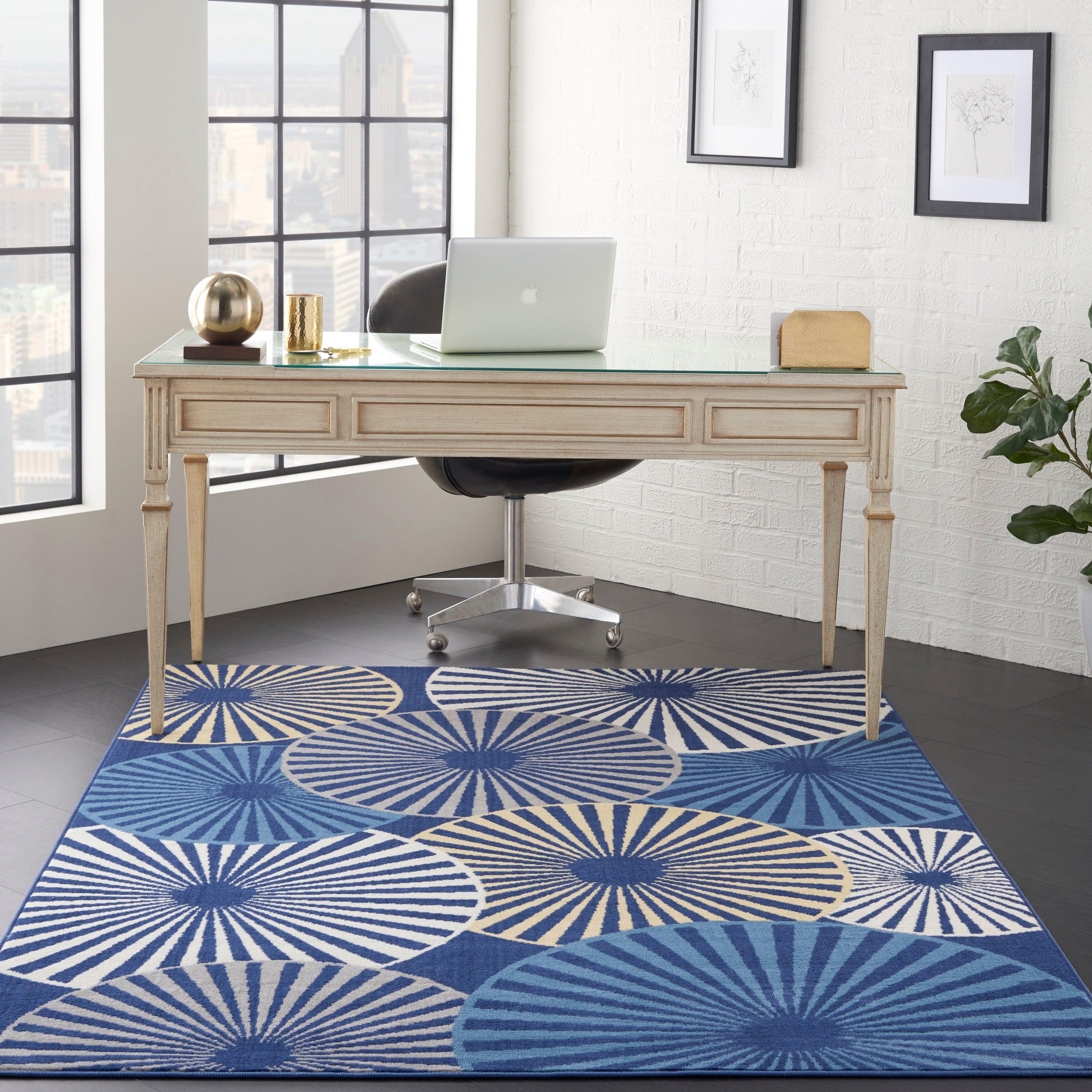 stunning Grafix GRF20 Navy area rug from the Nourison Grafix Collection. This rug is designed to make a bold statement with its striking graphic patterns, adding a touch of drama to any room. The contemporary color palettes available in this collection will bring a modern and captivating vibe to your space.