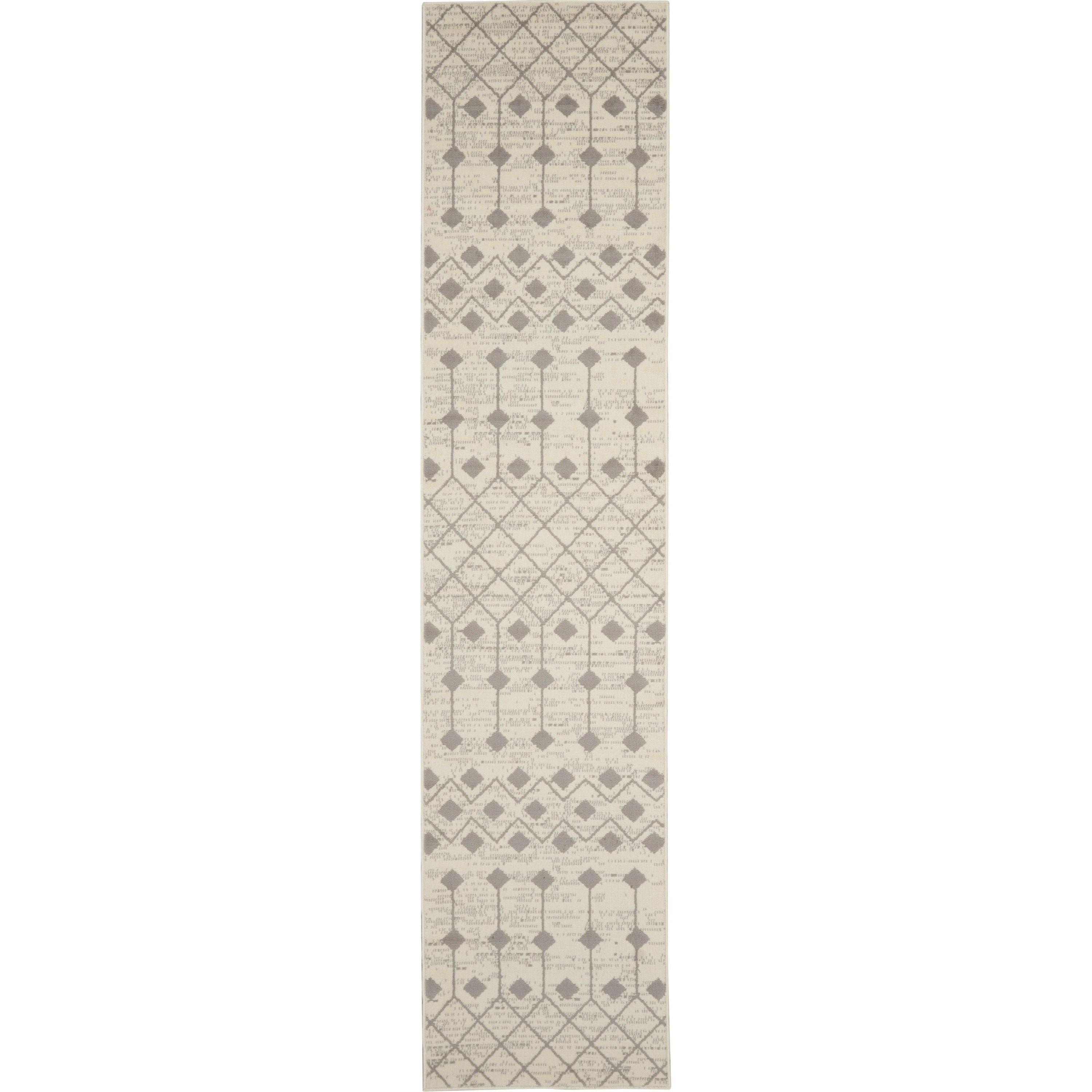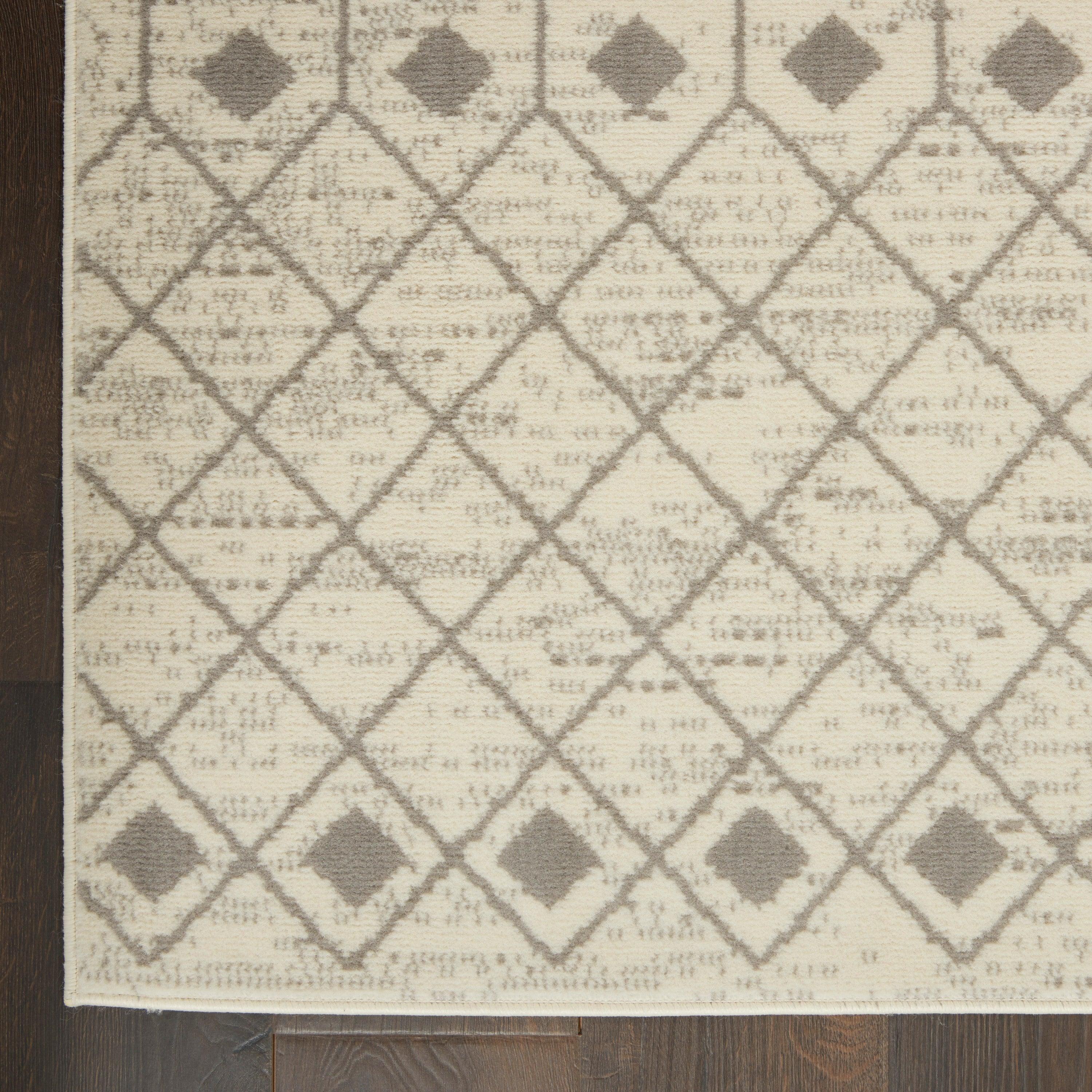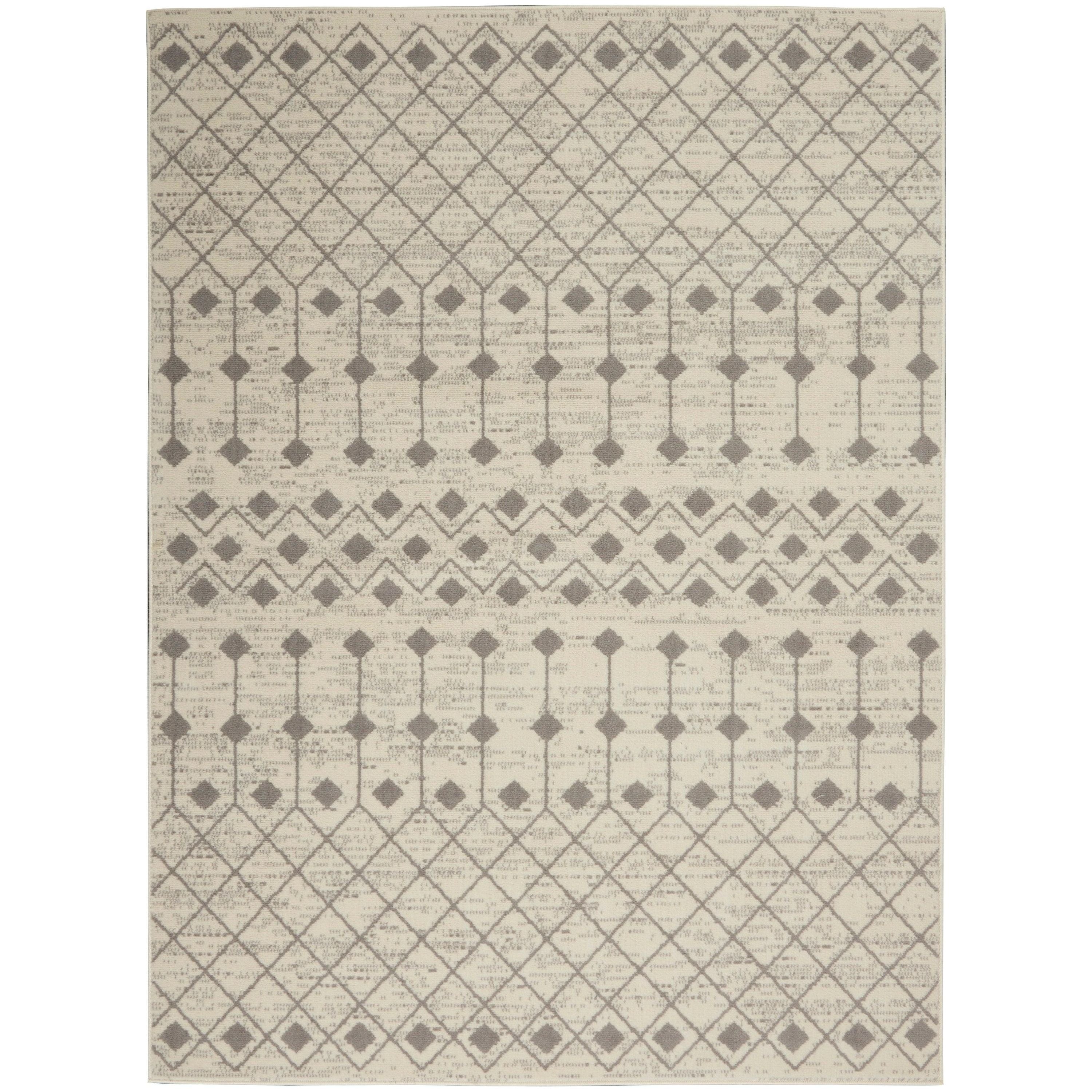 stunning Grafix GRF37 Ivory Grey area rug by Nourison, a captivating addition to elevate your space. This collection boasts bold and graphic designs that will bring a touch of drama to any room. Available in a variety of color palettes, these contemporary rugs are crafted from durable polypropylene using power-loom technology, ensuring both longevity and fabulous texture.