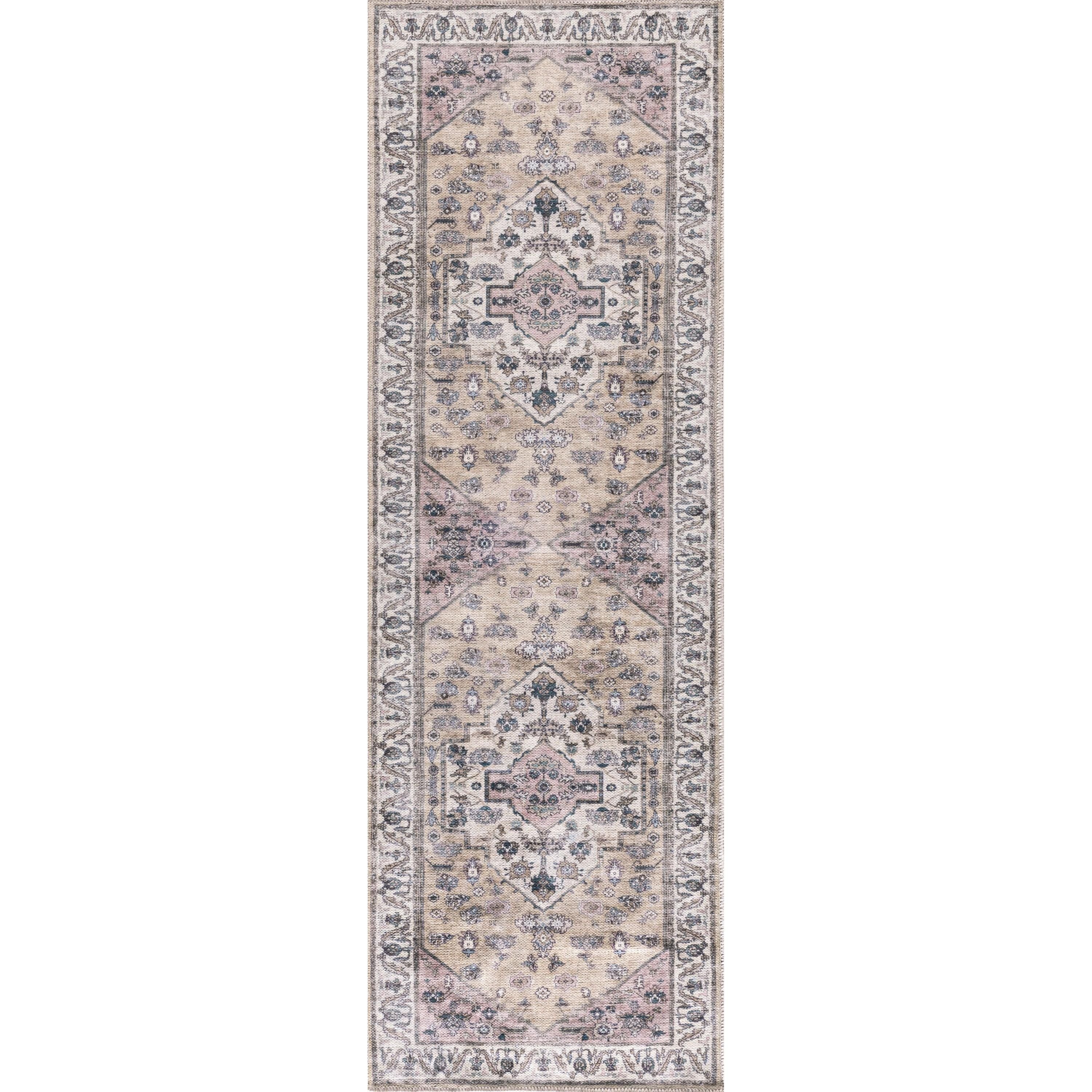 Grand Washables GRW03 Beige Multicolor Rug, a delightful addition to your home decor. This collection embodies the charm of a cherished heirloom rug, minus the extensive maintenance. Featuring intricately printed Persian designs with tastefully distressed color palettes, these rugs exude a timeless aesthetic that effortlessly complements any space.