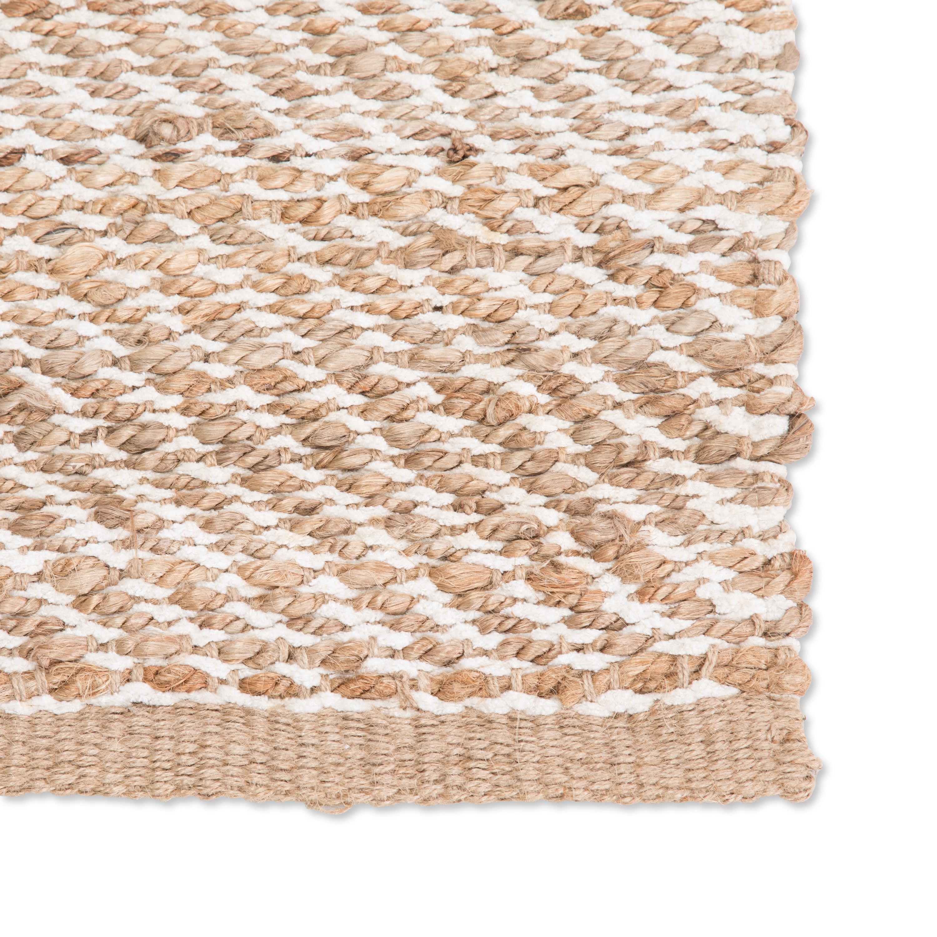 Himalaya HM07 Diagonal Weave area rug - a perfect blend of natural charm and modern design. This cotton-backed rug features a beautiful buff beige tone with subtle white striated accents, creating a unique diagonal weave pattern that adds depth to any space. Hand-woven from jute and rayon, this rug offers a tactile experience that is both intriguing and stylish, perfect for adding a boho touch to your home decor.