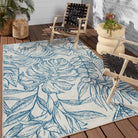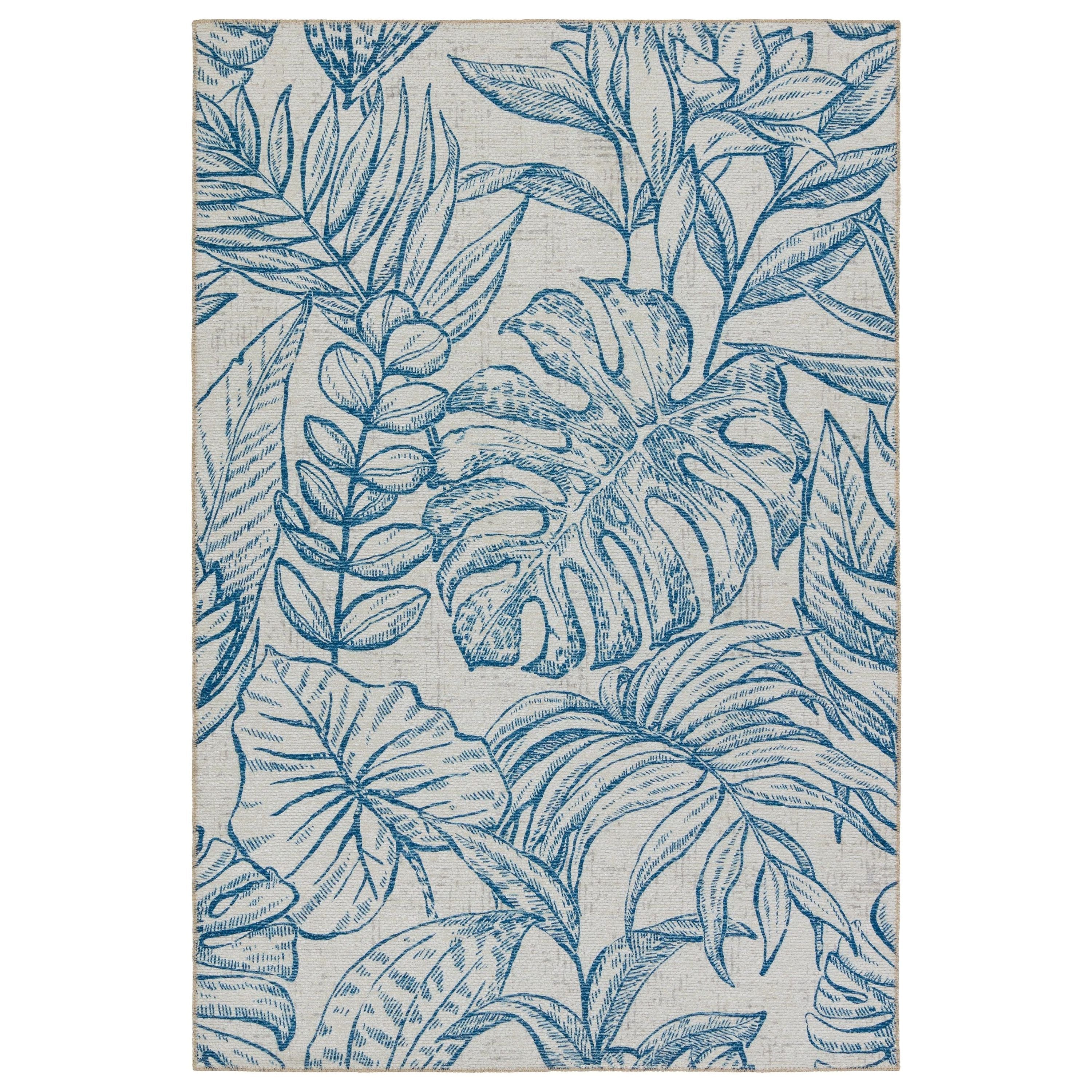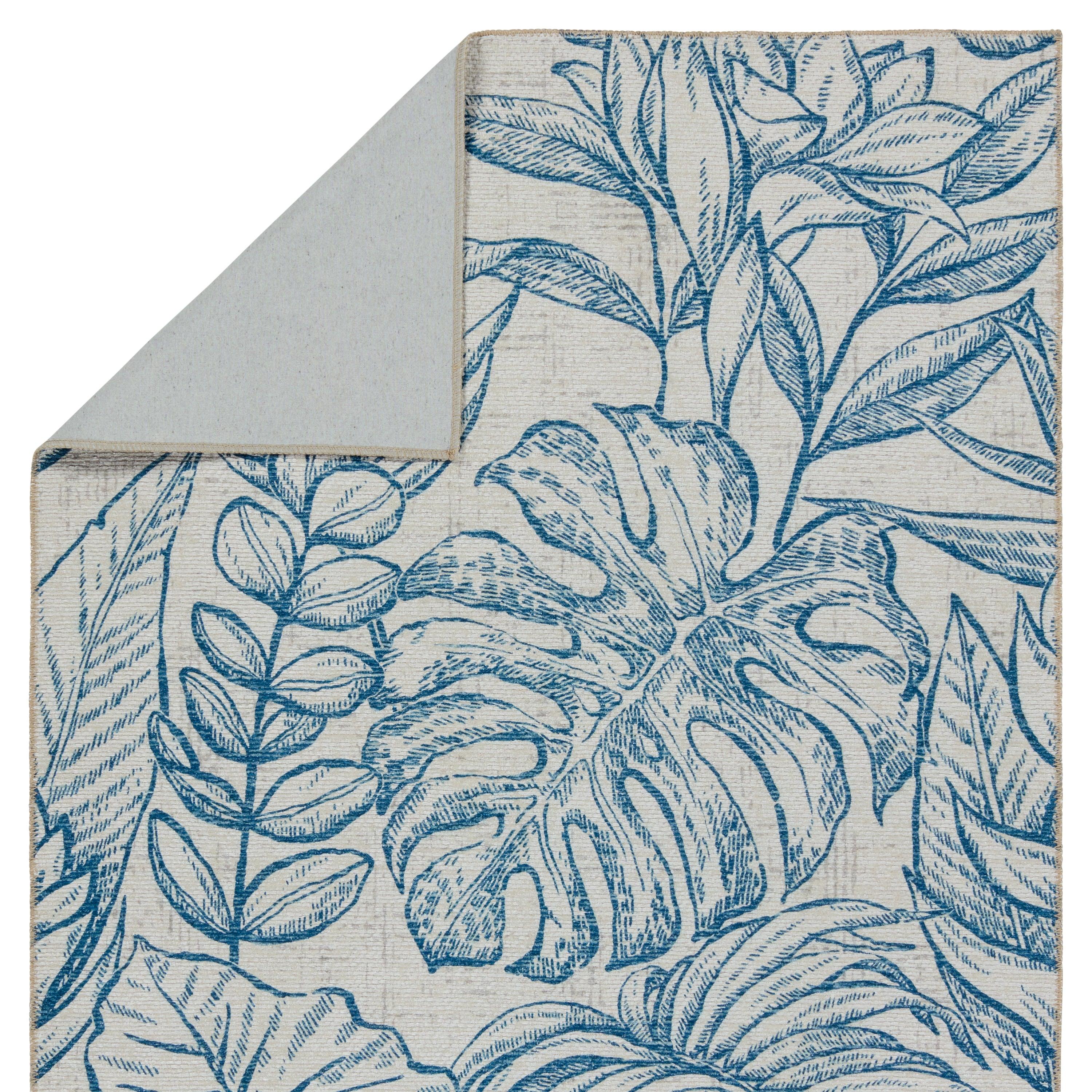 Ibis IBS03 Tropic rug from the vibrant Ibis collection, designed to add a pop of color and style to any indoor or outdoor setting. Crafted with durable polyester material, this rug boasts eye-catching designs that make a bold statement in any space. The Tropic rug showcases a charming tropical plant motif in navy and taupe tones, perfect for creating a lively atmosphere.