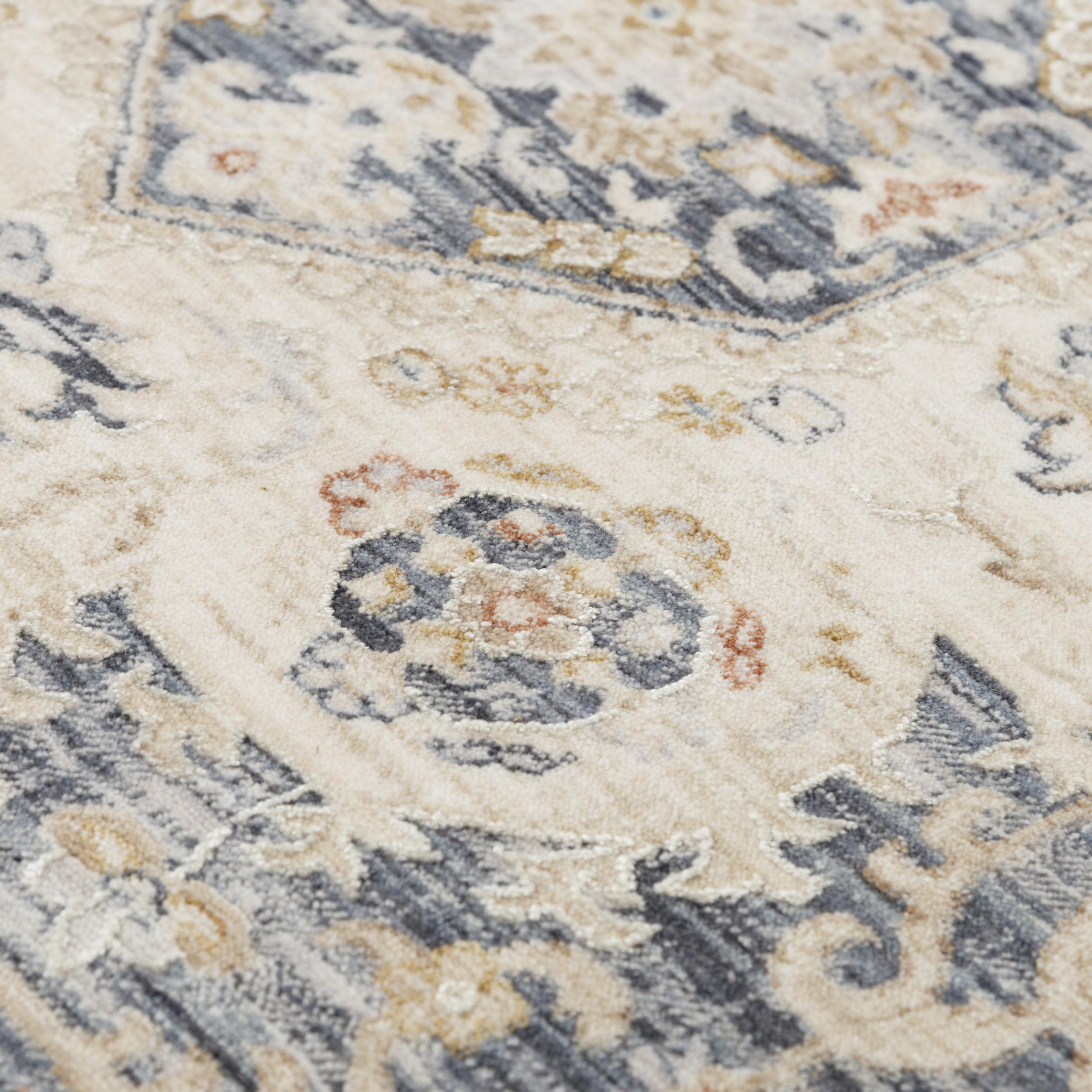 Iconic ICO757, a stunning rug inspired by Persian carpets for a touch of elegance and modern style. Crafted by Rizzy Home, this Medallion Rug seamlessly blends transitional and contemporary design elements. The rug is meticulously power-loomed using a blend of 85% polyester and 15% polypropylene, ensuring both durability and comfort.