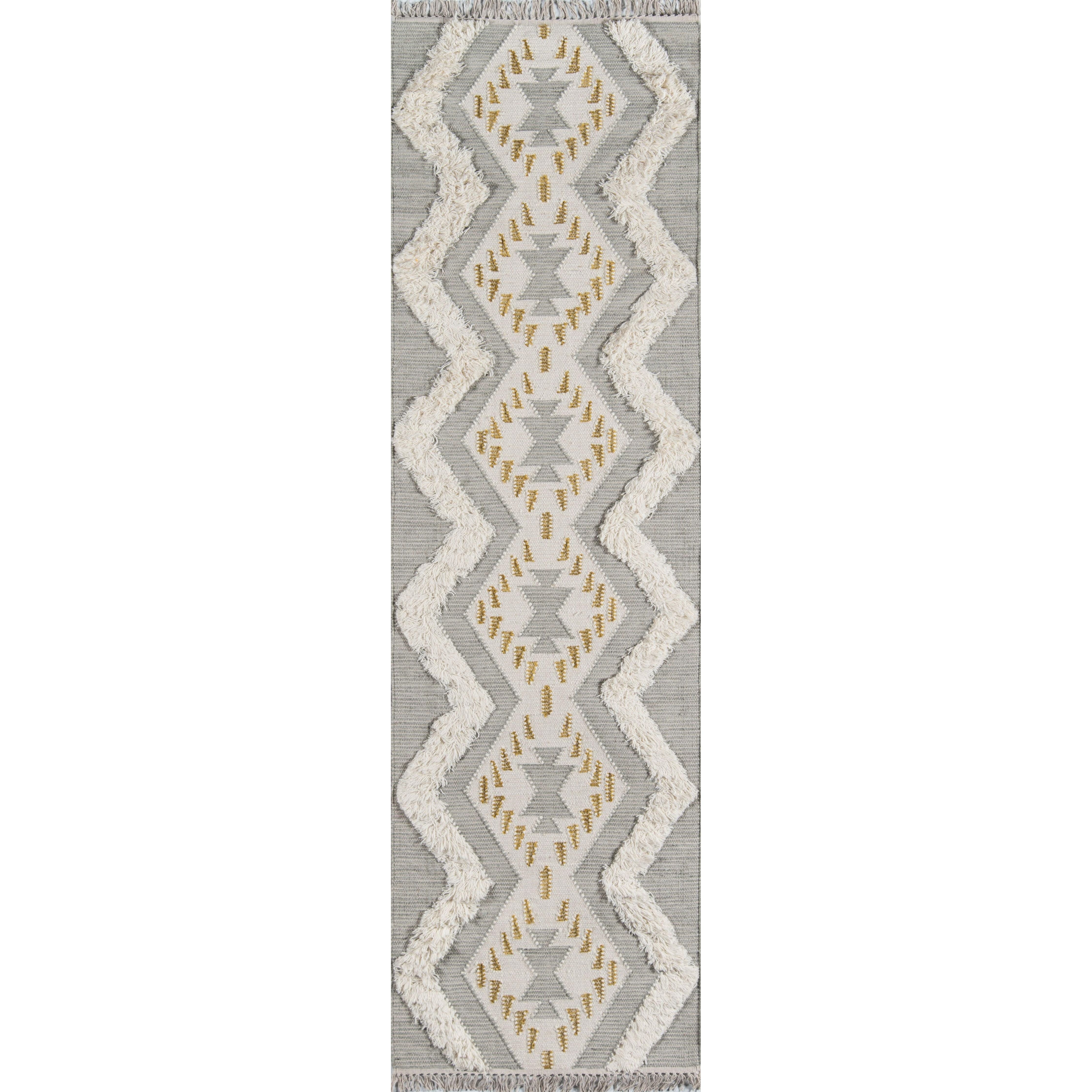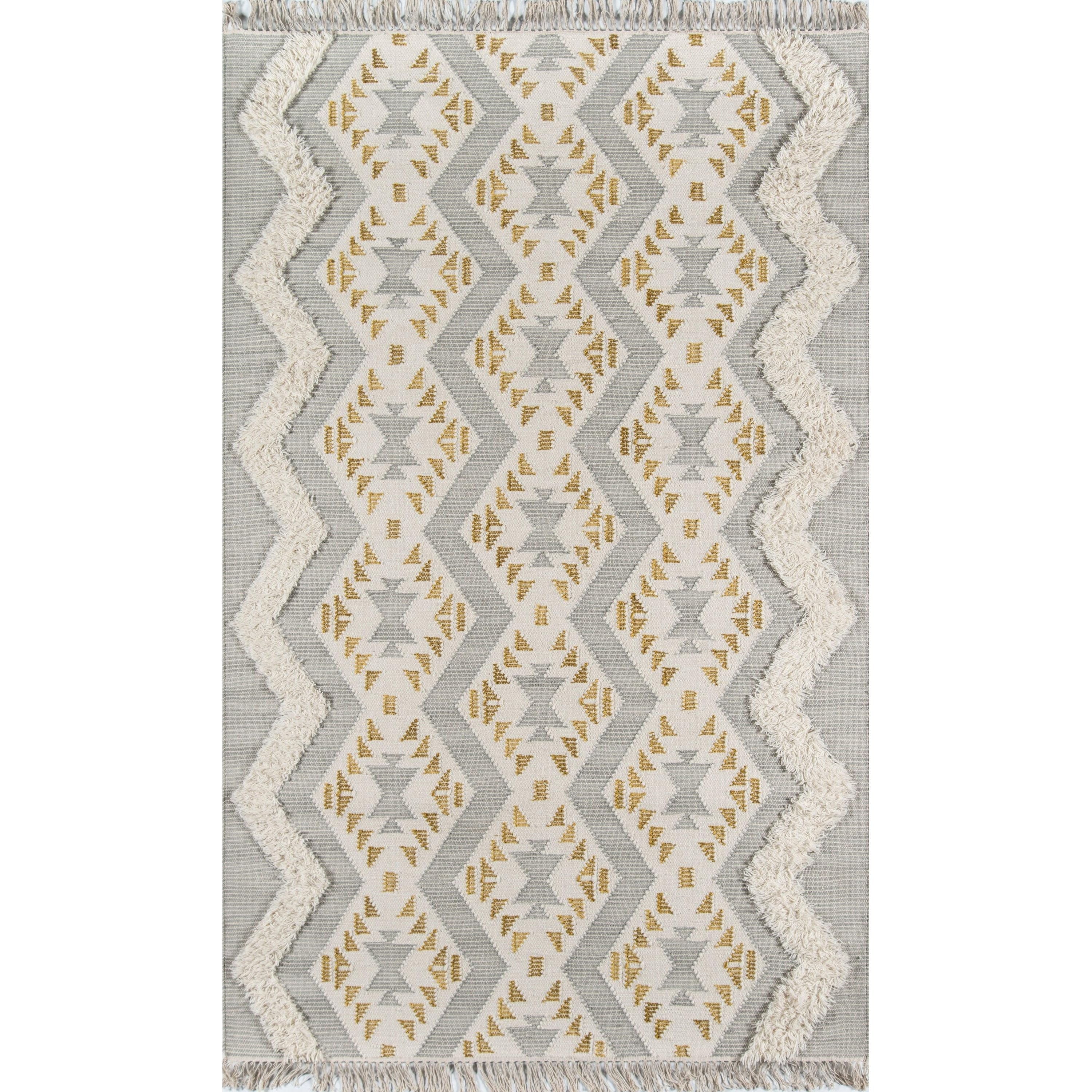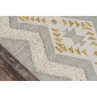 Indio Ind 1 Grey area rug, a stylish addition to any home decor with its Southwestern-inspired design. Handmade with care, this rug brings a cozy feel to your interior spaces. The intricate patterns pay homage to tribal crafts, using a unique blend of cut and looped wool fibers to create geometric shapes like diamonds, stripes, triangles, and pyramids.