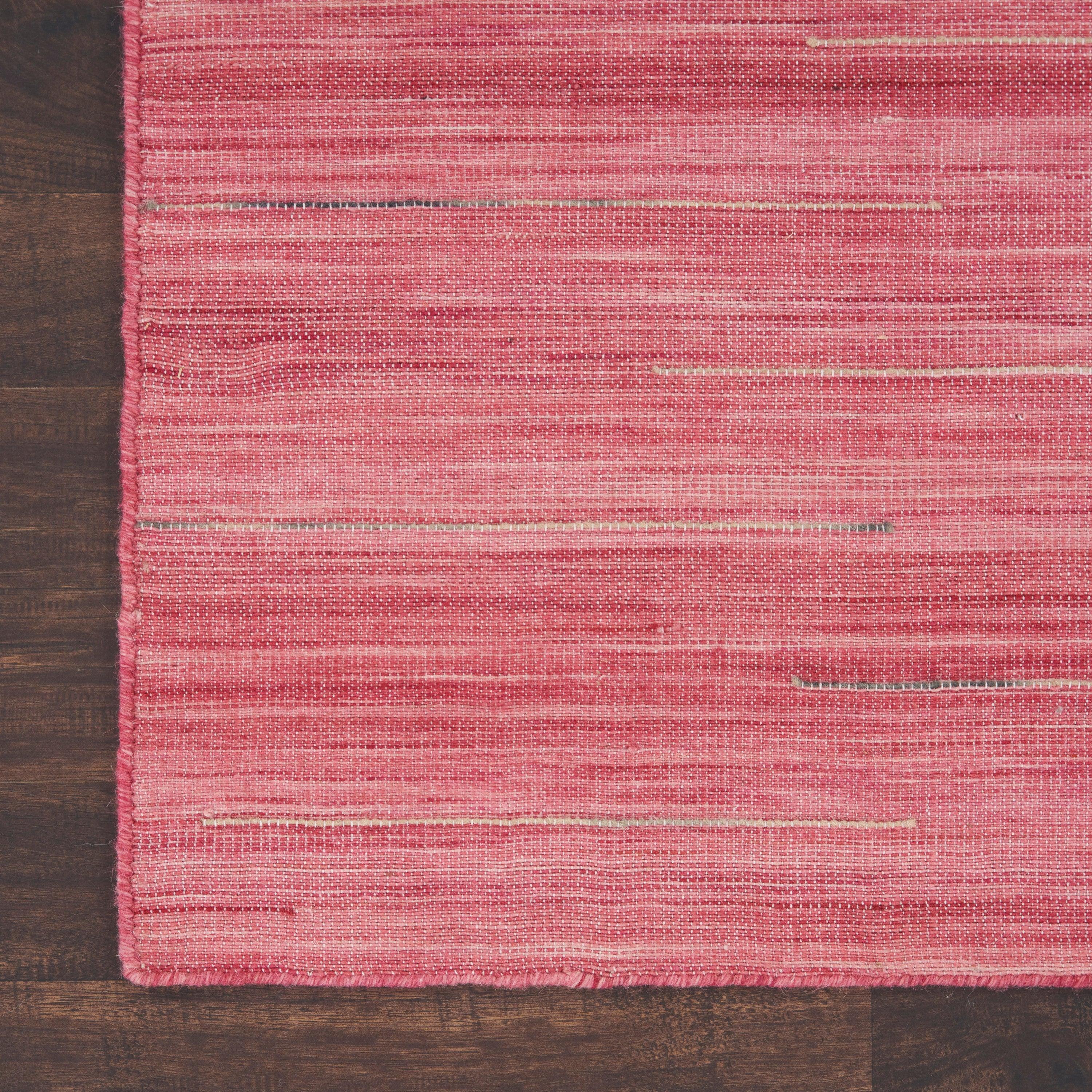 Interweave IWV01 Rose from our exclusive collection of area rugs. Crafted with care, these rugs are designed to elevate the aesthetic appeal of your living space effortlessly. Made from a luxurious blend of wool and cotton, they offer both durability and style. The unique flat weave design, combined with multi-tonal grounds and ombre-colored yarns, creates a stunning visual impact that will surely draw compliments from your guests.