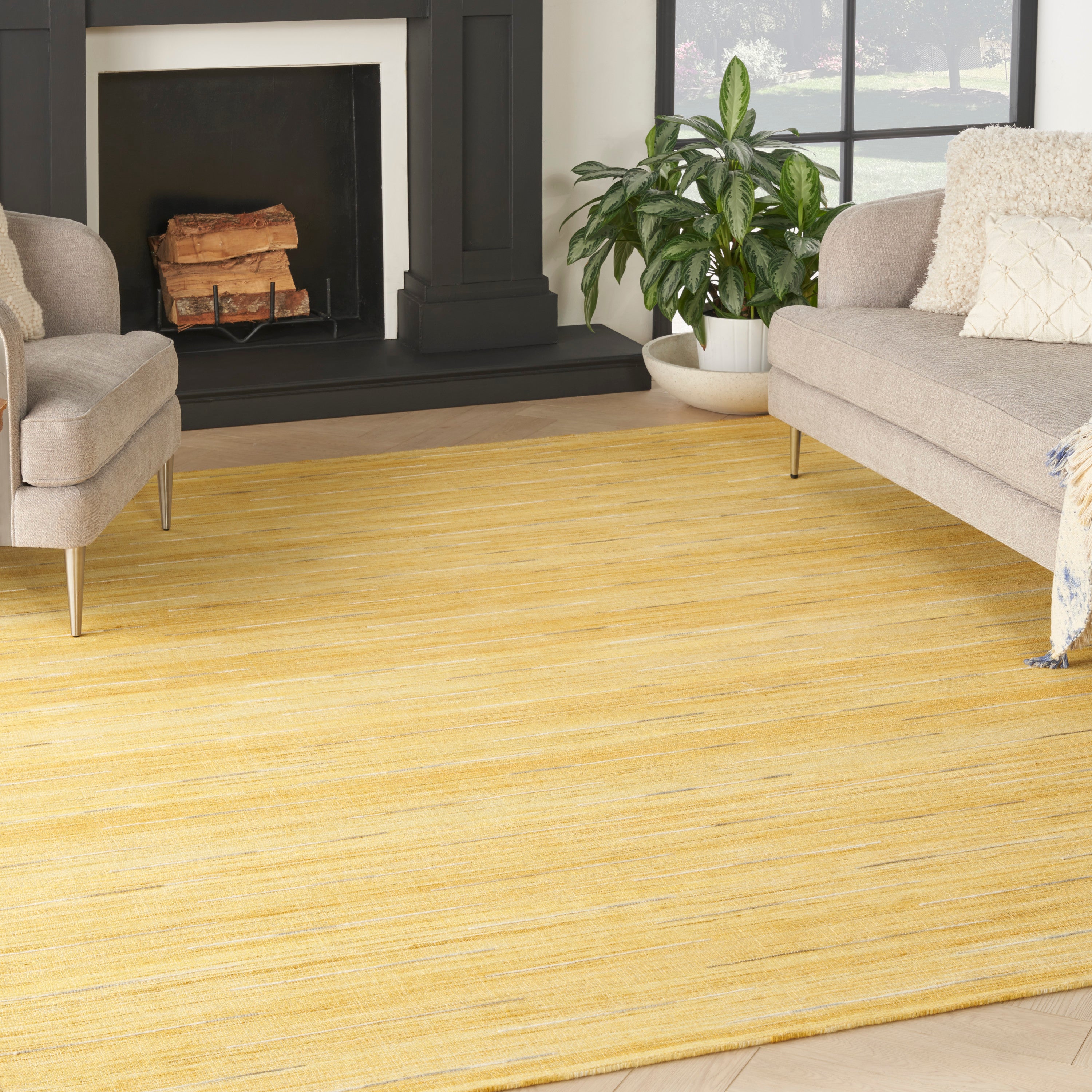 Interweave IWV01 Yellow, a stunning addition to the Interweave Collection of area rugs that will elevate the style of any room in your home. Handmade with care using a luxurious blend of wool and cotton, these flat weave rugs boast a unique design that adds visual interest to your space. The multi-tonal ground is intricately woven with ombre-colored yarns of varying lengths, creating a striking pop of color that catches the eye.