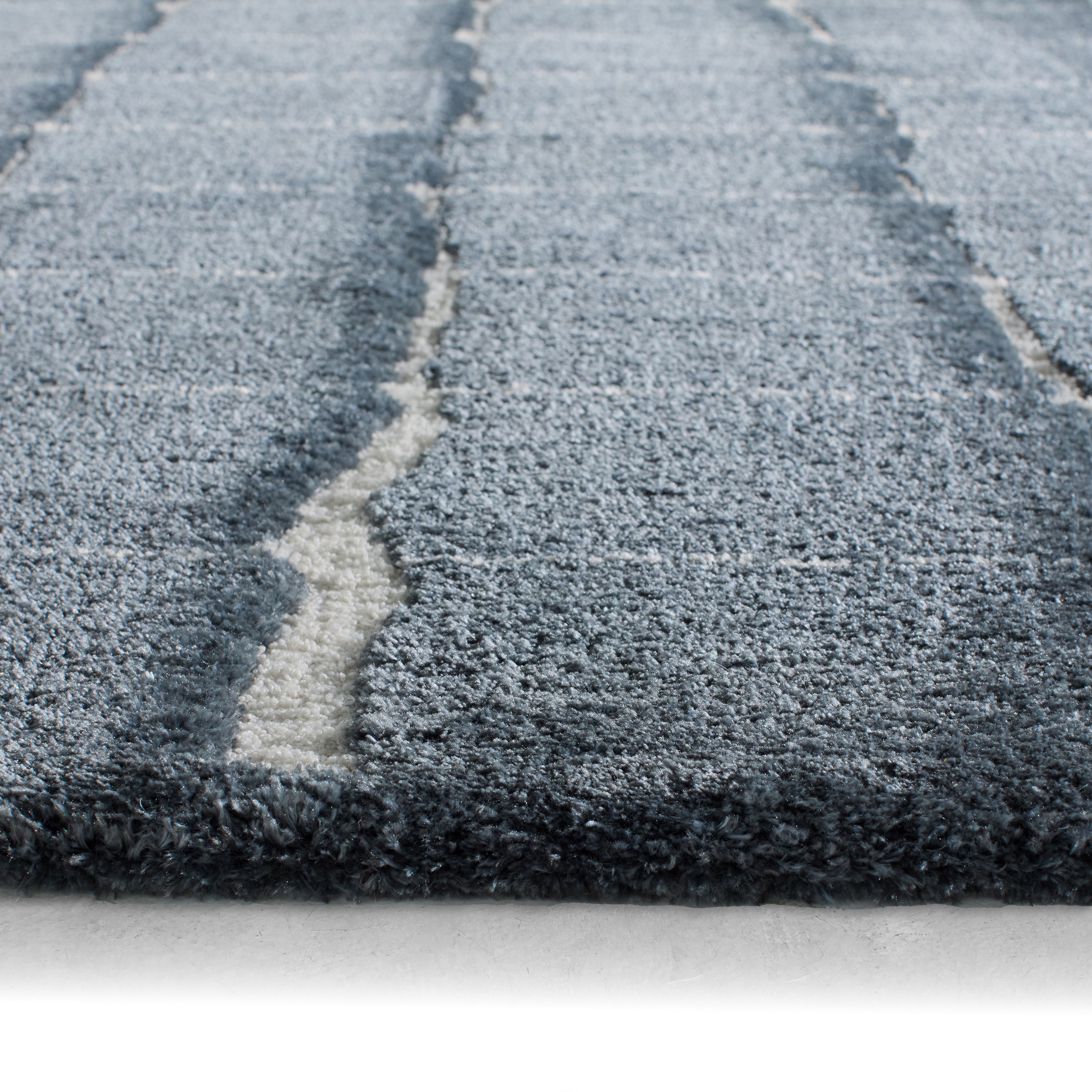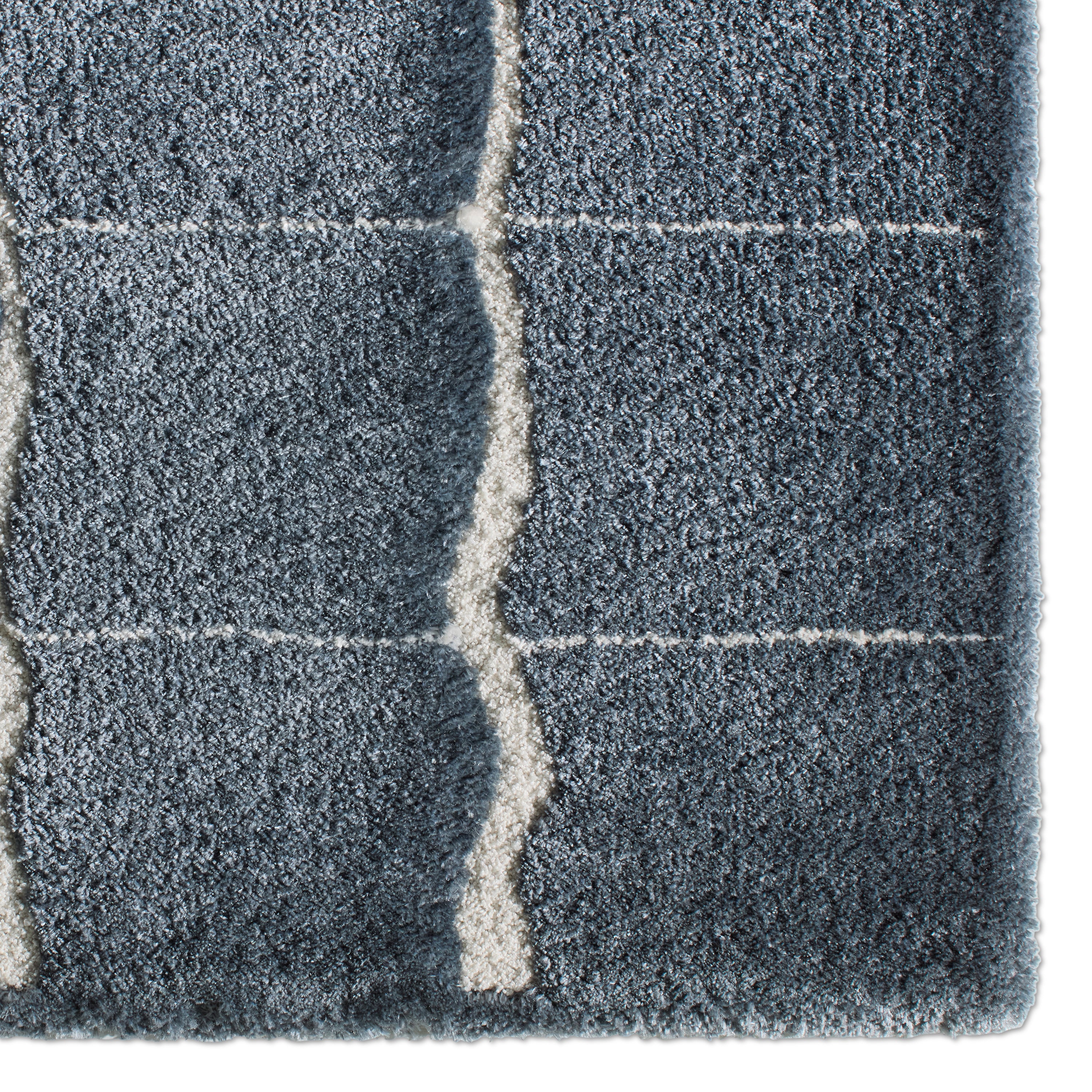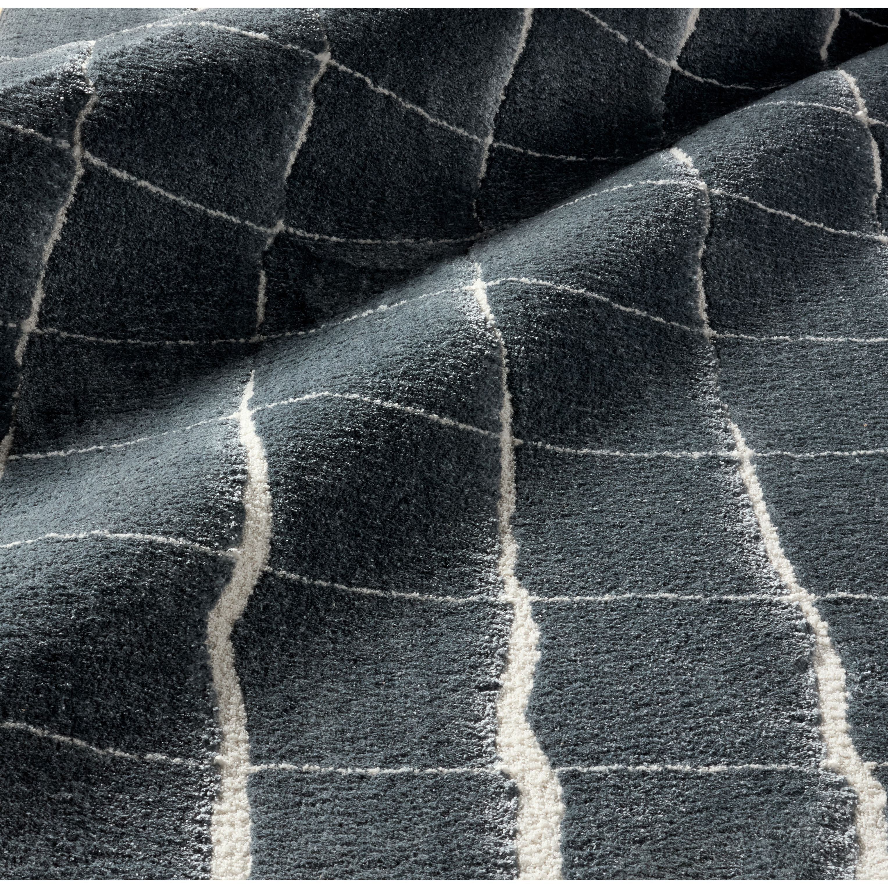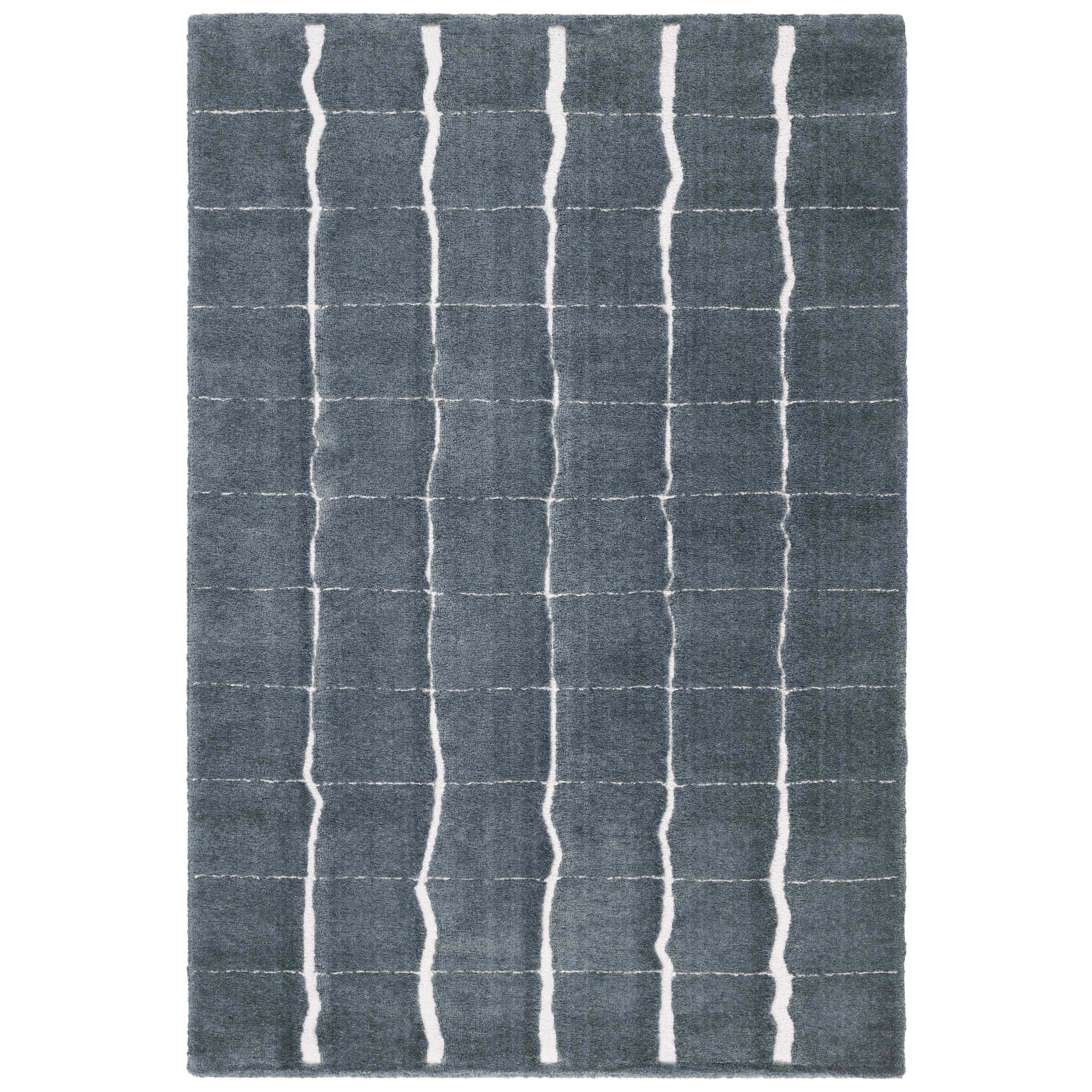 Experience softness and textural depth with the Tazeka collection. Drawing inspiration from the intricate geometries found in nature, each piece showcases perfectly imperfect lines woven into earthy hues and finished with a subtle sheen. The Kade rug’s captivating cracked earth design showcases slender, imperfect ivory lines against a rich blue backdrop, infusing warmth into any space it graces.