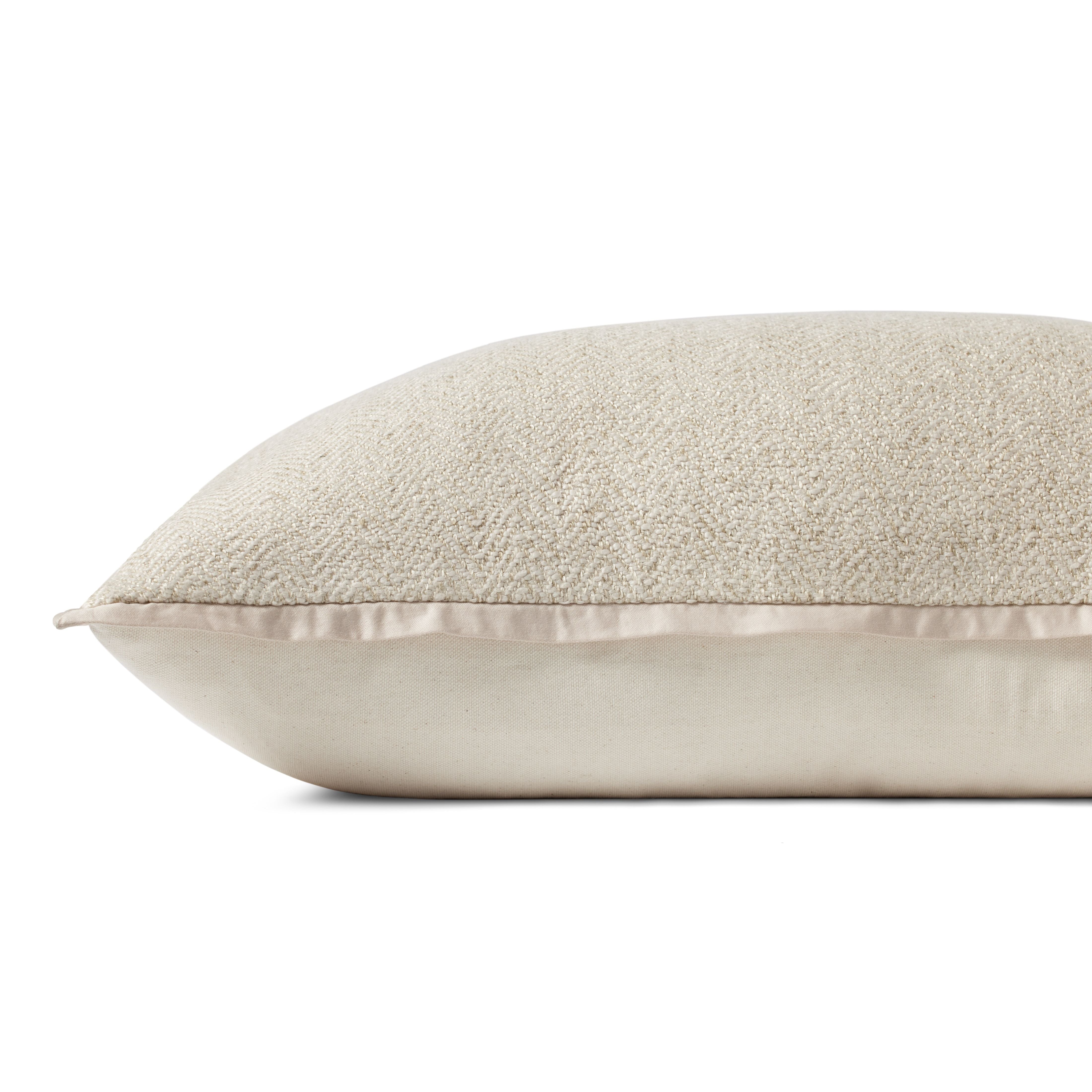 This neutral, oatmeal-toned throw pillow from Jean Stoffer x Loloi features darker grey flange edging for a polished look. The pillow cover is made of cotton and rayon and measures 13” x 21”, an elongated size to style in living rooms and bedrooms.