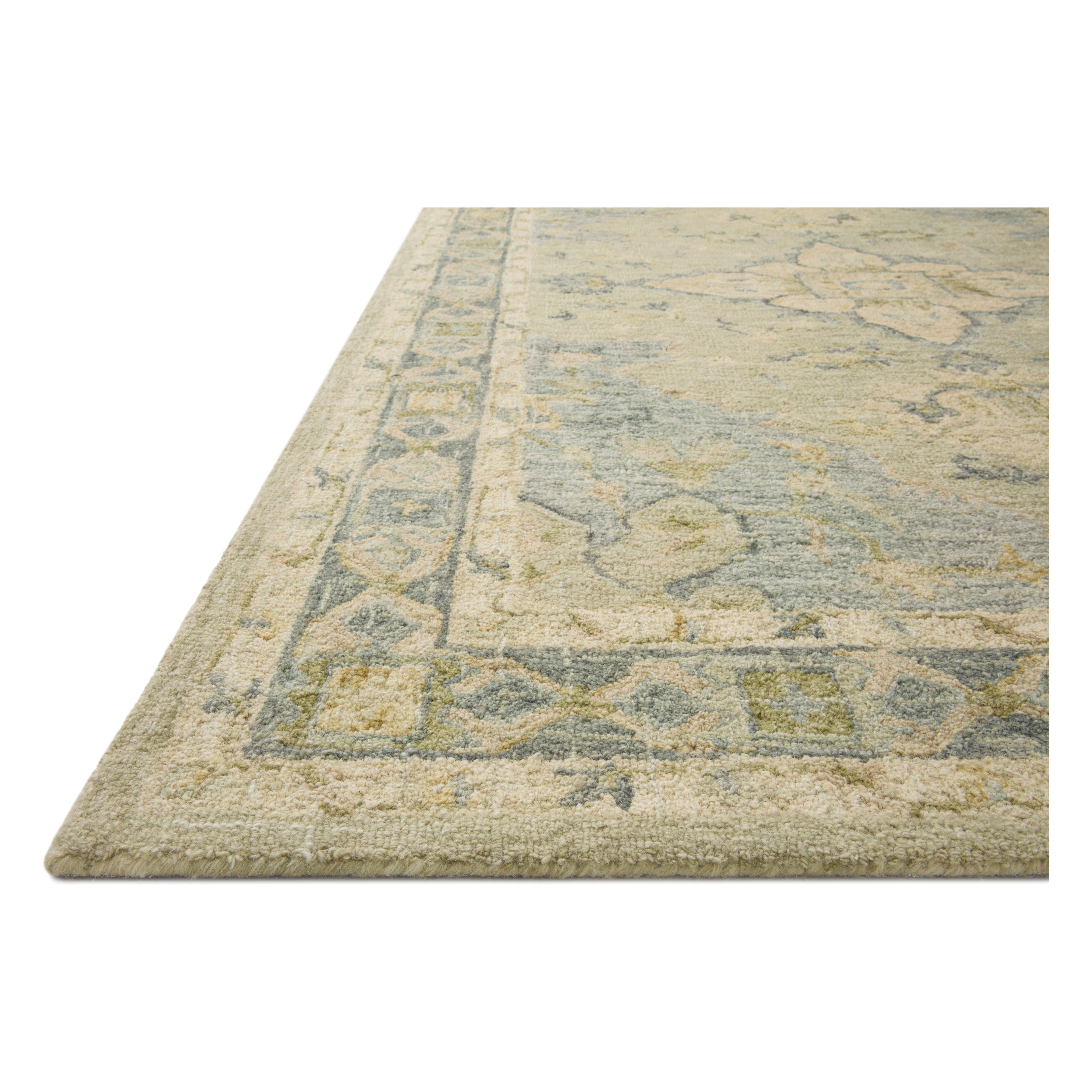 Julian Ji 07 Seafoam Green Spa rug, a stylish addition to your home decor. The unique design of this collection features a loose grid pattern that adds a modern touch to traditional aesthetics. Handcrafted in India by skilled artisans, each rug is made of luxurious 100% wool for a soft and cozy feel under your feet.