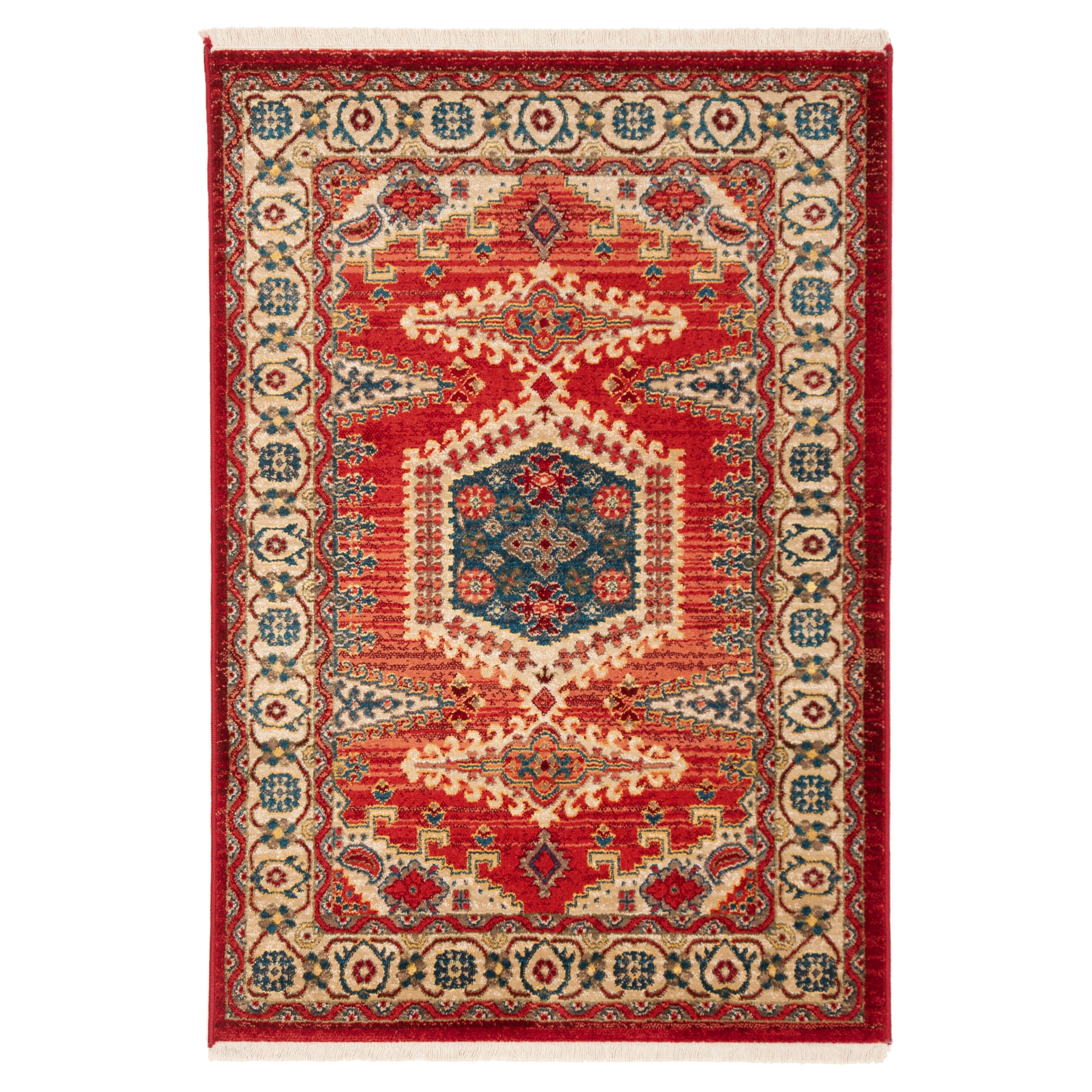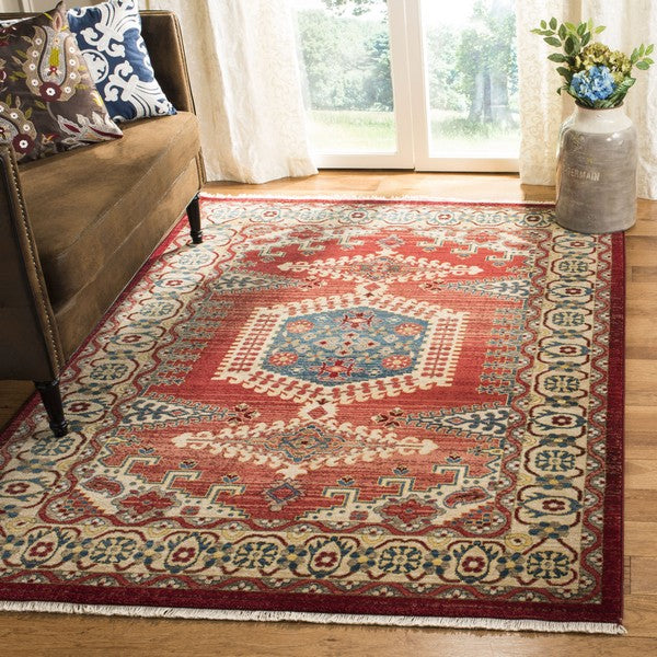 Kashan KSN308Q Red Ivory rug from Safavieh, a fusion of tradition and modern style. This collection puts a unique twist on classic Persian motifs by incorporating vibrant contemporary colors and easy-care properties. Each rug is meticulously crafted with intricate details and transitional elements, making it a versatile choice for any decor scheme. The Kashan rugs boast a plethora of beautiful accent colors that effortlessly enhance your living space with elegance and charm.