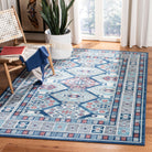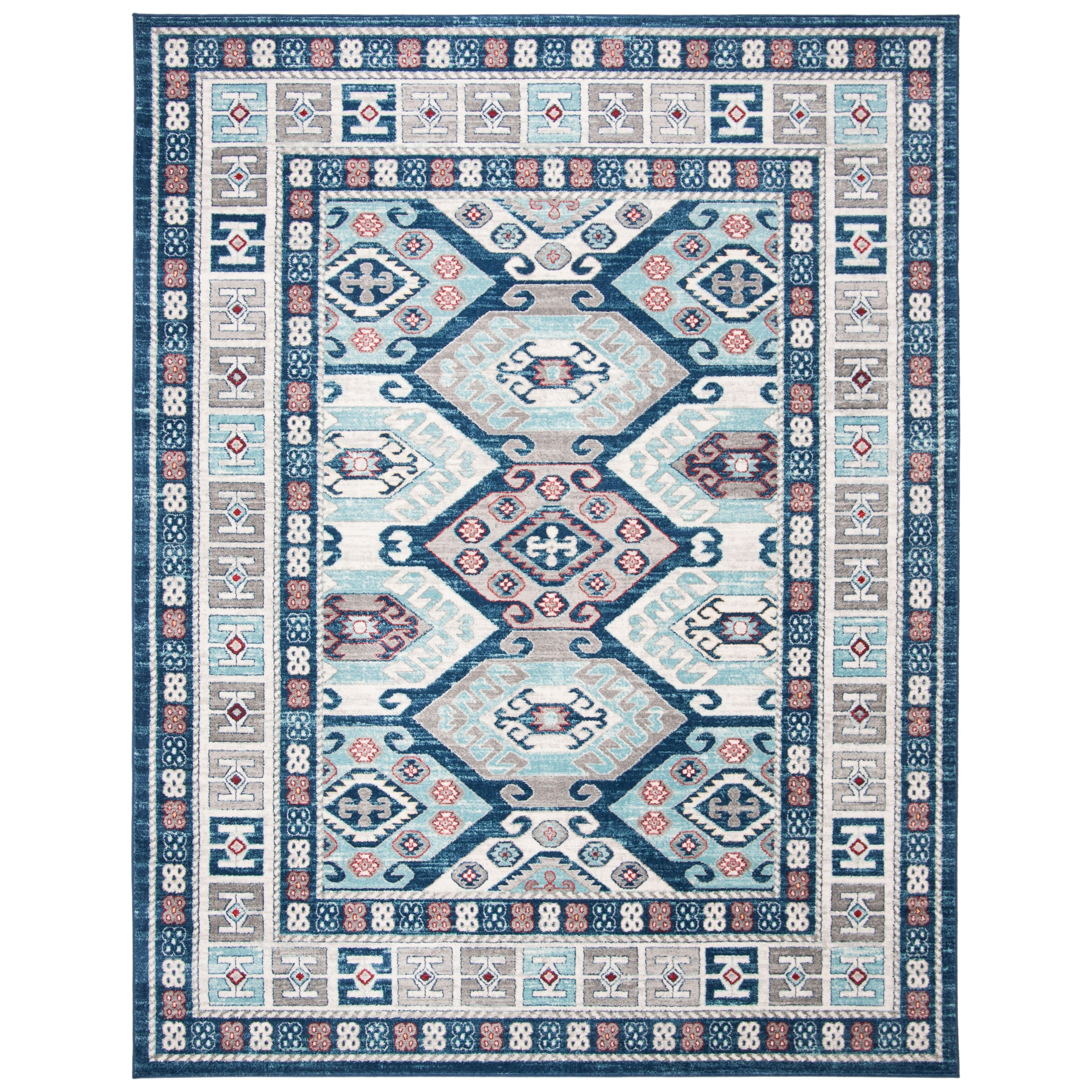Kazak 100 KZK121B Blue Grey rug, inspired by the timeless elegance of traditional Kazak rugs. Safavieh offers a budget-friendly collection featuring easy-care fibers for hassle-free maintenance. Each rug boasts intricate borders and central medallion motifs, adding a touch of uniqueness to your space. The intentional distressed finish lends a vintage charm, perfect for creating a lived-in aesthetic.