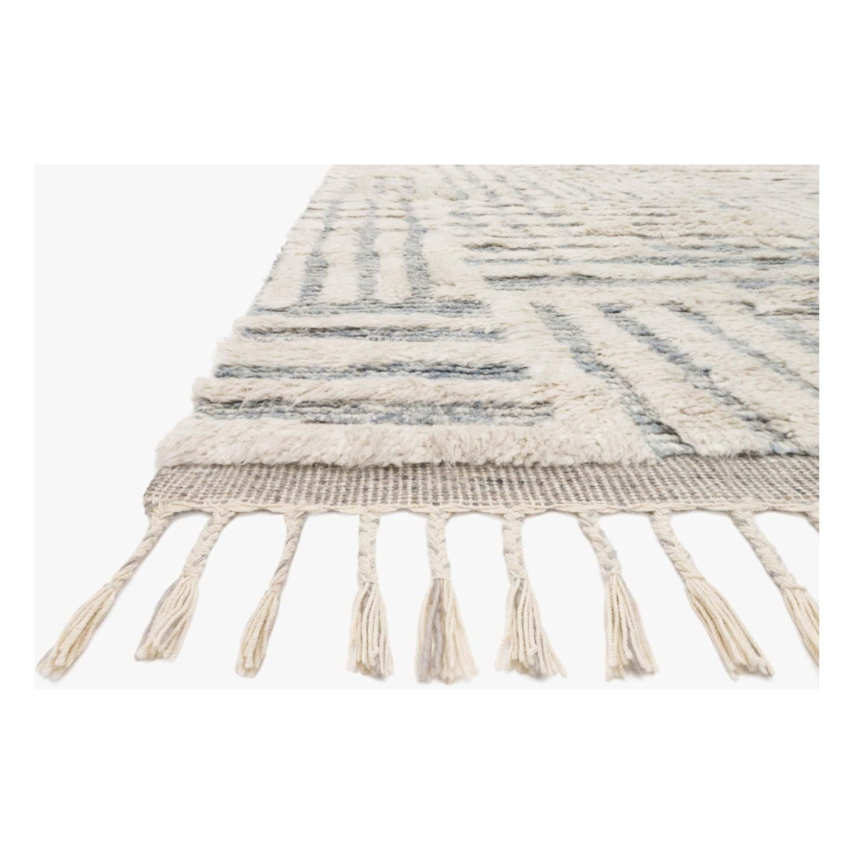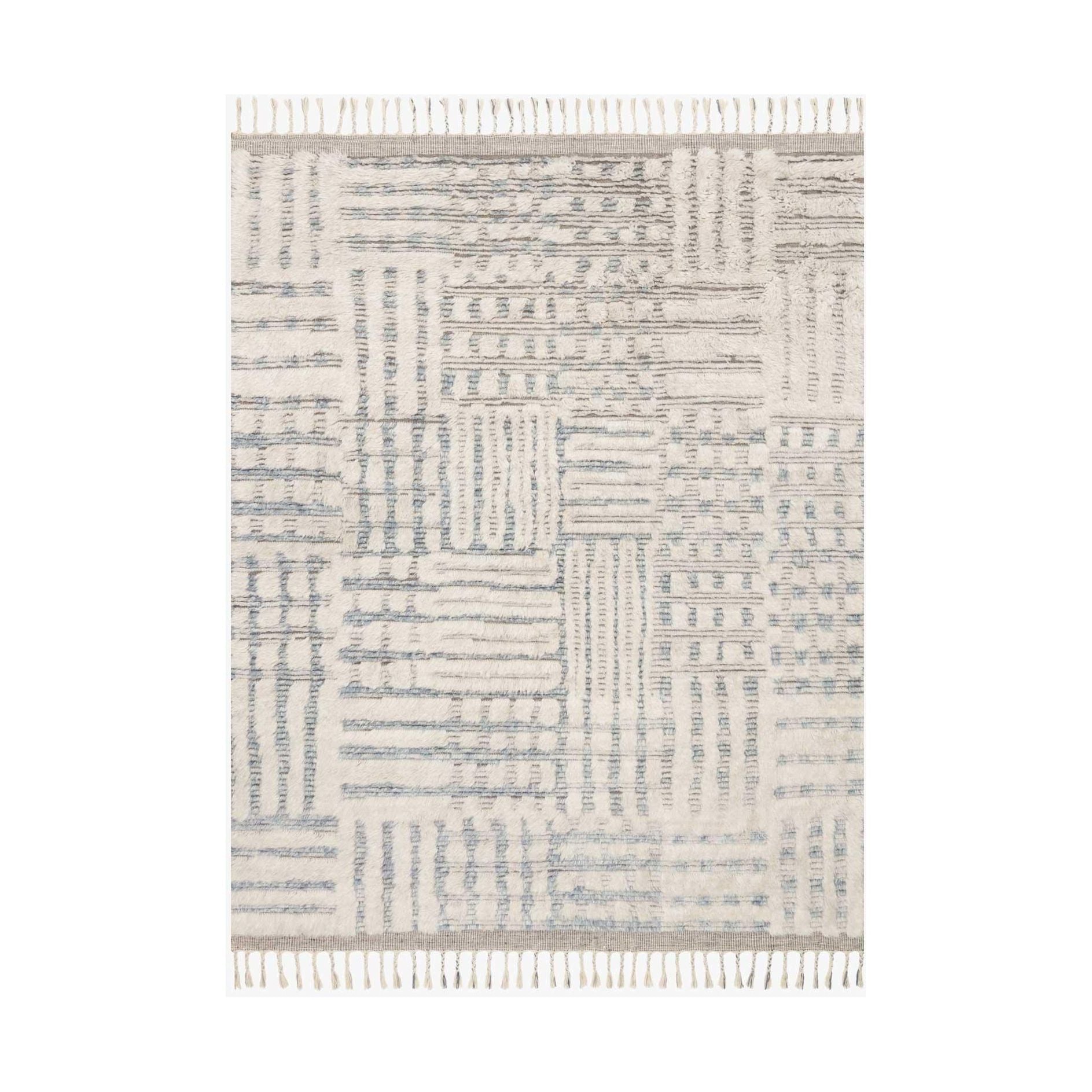 Khalid Kf 01 Ivory Sky, a stunning rug that pays homage to classic Moroccan design. This exquisite piece is meticulously hand-knotted in India by talented artisans. Crafted from 100% natural, undyed wool, the soft pile showcases subtle variations in tones, giving each rug a unique character of its own. To add a touch of elegance, every rug in the Khalid Collection is beautifully finished with a carefully designed fringe.