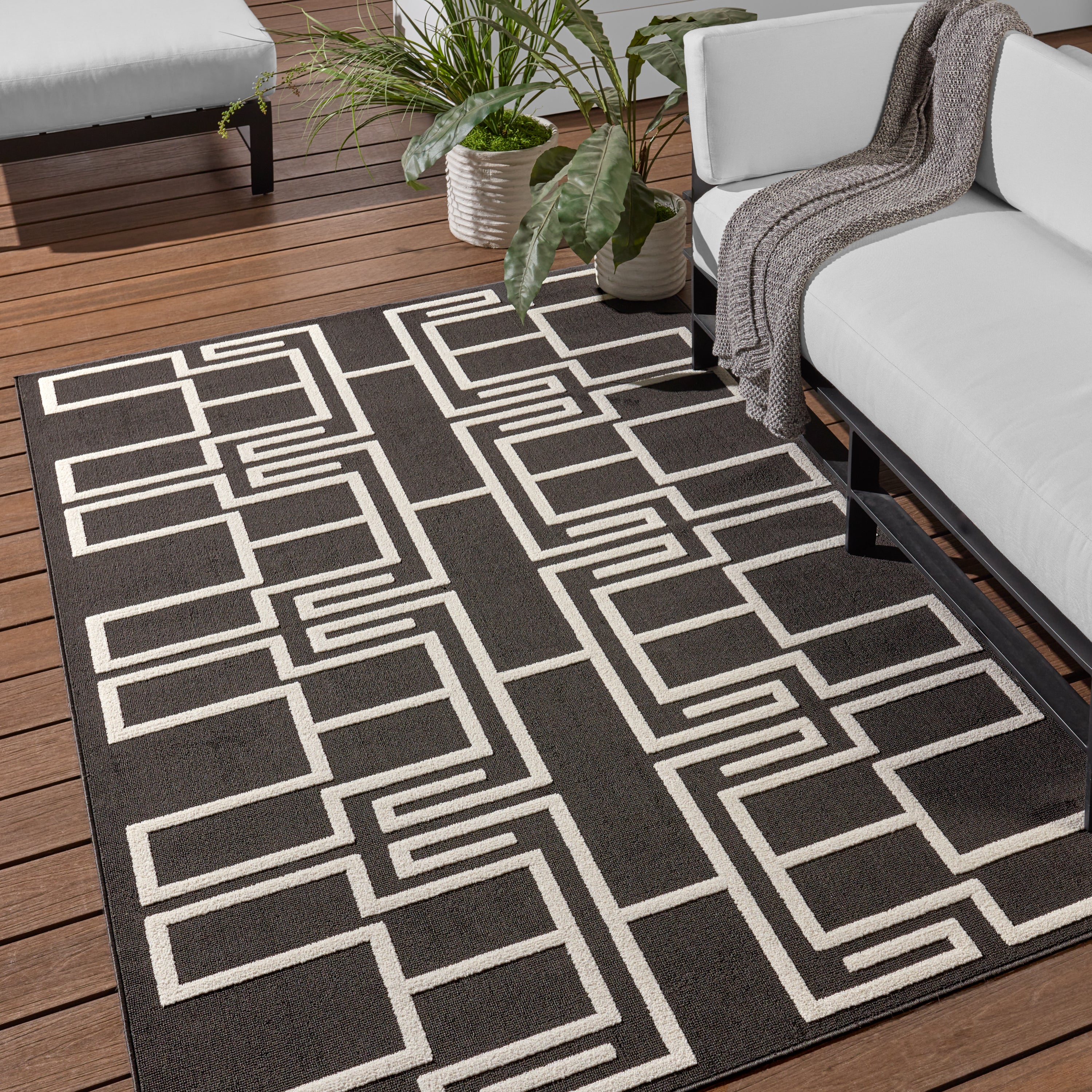 Kysa KYS03 Odion rug from the contemporary Kysa collection. This rug showcases a variety of sleek, geometric patterns in bold color combinations. The Odion design, in classic black and white hues, offers a fresh interpretation of a traditional Turkish Kars motif. Its standout geometric elements are emphasized by a plush, high pile that brings both texture and depth to your space.