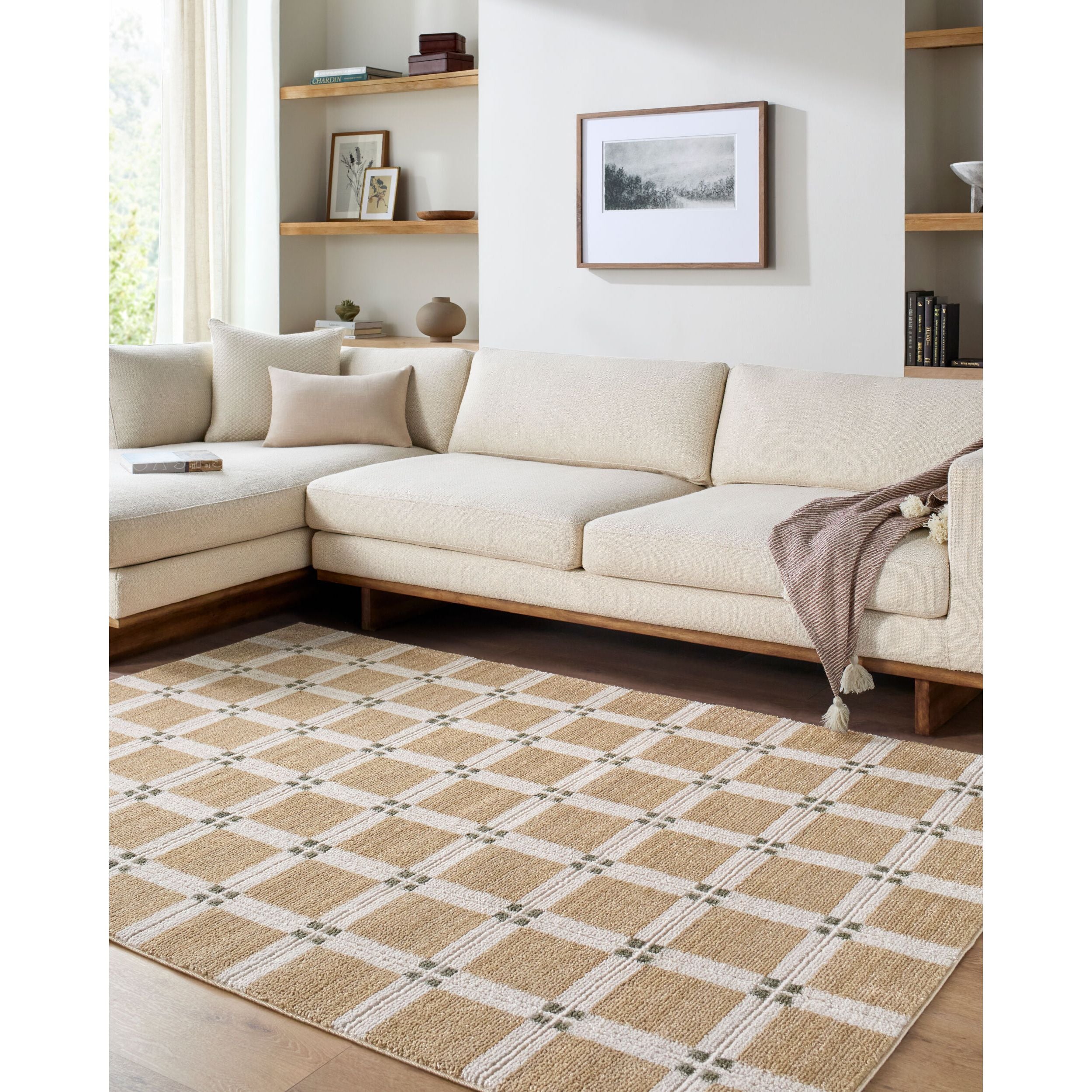 Detailed Colors: Tan, Off-White, Light Gray, Olive