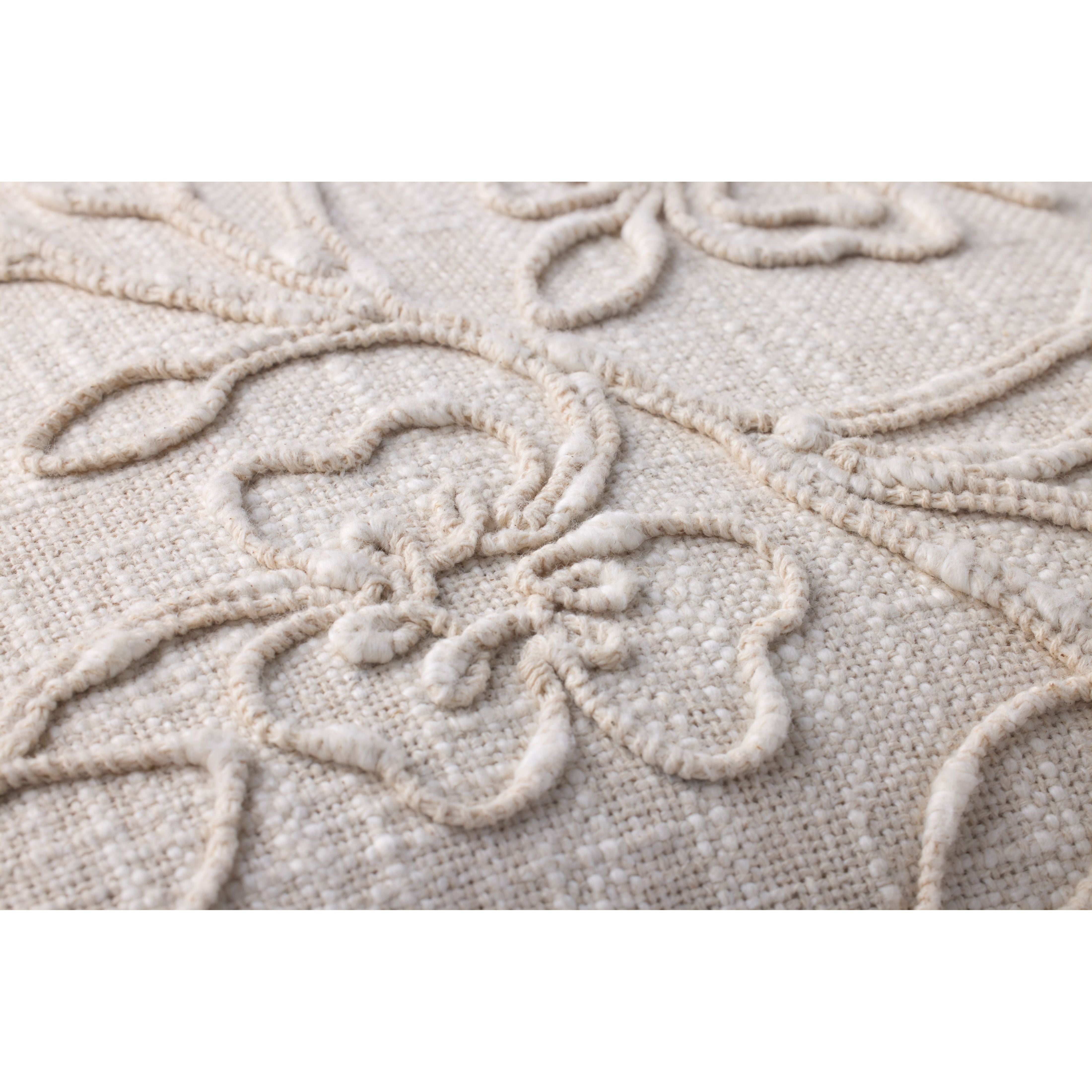This natural ivory throw pillow features elegant embroidered botanicals in the same tone. The pillow cover is made of 100% cotton to style in living rooms and bedrooms.
