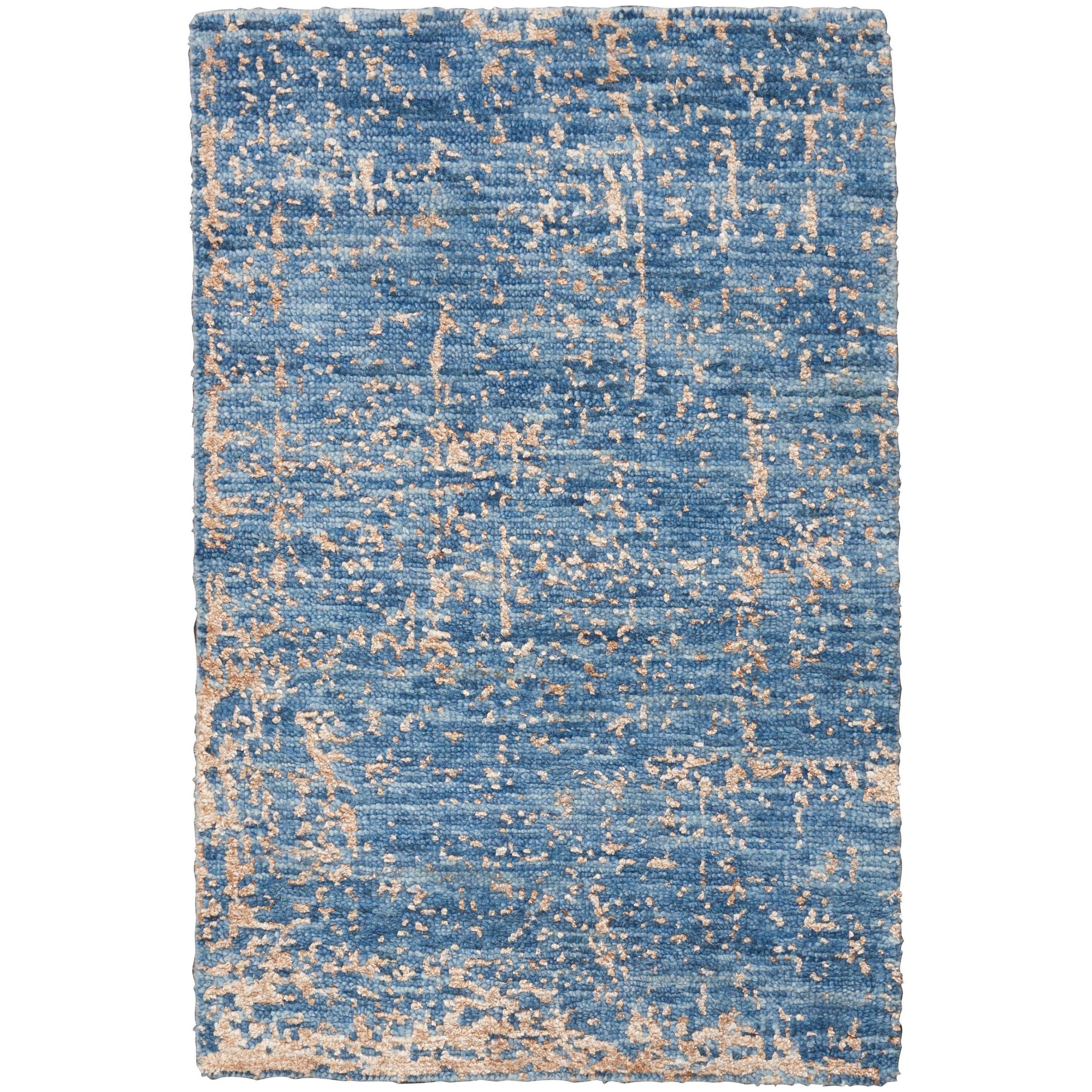 Luna LUN01 Dark Blue Mocha area rug, a stunning addition to elevate your space with modern elegance. Handmade and knotted with precision, each rug in the Luna collection boasts unique variations in color and size, adding a personal touch to your home decor. The abstract designs bring a contemporary flair to any room, be it your living room, bedroom, family room, or home office. The soft and textured low pile is crafted with silk-like fibers for a luxurious feel that enhances the overall minimalist aesthetic.