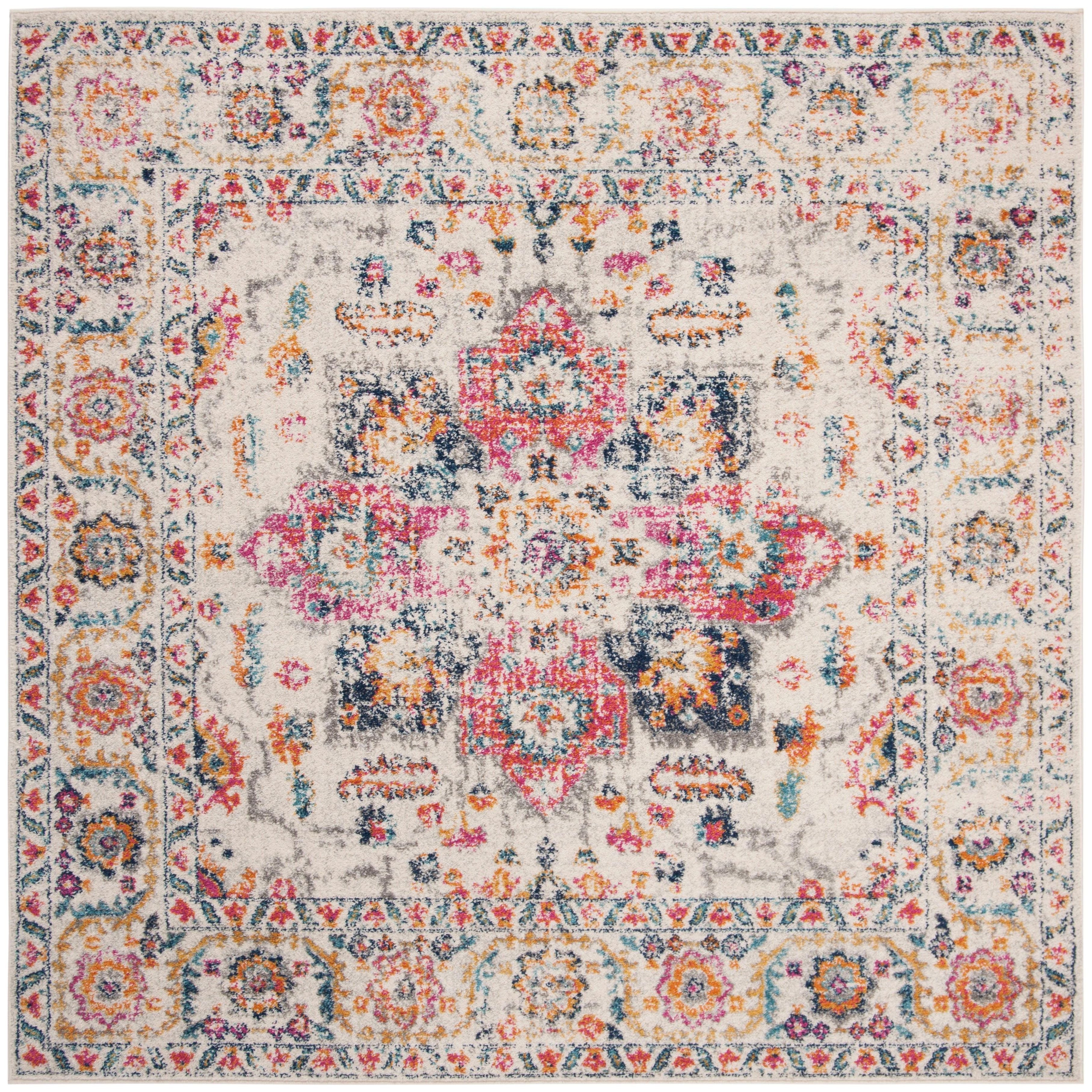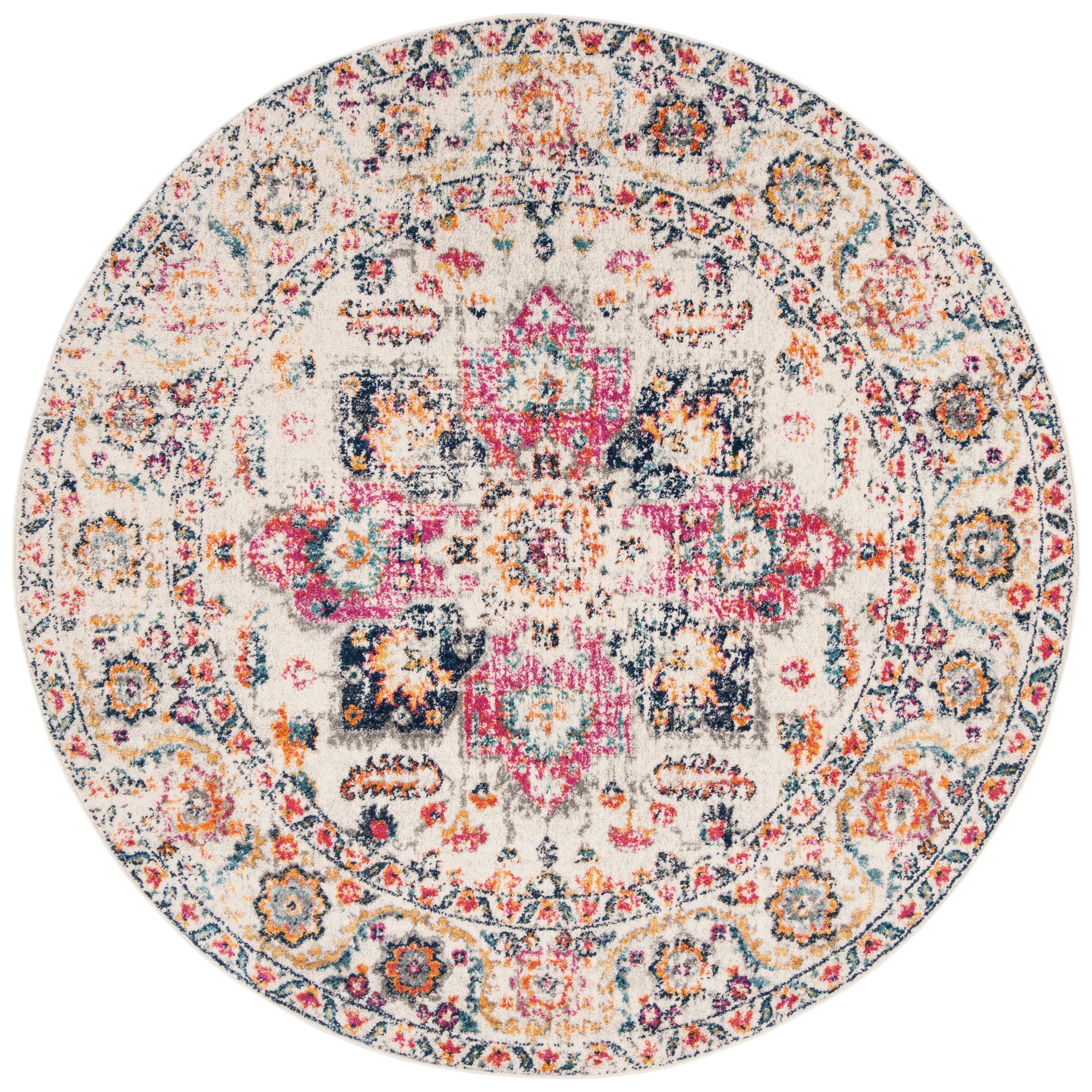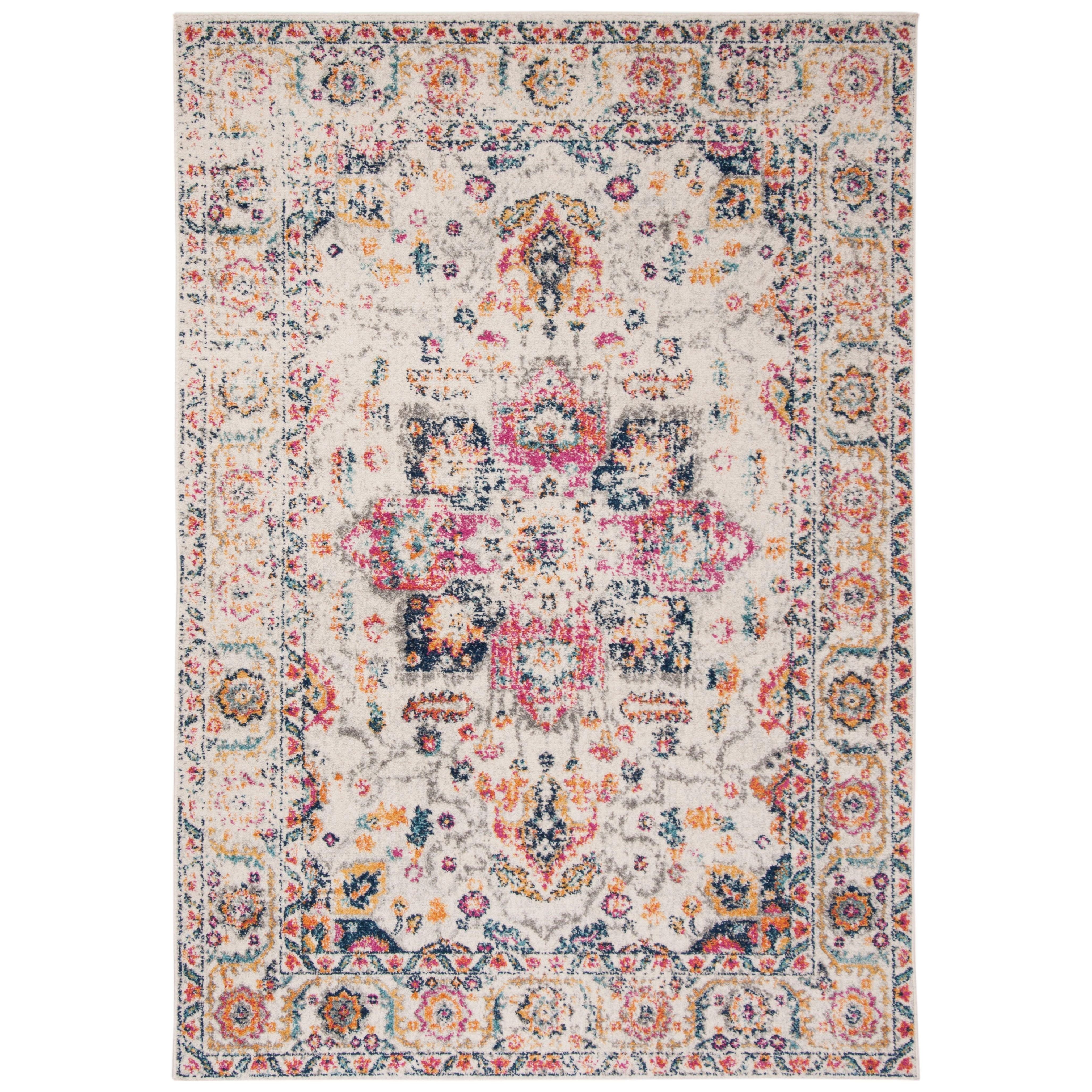 Elevate your space with the Madison MAD603R Fuchsia Ivory area rug, perfect for adding a touch of rustic farmhouse charm. The rug features a captivating medallion design with a stylish distressed effect, making it a versatile addition to any room in your home - whether it's the bedroom, living room, dining room, or home office. Crafted from high-quality and easy-care non-shedding fibers, this chic rug effortlessly complements furniture and enhances entryways with its approximate thickness of 0.375 inches.