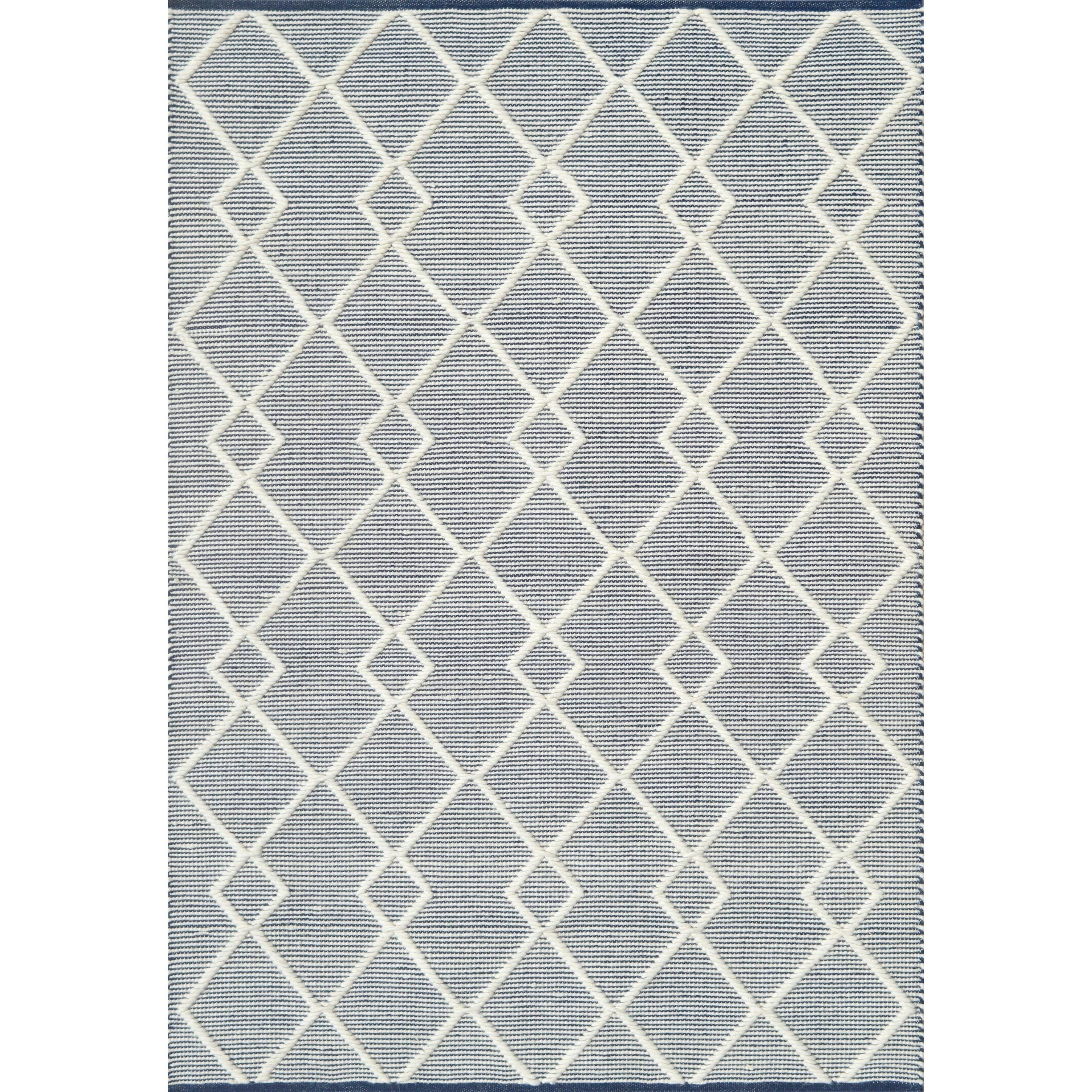 Maeve 2728 Ivory Navy rug, a versatile and stylish addition to any room decor. This rug features a sleek geometric diamond design that effortlessly complements various motifs. Crafted from two different natural fibers, it offers a perfect balance of durability and fashion-forward appeal.