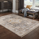 exquisite Maharaja 1803X rug collection, a perfect blend of elegance and sophistication. Each rug in this million point collection features traditional designs with a modern twist in a fresh color palette. From timeless neutral tones to calming shades of bluestone and muted amber, these rugs offer a subtle yet striking appeal. The intricate patterns are beautifully showcased in these powerloomed rugs made from ultra-soft, space-dyed polyester.