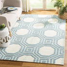 Martha Stewart MSR2554B rug, featuring a charming Puzzle design that blends a stylized floral pattern with hexagonal cells. This versatile rug effortlessly enhances rustic and urban interiors alike, adding a touch of elegance to any space. The intricate hand-hooked construction by skilled artisans in China gives the rug a modern twist on classic country quilt motifs.