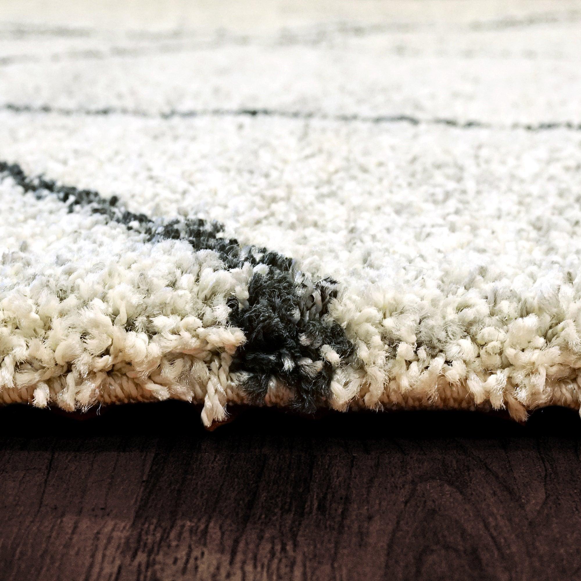 Mehari 23277 Ivory Charcoal rug, perfect for adding a touch of modern elegance to your home decor. This collection offers a variety of soft plush rugs featuring both geometric and solid patterns to suit any style preference. Crafted from frize polypropylene, these rugs are not only stylish but also exceptionally soft to the touch, providing a cozy feel underfoot.