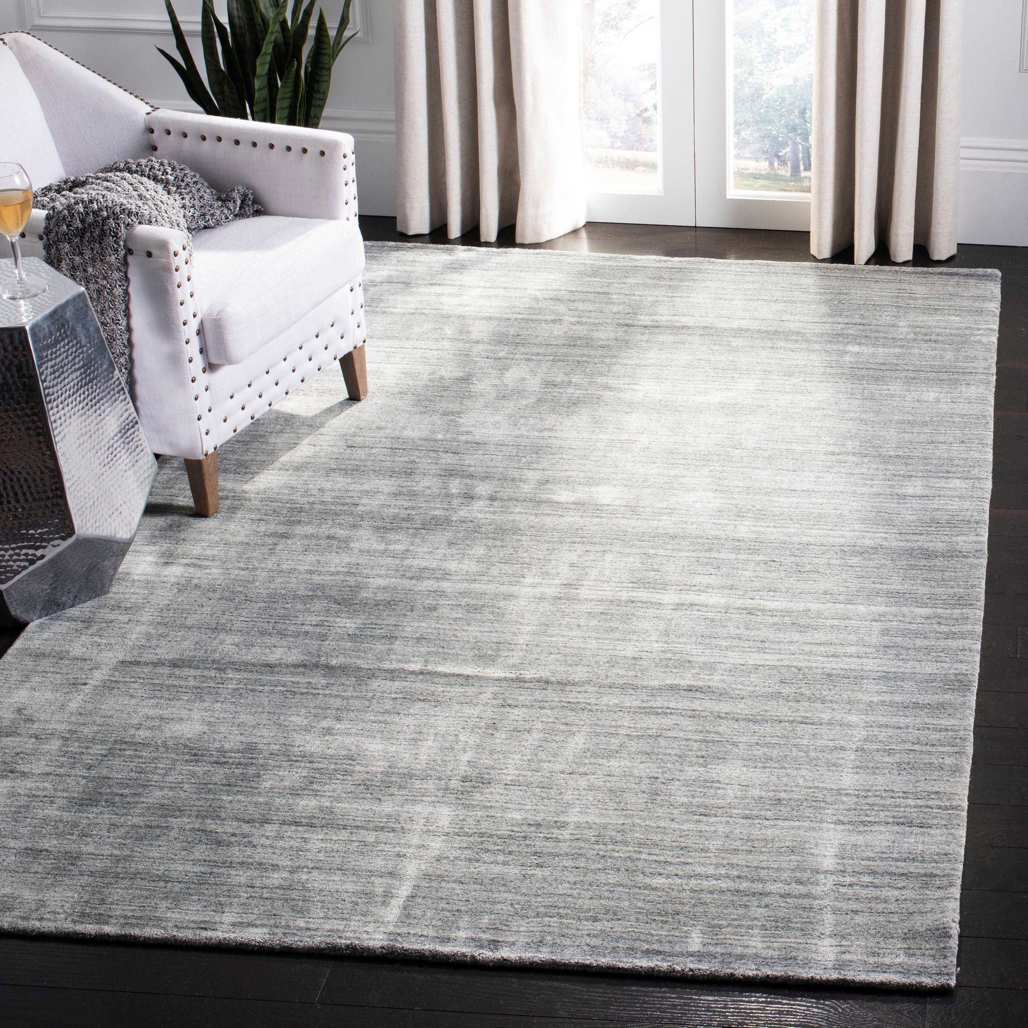 Mirage MIR150E Light Grey area rug from the Mirage Collection, designed to bring a touch of Hollywood glamour into your home. Crafted with luxurious organic viscose yarn that mimics the look and feel of silk, this rug features a sophisticated tone on tone pattern that adds elegance to any space. Handmade by skilled artisans, this soft and practical rug has an approximate thickness of 0.5 inches.