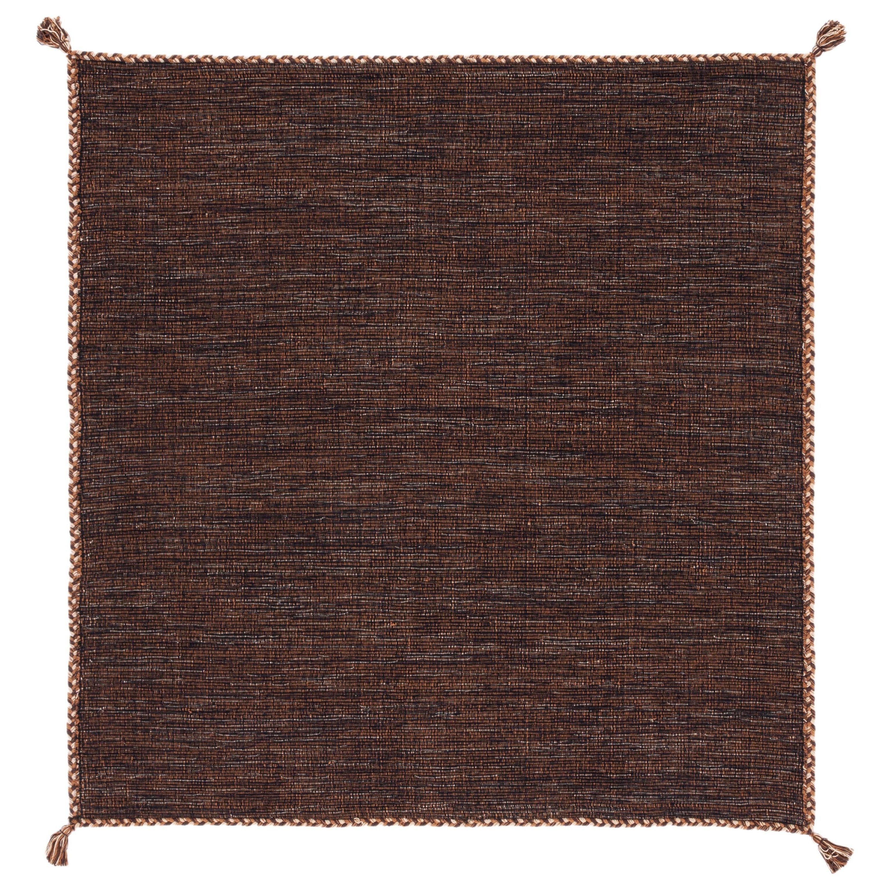 Montauk MTK150T Brown Black rug from the Montauk Collection, a perfect blend of casual designer style and coastal charm. Crafted from cotton for vibrant color clarity, this flat weave rug features classic Ikat tie-dye effects that will elevate any space in your home. With an approximate thickness of 0.25 inches, it offers both style and comfort.