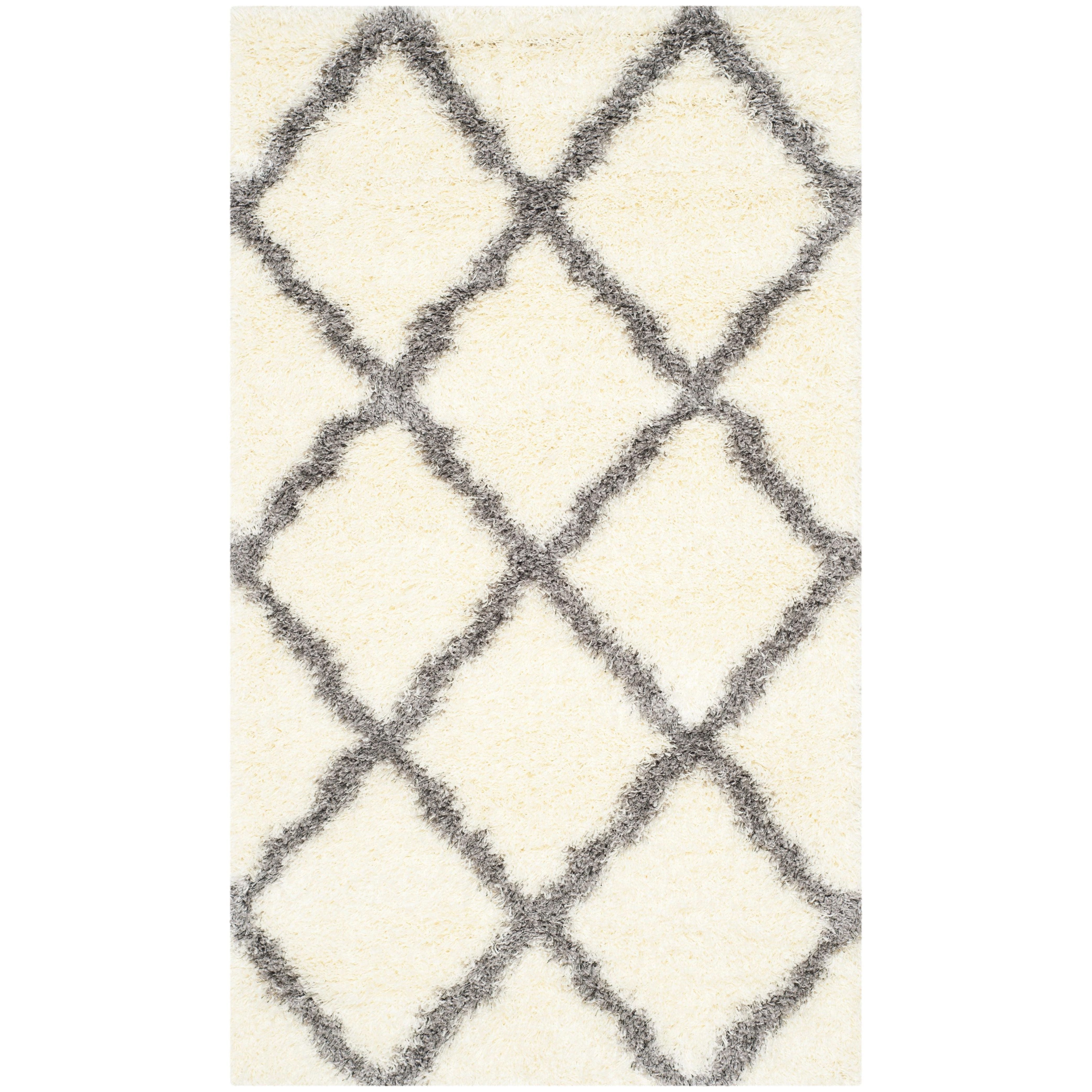 Montreal Shag SGM866B, a stunning addition to SAFAVIEH's Montreal Shag Collection. With vibrant colors and bold designs, this rug effortlessly elevates any modern living space with its traditional quatrefoils. The soft and plush pile, power-loomed from premium synthetic yarns, offers both comfort and durability, measuring approximately 2 inches in thickness.