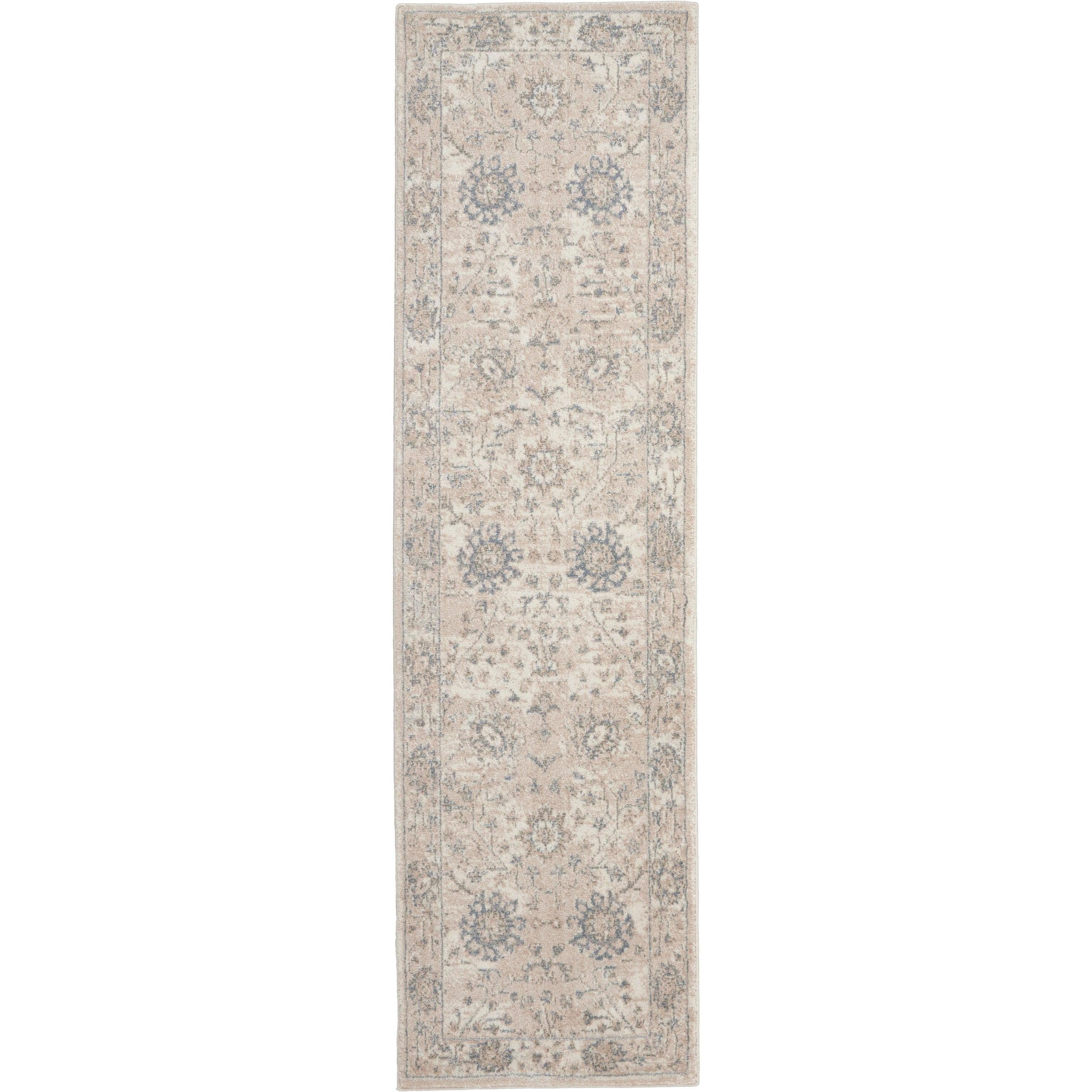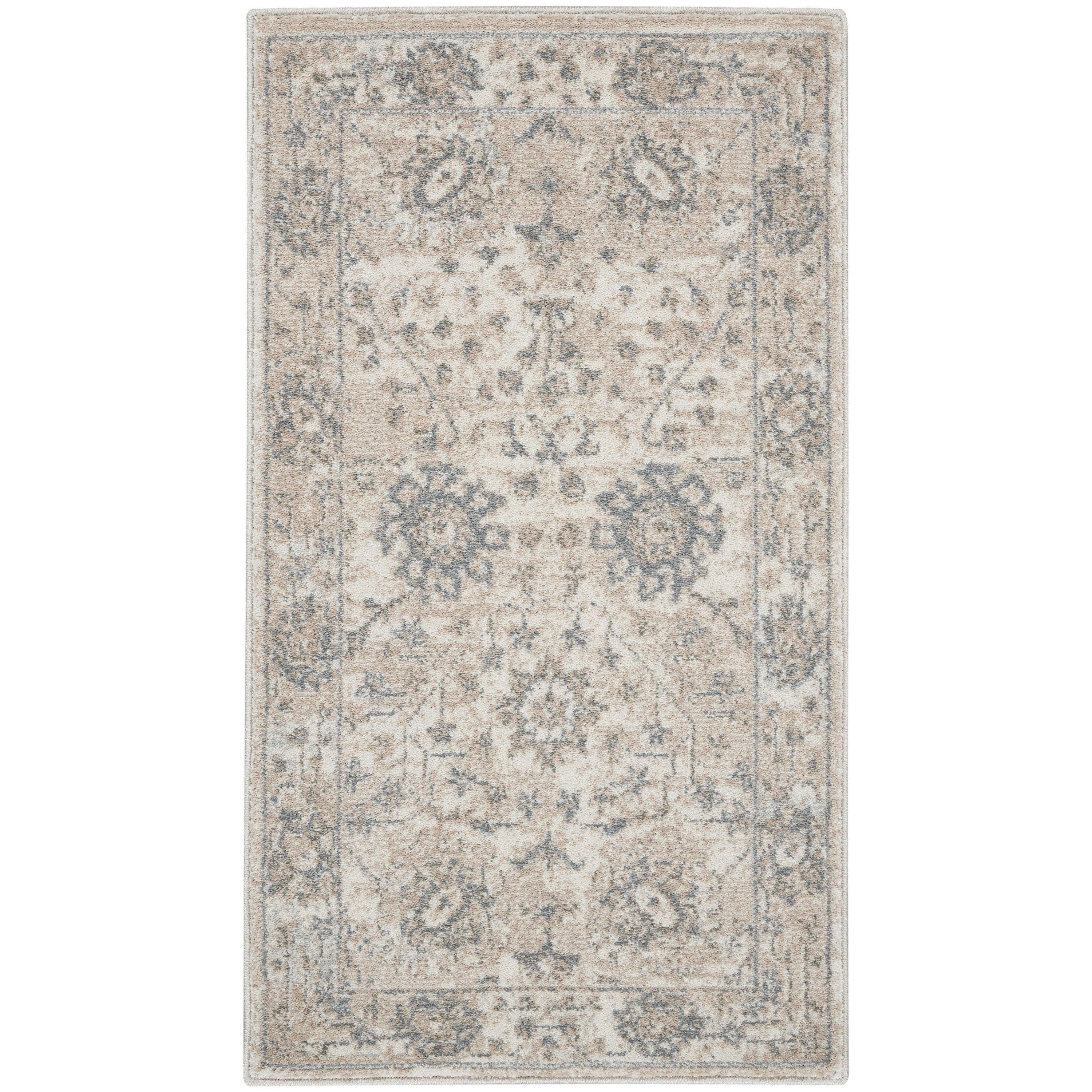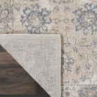 exquisite Moroccan Celebration KI384 Ivory Sand rug from the renowned kathy ireland Home Collection. This stunning range seamlessly combines classic Persian motifs with modern design elements, offering a unique blend of tradition and innovation. Featuring a color palette of soft neutrals and deep blues, these rugs are perfect for adding a touch of sophistication to any space.